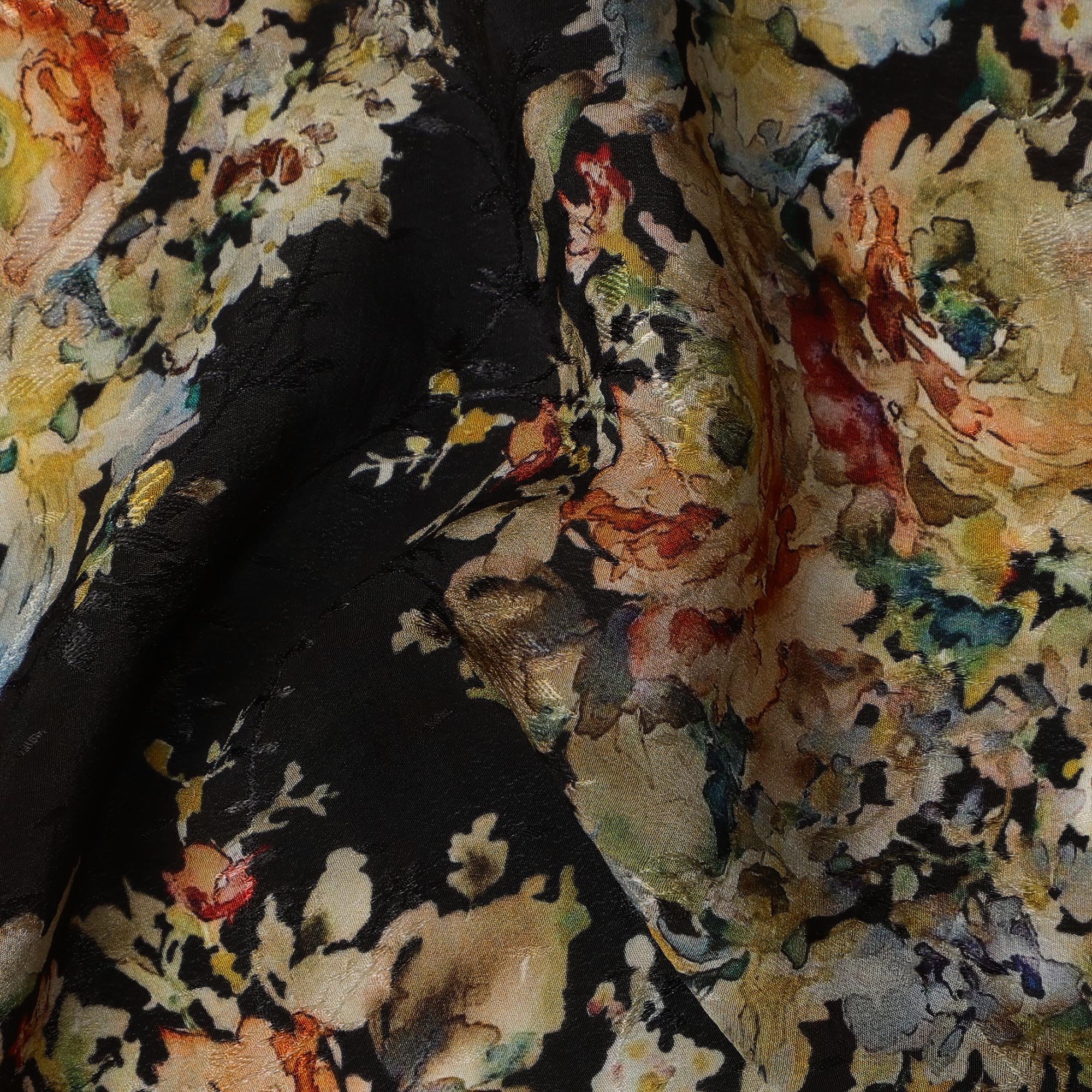 Immerse your designs in dramatic elegance with this multicolor floral digital print on black viscose fabric, a luxurious blend of... Read more Read more