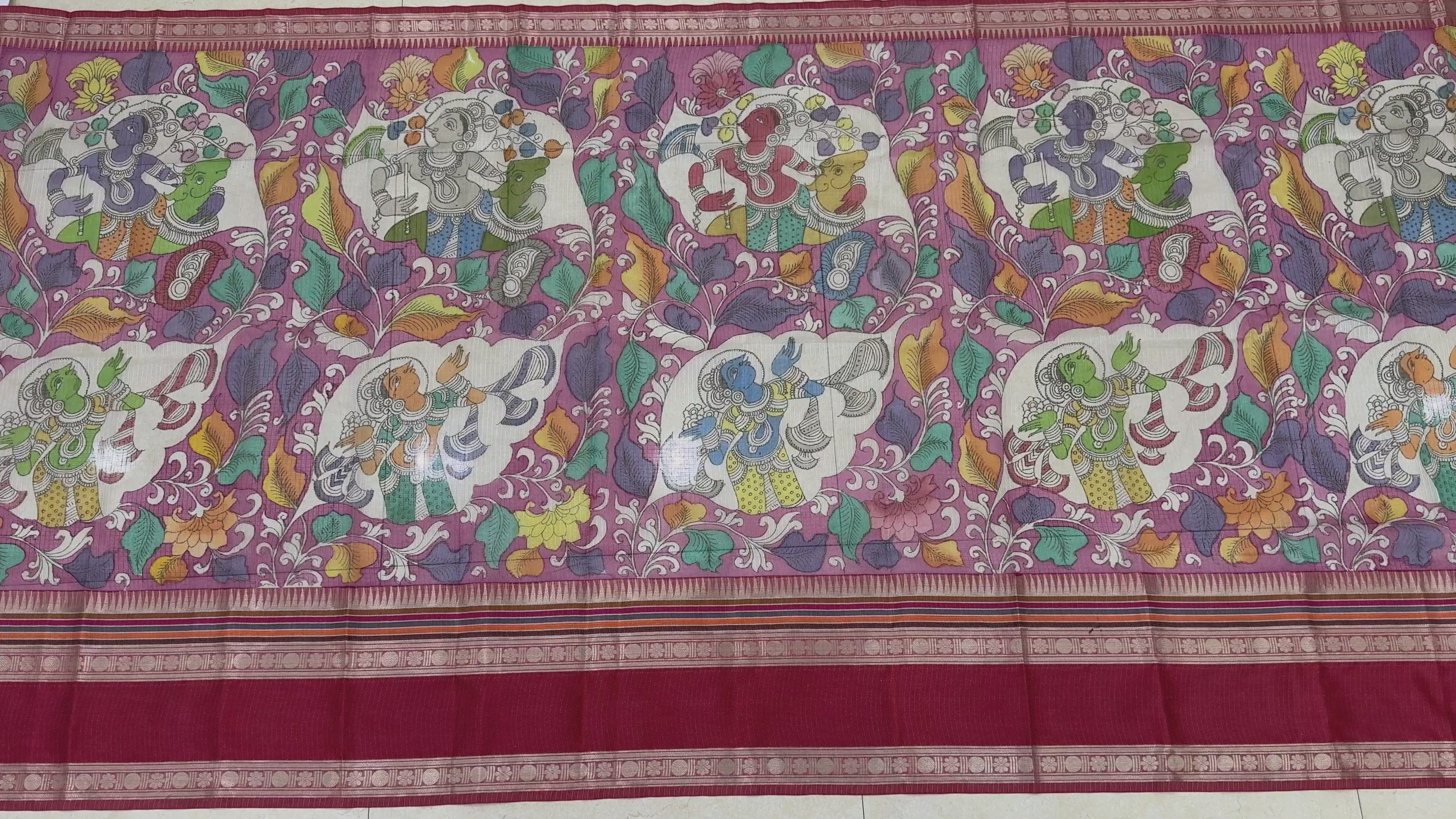 Handpainted Pen Kalamkari motifs with mythological storytelling