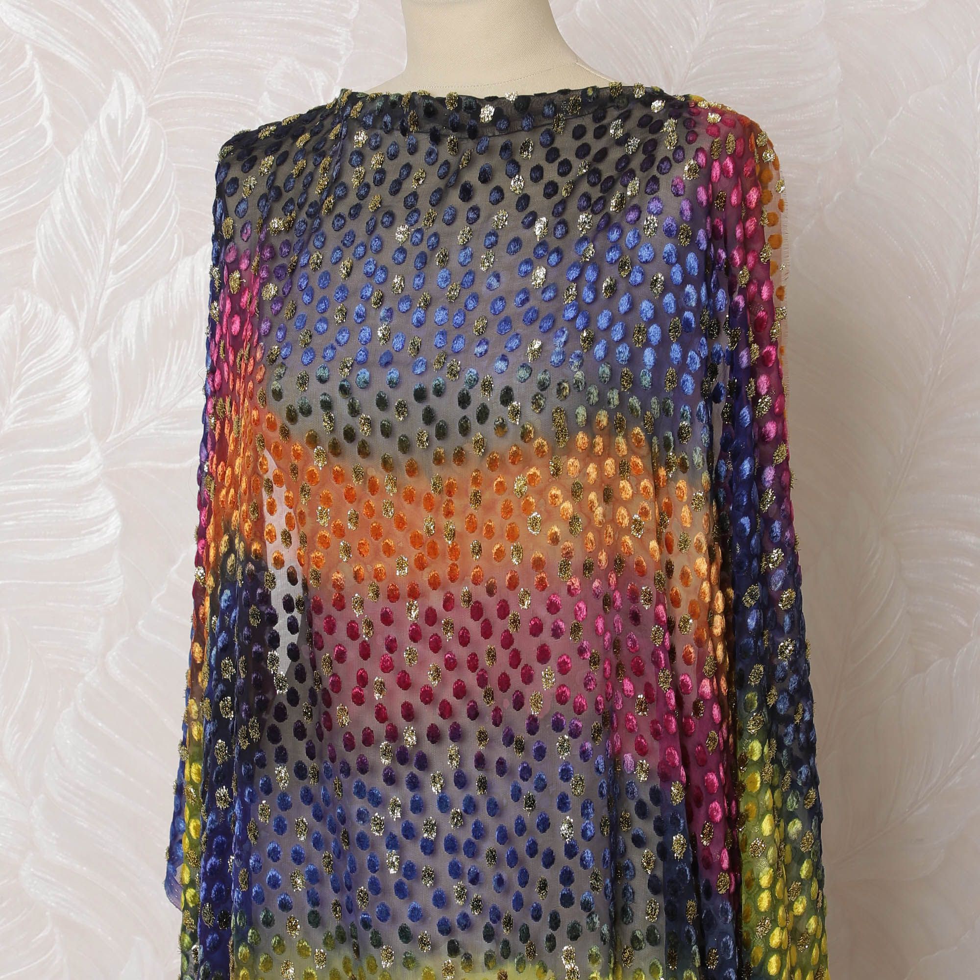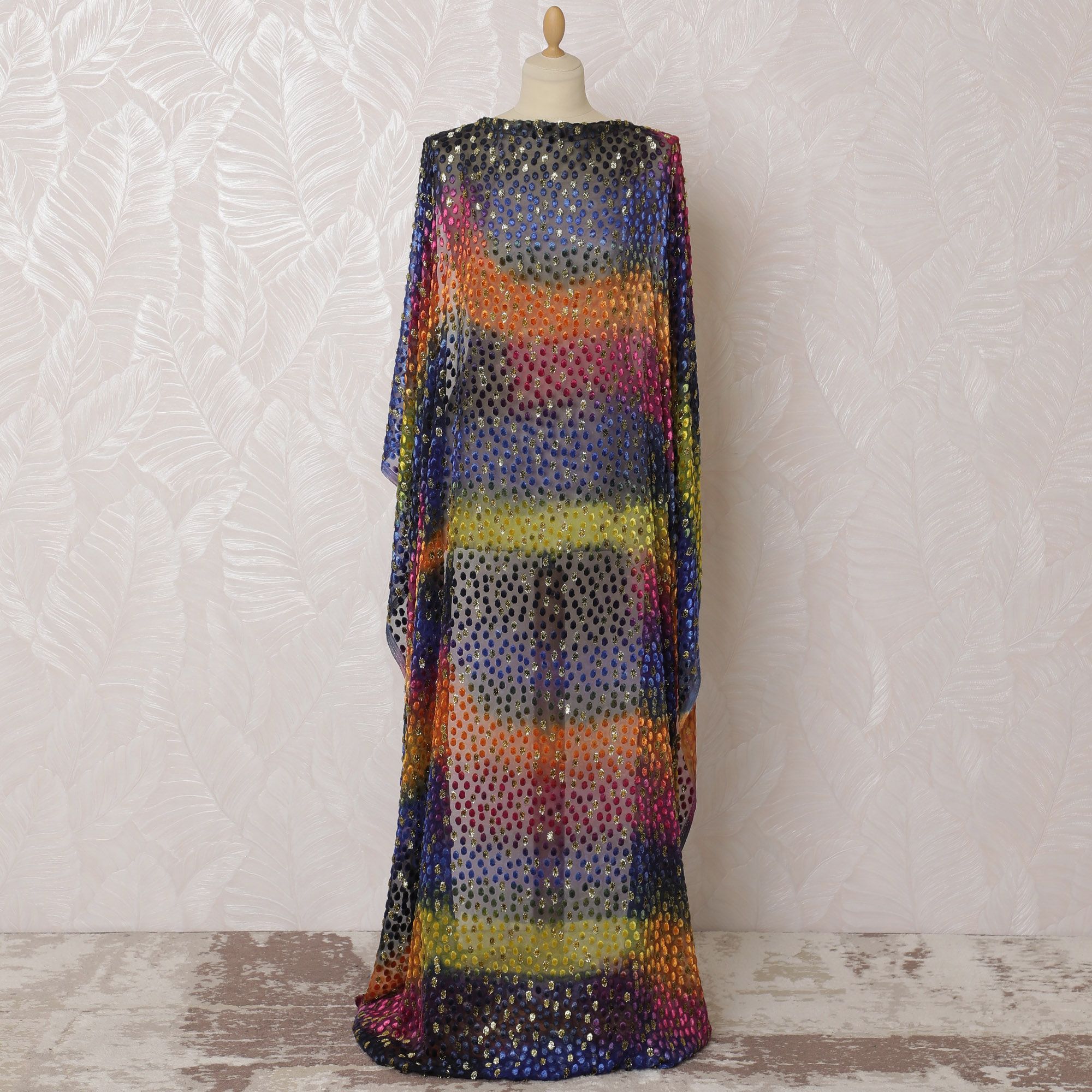 • Sale -50% Multicolor Premium Italian silk chiffon velvet makmal dirac fabric with gold metallic lurex in dot design-D16590