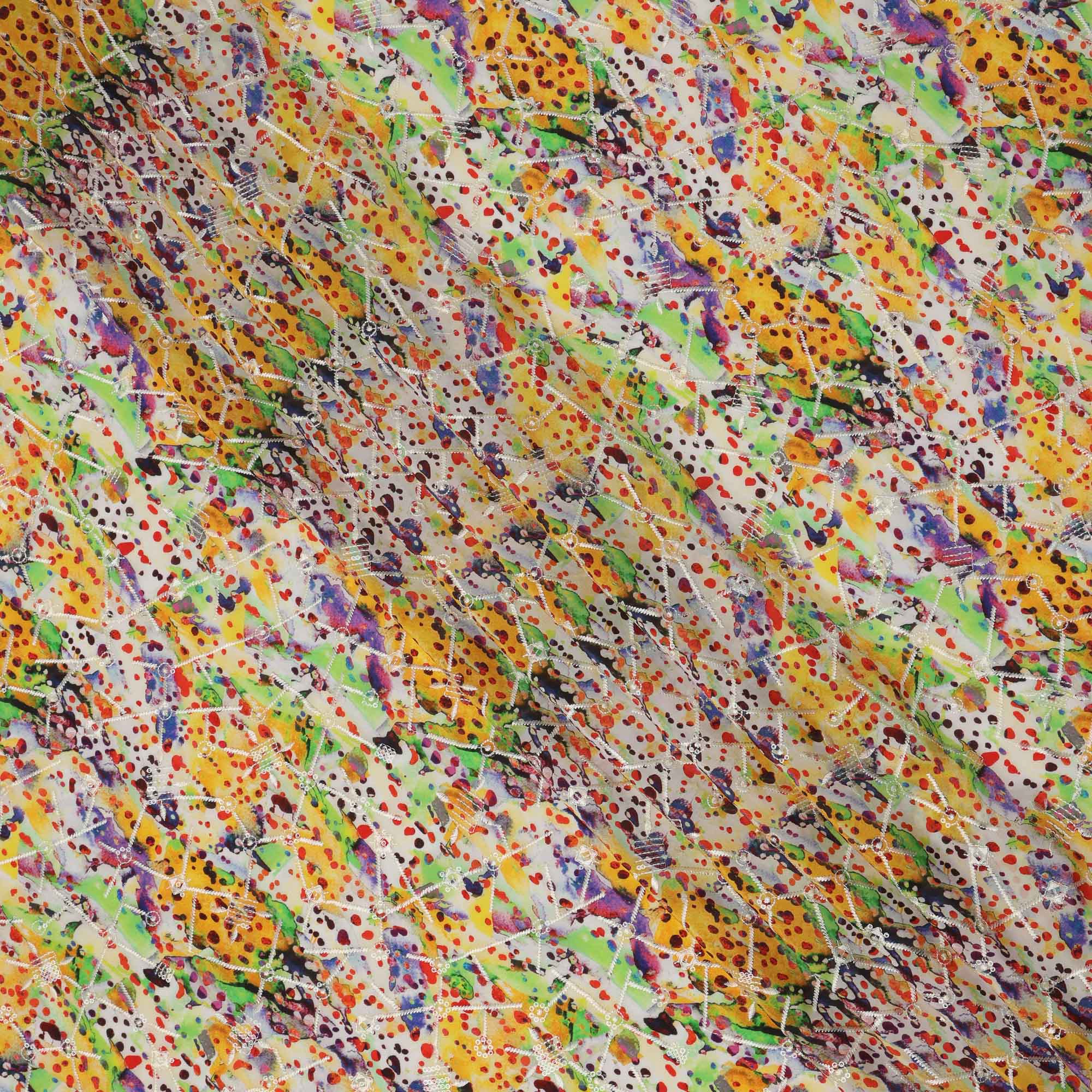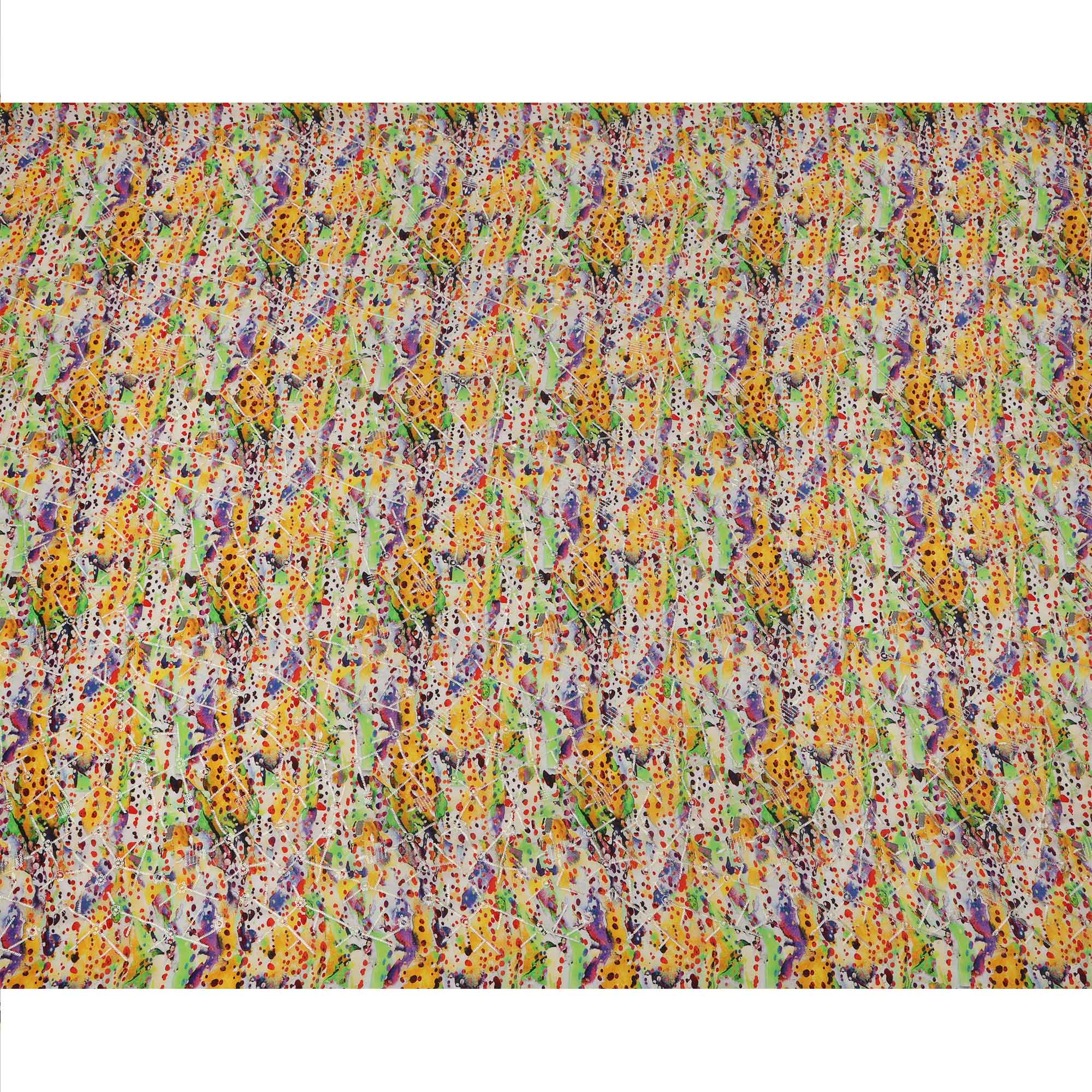 Multicolor Yellow-Green Artistic Dot and Brushstroke Print Viscose Crepe Fabric, 110 Cms Width, Made in India-D23605
