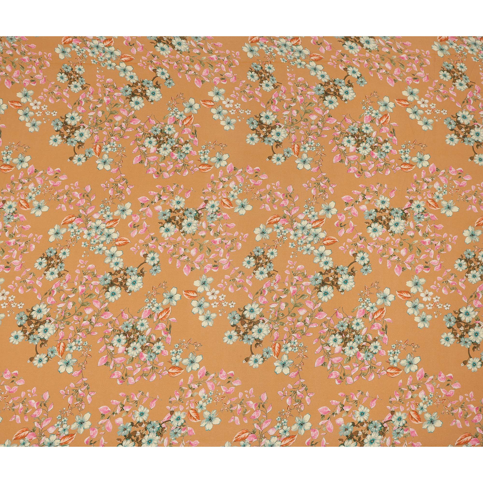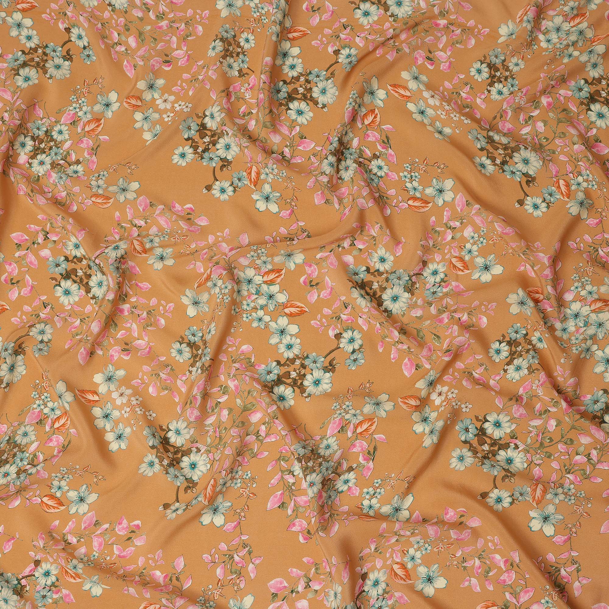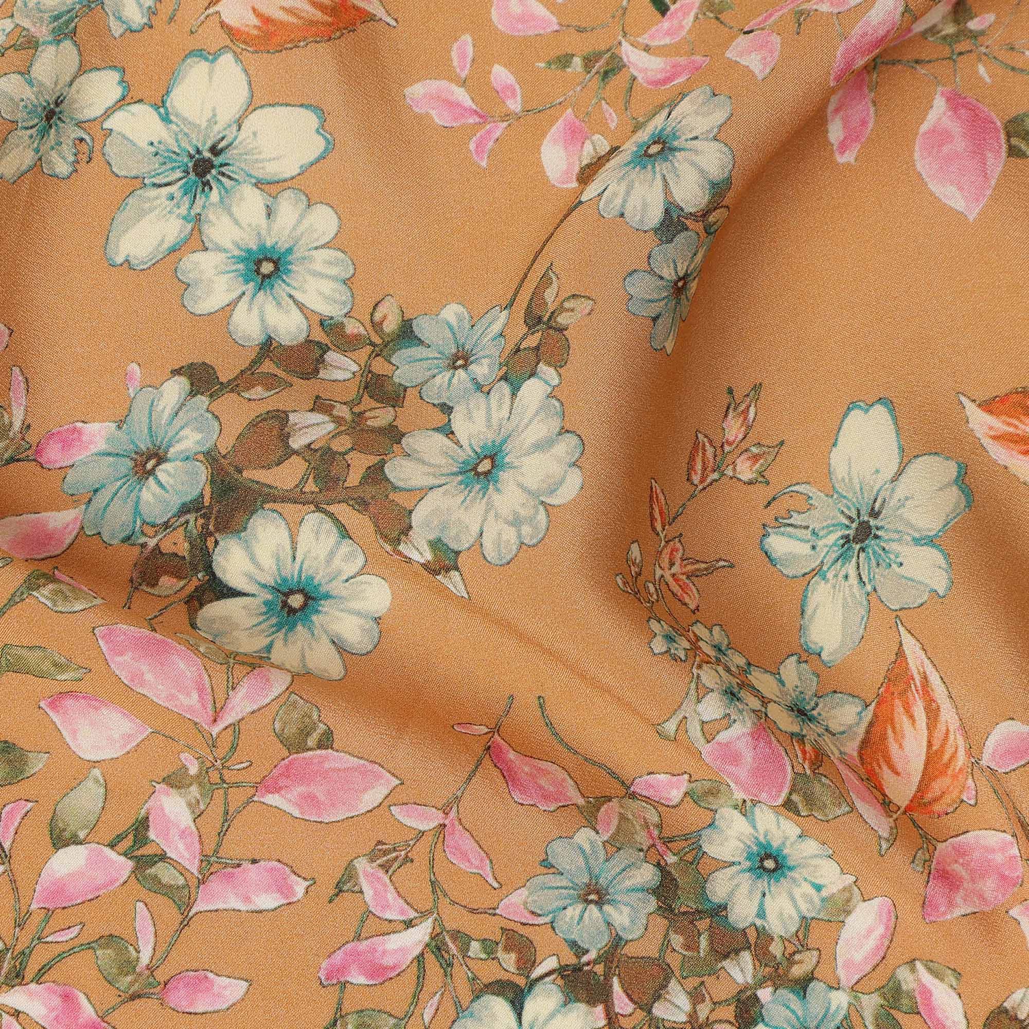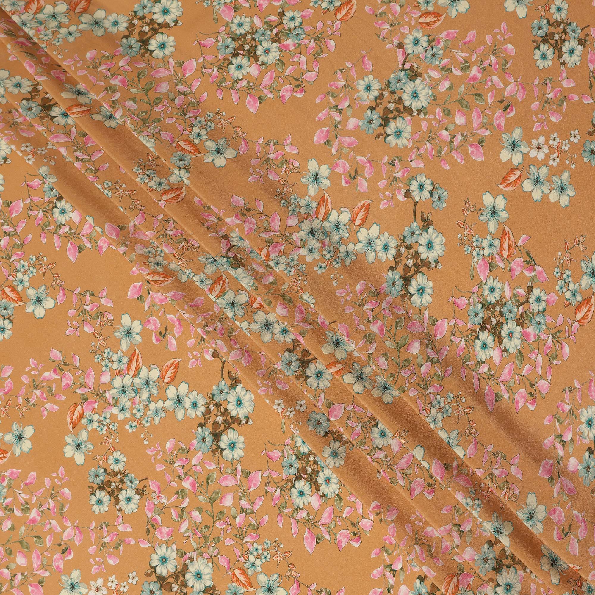 Mustard Floral Printed Premium Pure Silk Crepe Fabric Blossom Vine Design Soft Lightweight Dress Material 110 Cms Width India-D28008