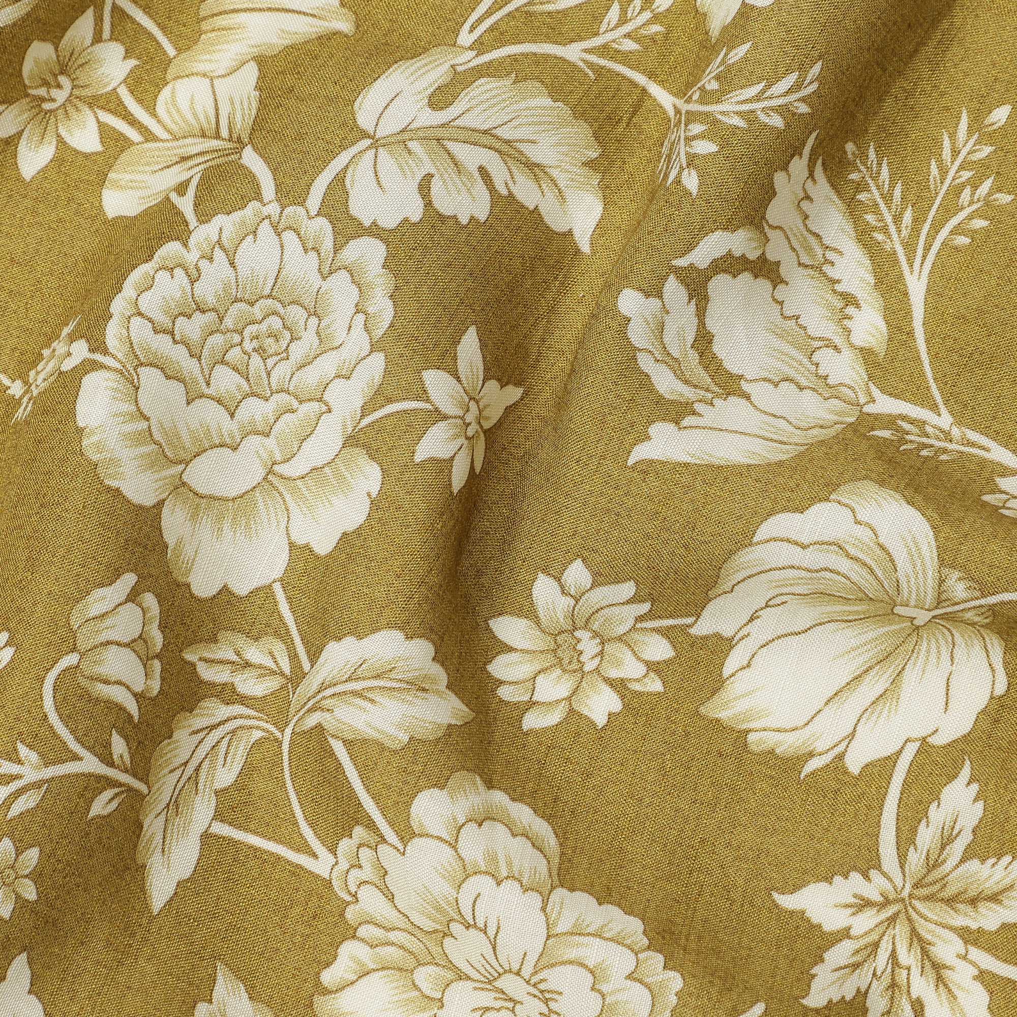 Mustard Silk Chiffon Fabric with White Floral Print, 110 Cms Width, Made in India-D25522