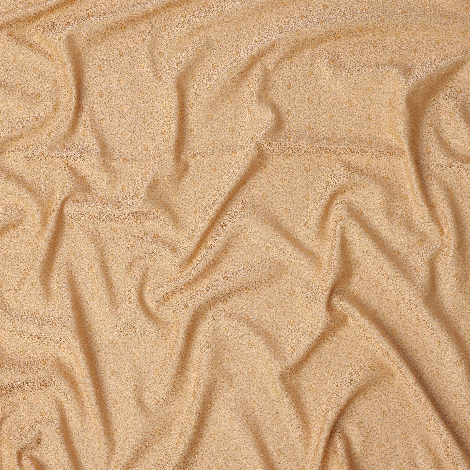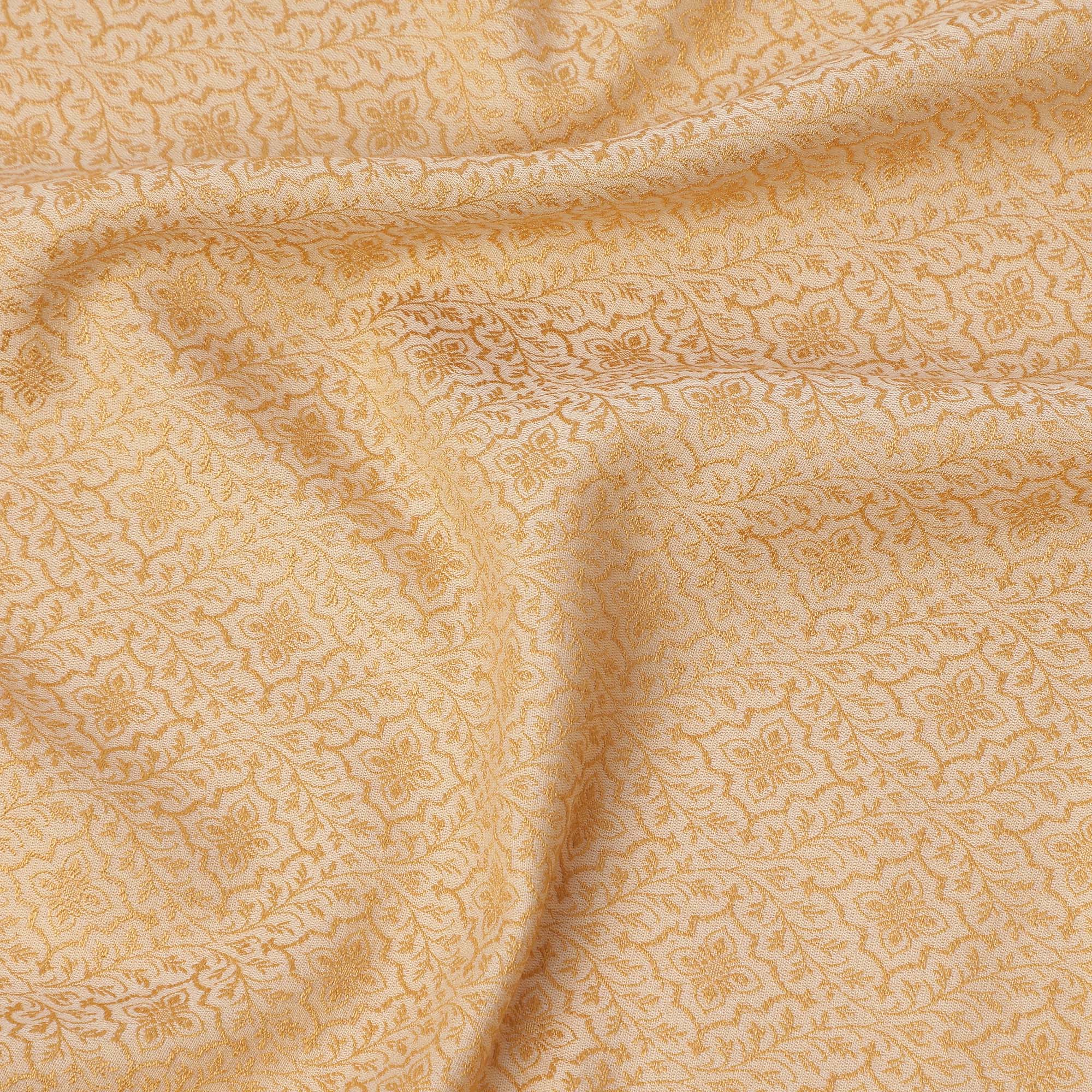 Mustard Yellow Floral Motif Self Design Synthetic Cotton Fabric, 140 Cms, India-D25382