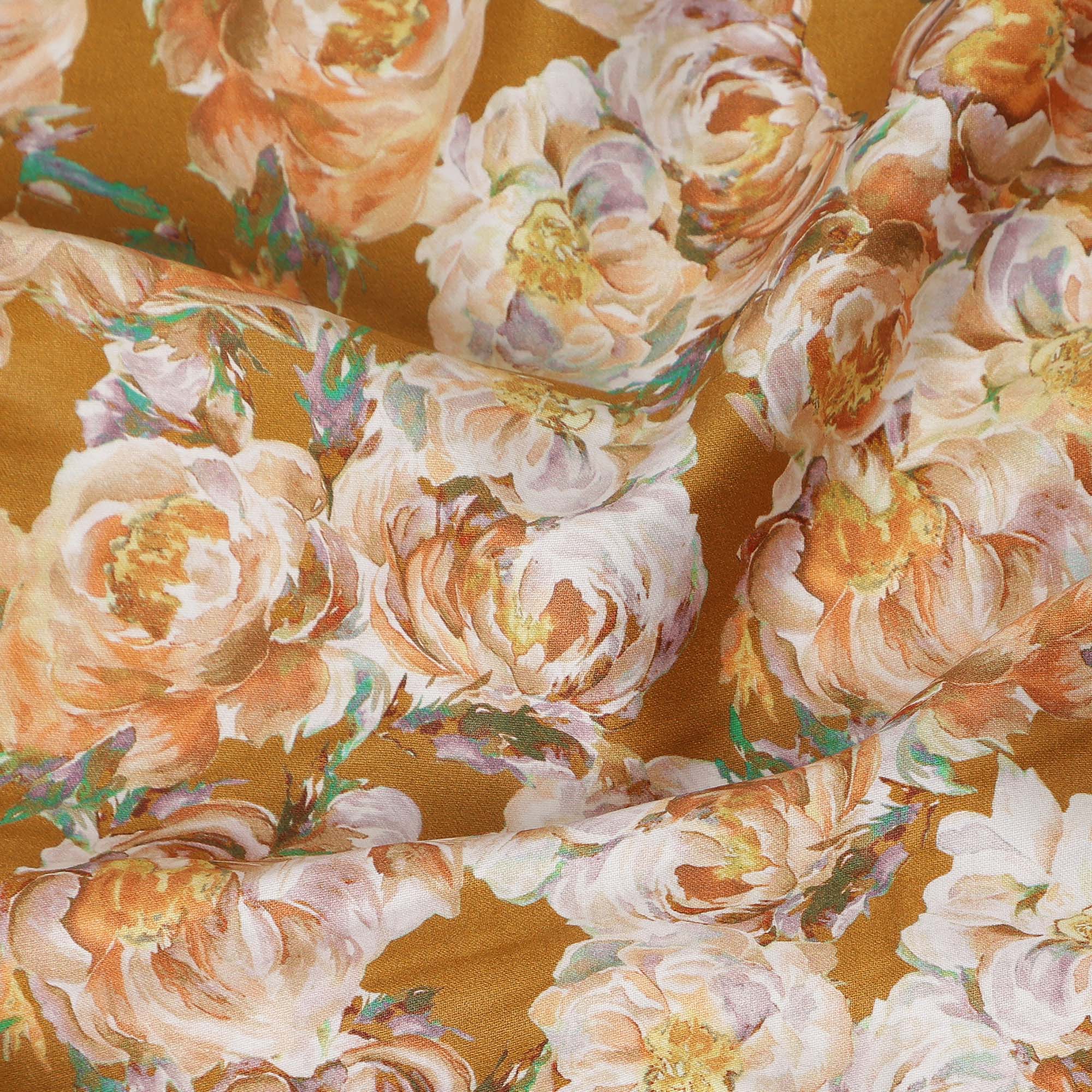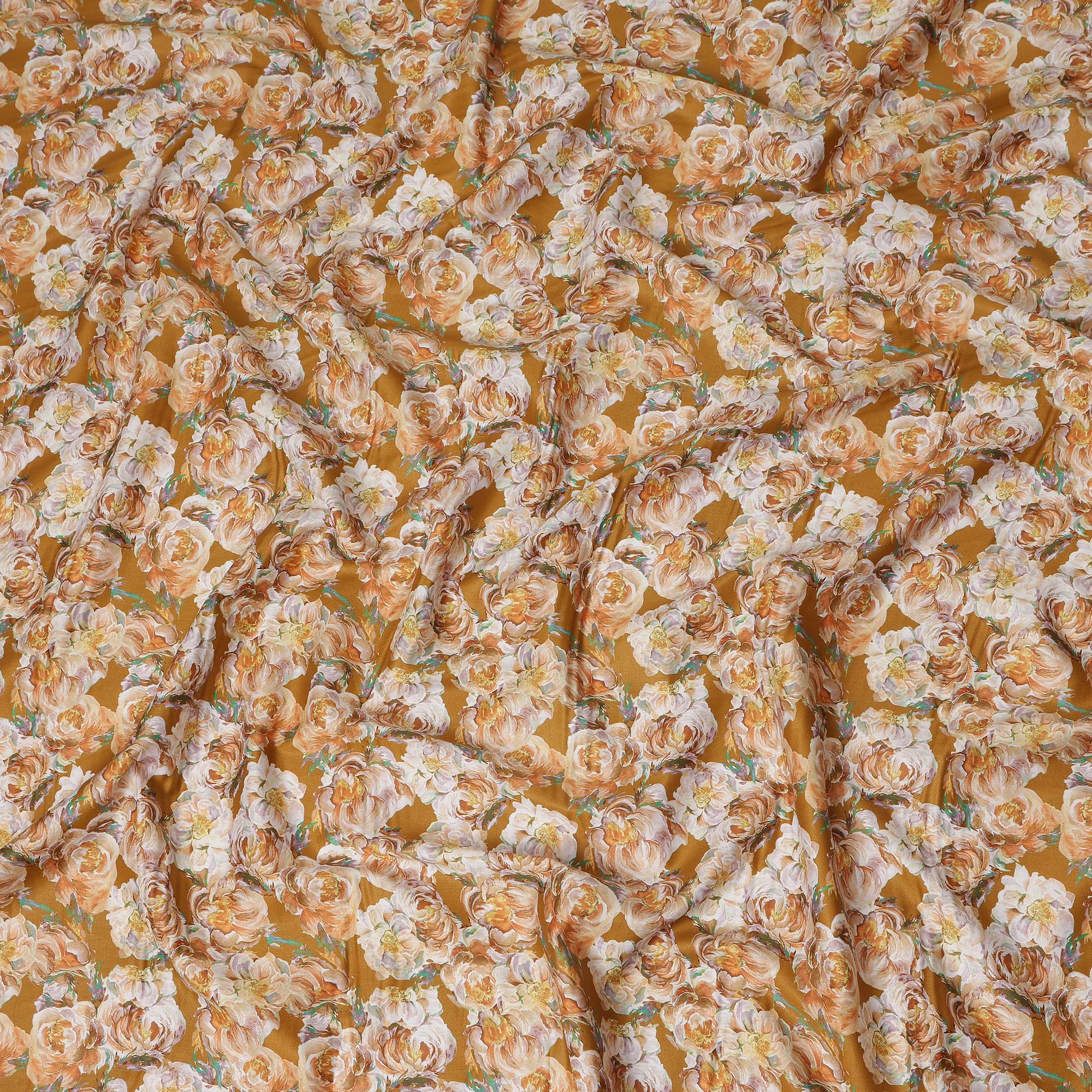 Elegant mustard yellow floral print suitable for ethnic, casual, and fusion outfits