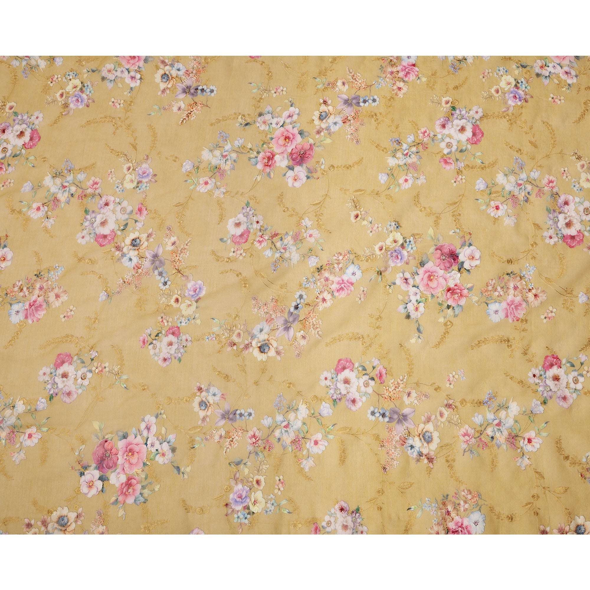 Mustard Yellow Floral Printed Viscose Cotton Fabric, 110 Cms Width, India-D24818