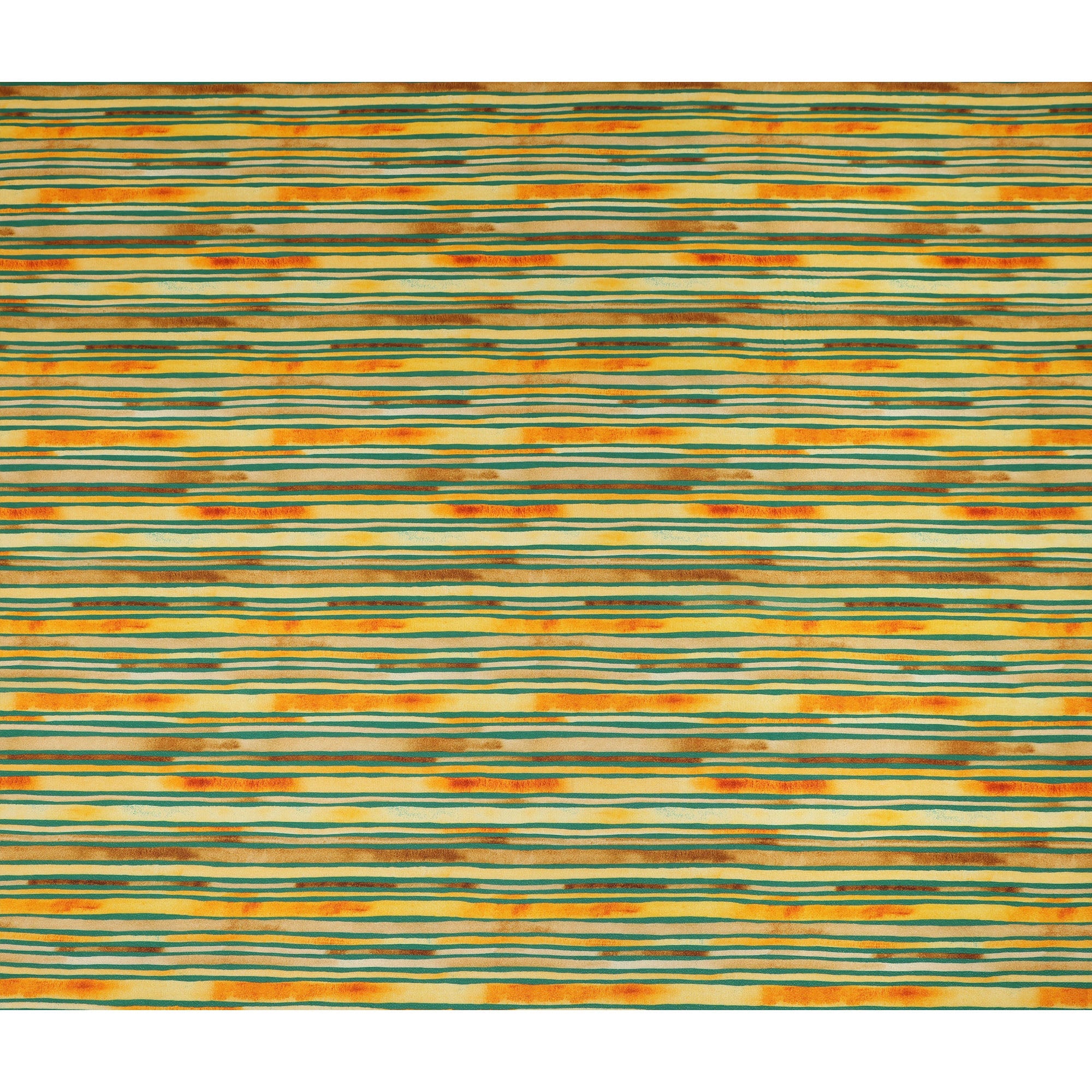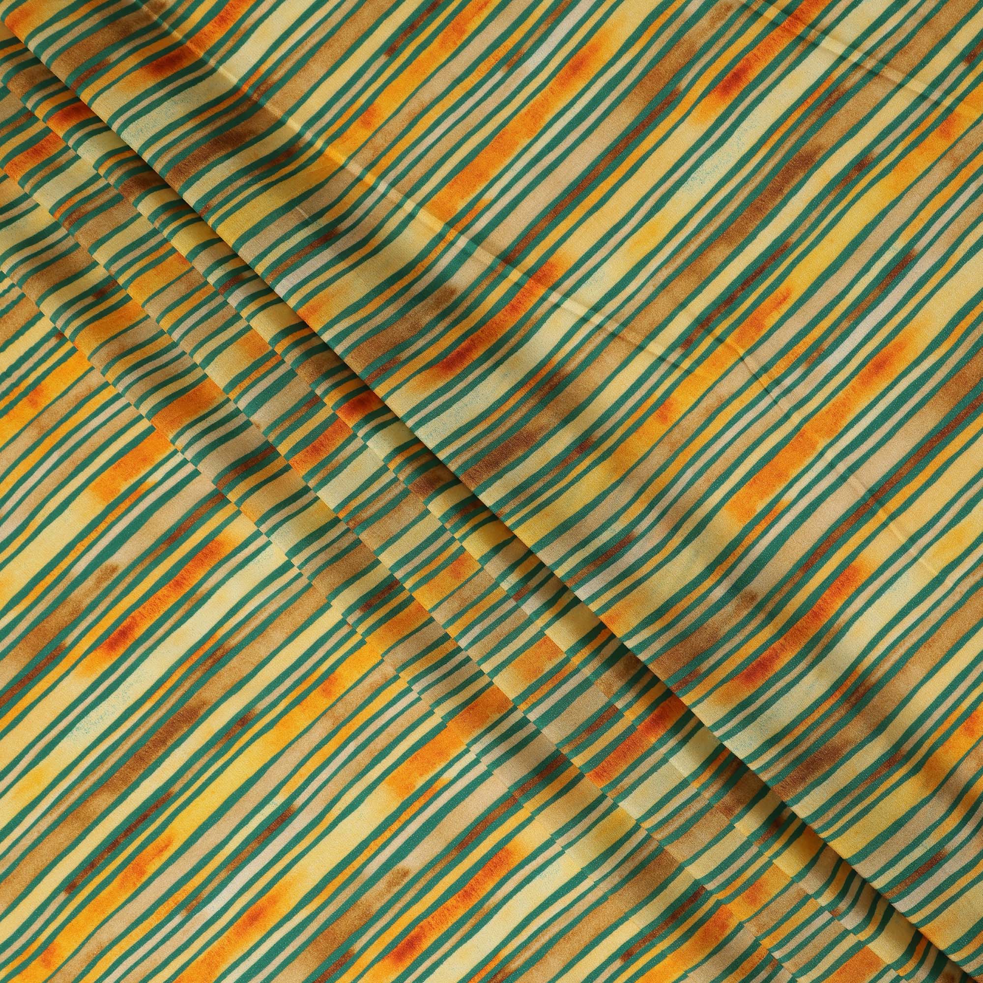 Mustard Yellow Striped Printed Viscose Modal Satin Fabric Green And Rust Multitone Line Design Soft Flowing Dress Material 110 Cms Width India-D28020
