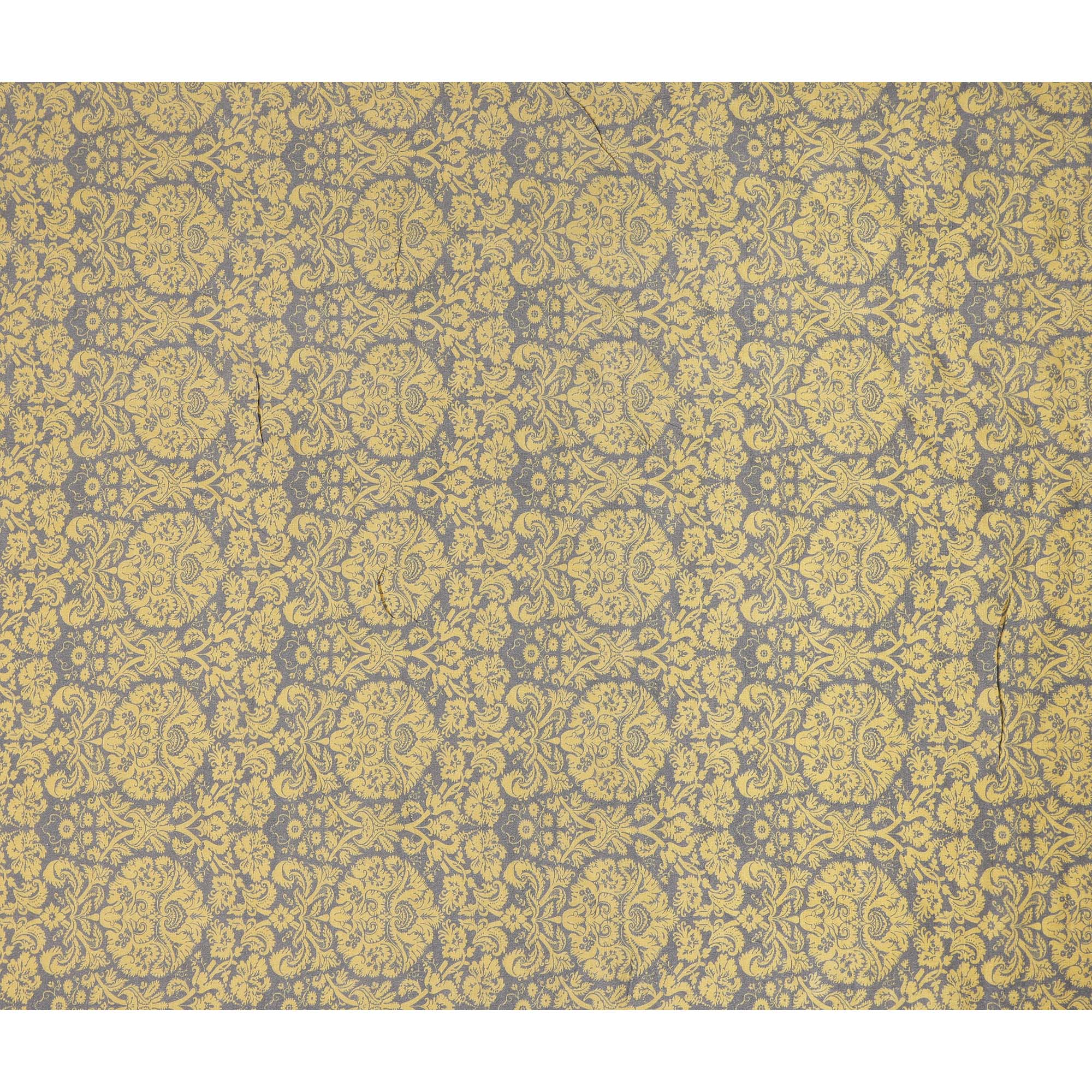 Mustard Yellow Vintage Floral Damask Printed Blended Cotton Linen Fabric Ornamental Botanical Classic Pattern Natural Textured Dressmaking Sewing Fabric 110 Cms Width Made In India-D28339