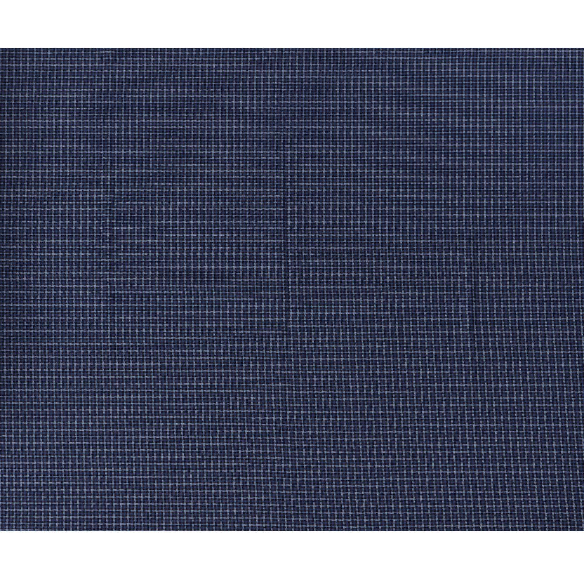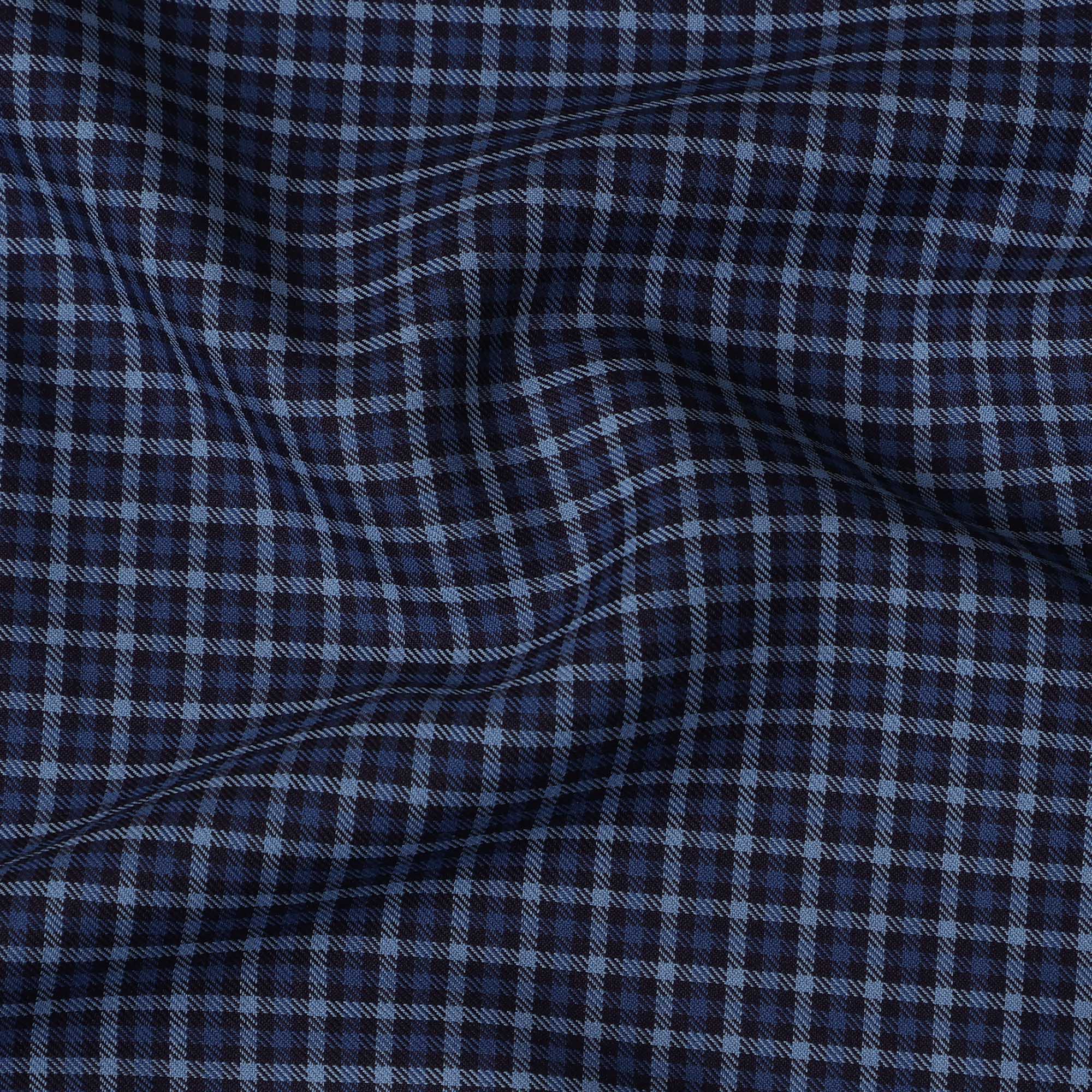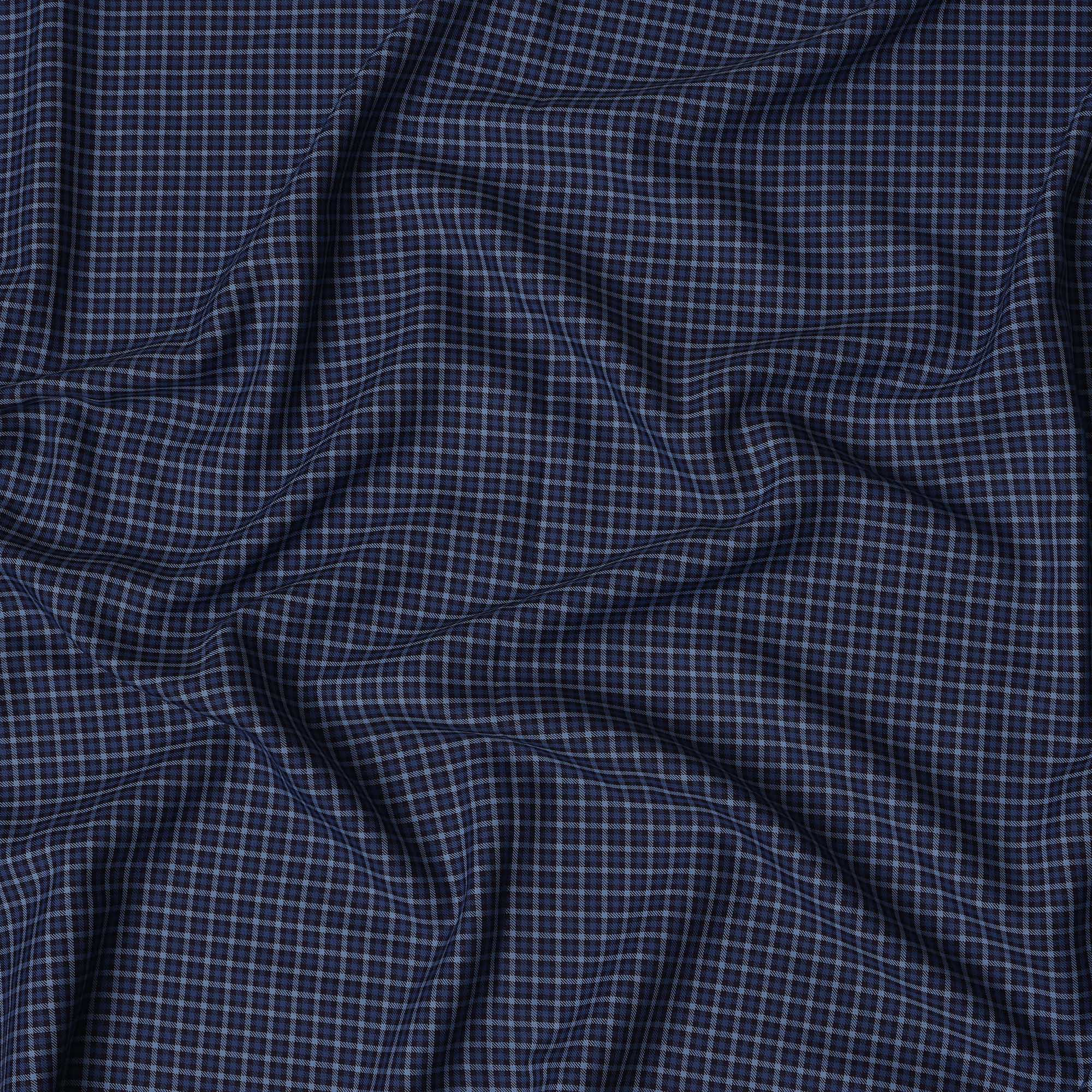 Sophisticated yet versatile, this navy blue and grey small check 100% cotton shirting fabric showcases a finely balanced grid pattern perfect for both formal and semi-formal wear. Crafted in Italy with premium cotton yarns, the intricate check design delivers visual texture and timeless charm, making it an ideal choice for everyday office shirts or weekend casuals. The deep navy blue base is elevated with soft grey and light blue lines, creating a refined palette suited for all skin tones. With a comfortable width of 150 cm, this fabric allows for seamless tailoring and detailed finishing. Its soft, breathable weave offers superior comfort for day-long wear while maintaining shape and structure through multiple washes. Shop online to bring home a classic checkered cotton shirting fabric that combines Italian craftsmanship with enduring style.