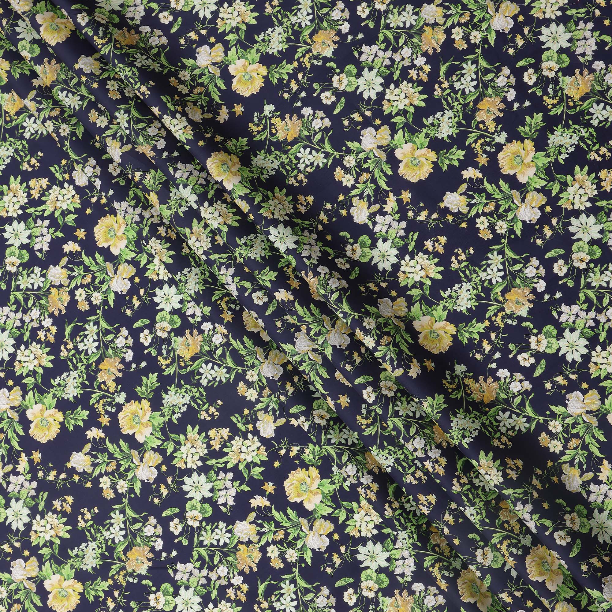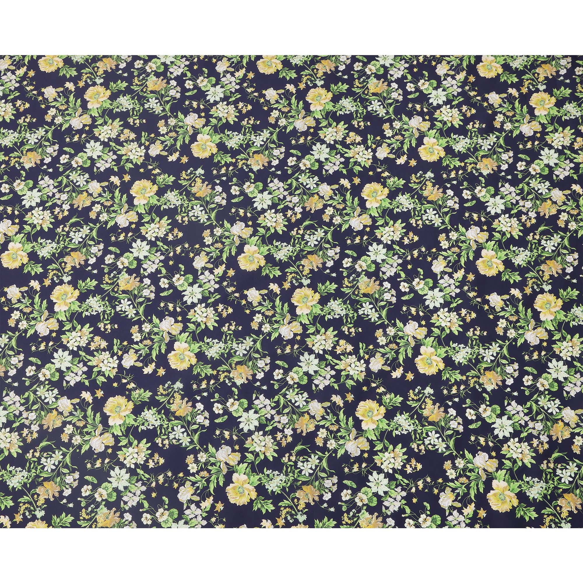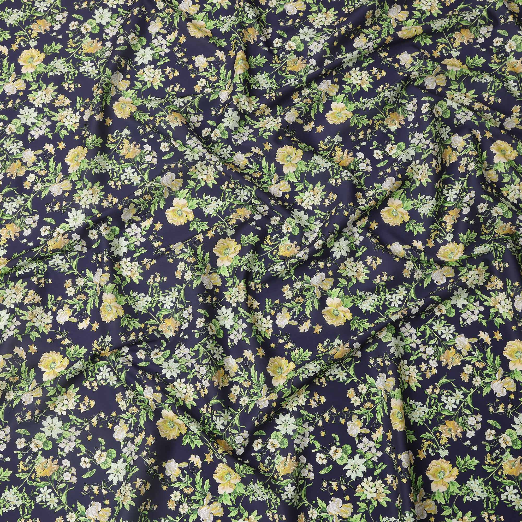 Navy Blue Base with Yellow and White Floral Print Pure Cotton Lawn Fabric, 140 Cms Width, Made in India-D26028