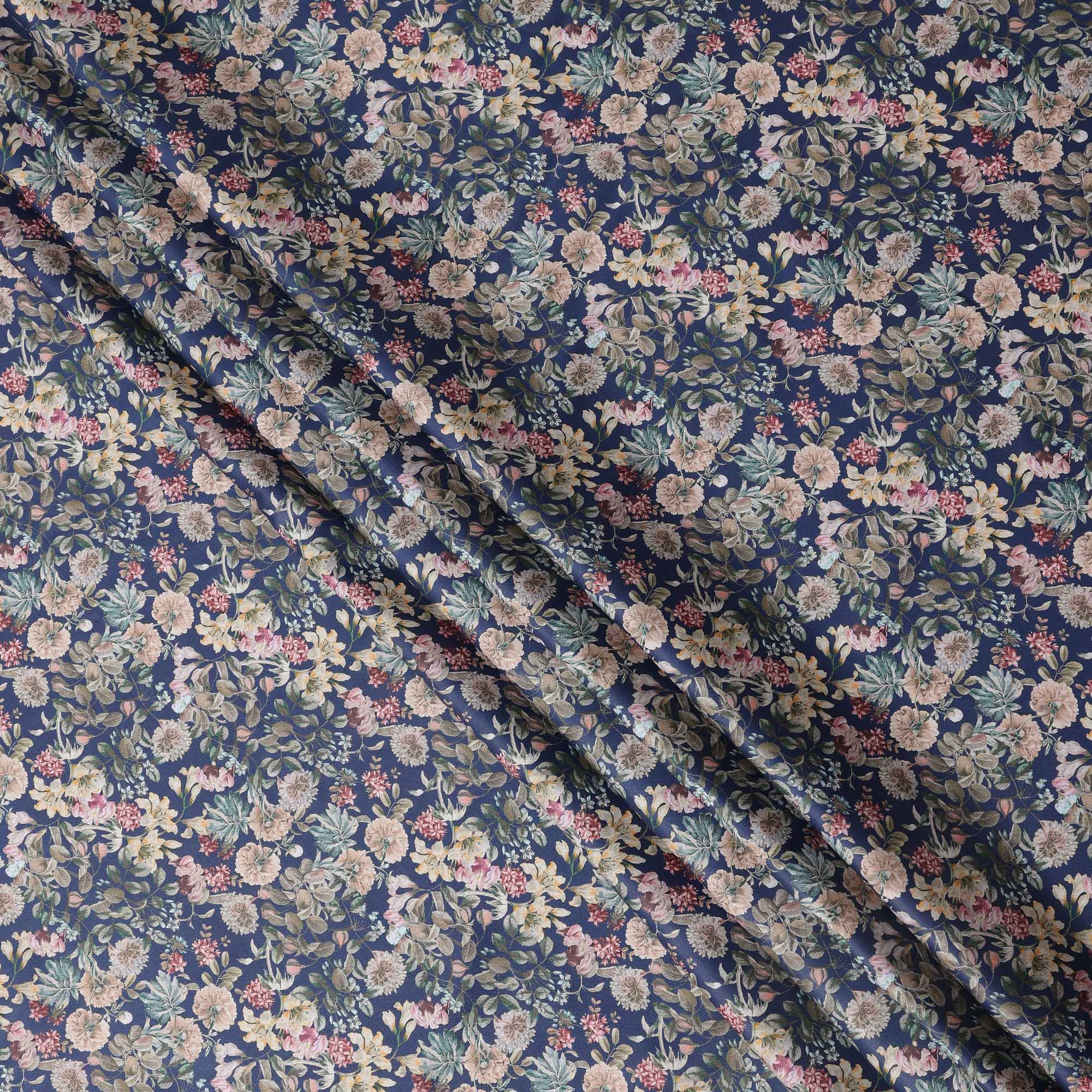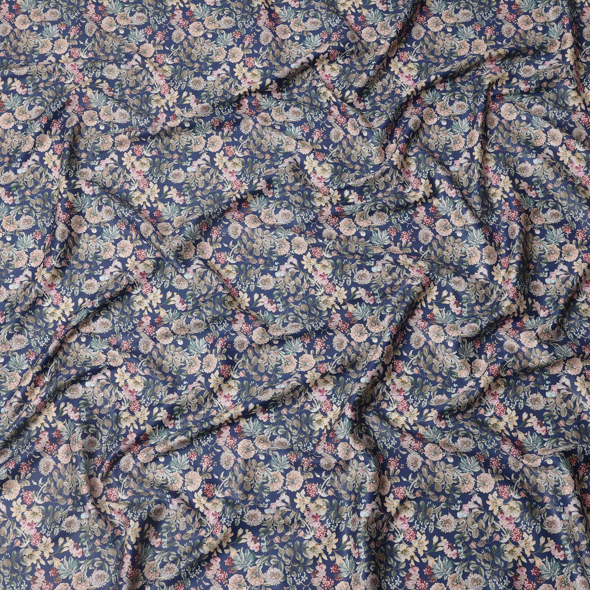 Navy Blue Floral Printed Cotton Lawn Fabric Soft Lightweight Dressmaking Sewing Material 4.0 Meters Length 110 Cms Width India-D27641