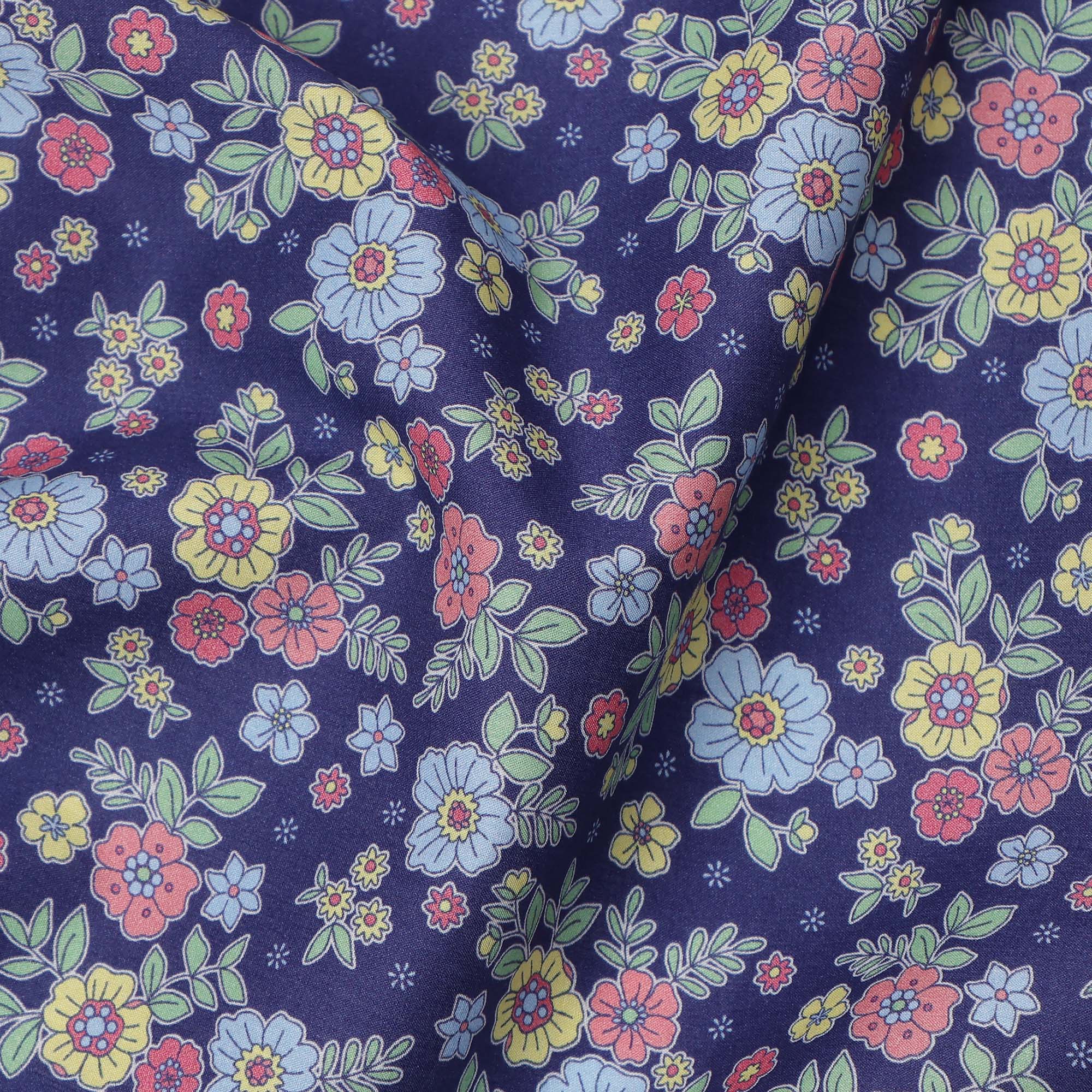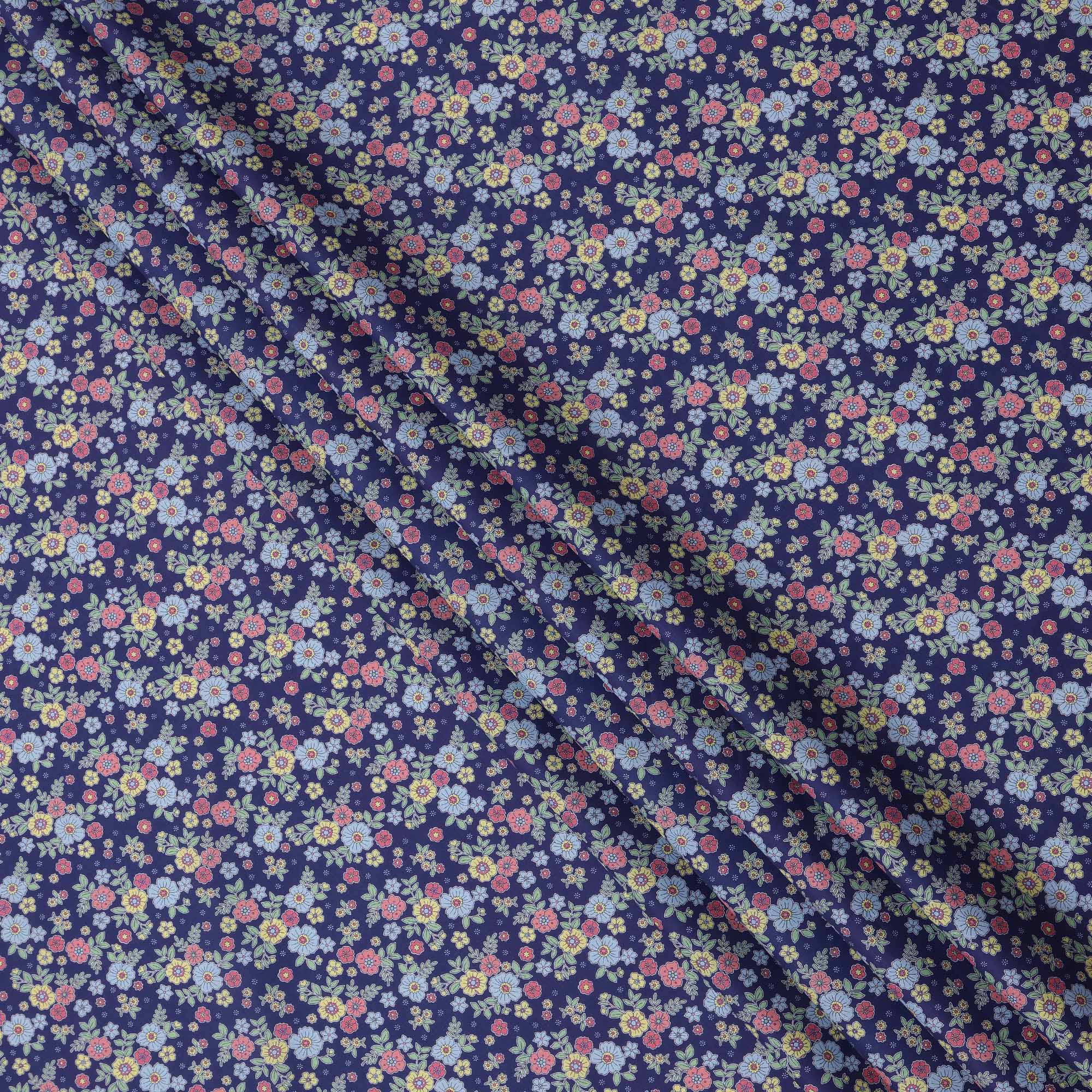 Navy Blue Multicolor Floral Print Cotton Lawn Fabric 110 Cms Width Japan-D24977