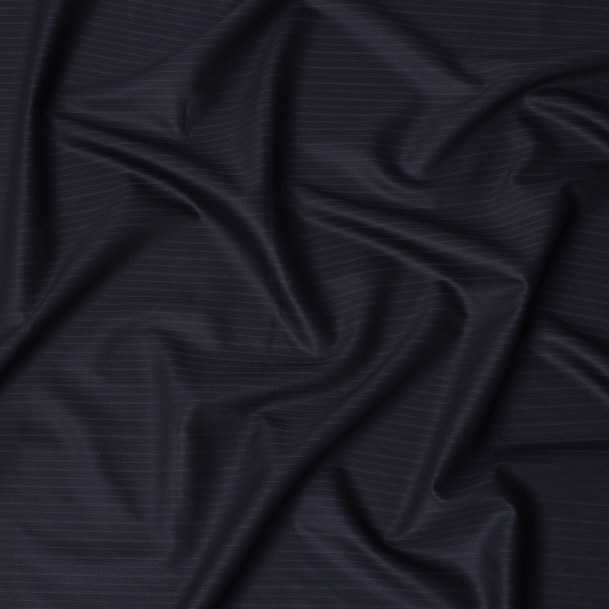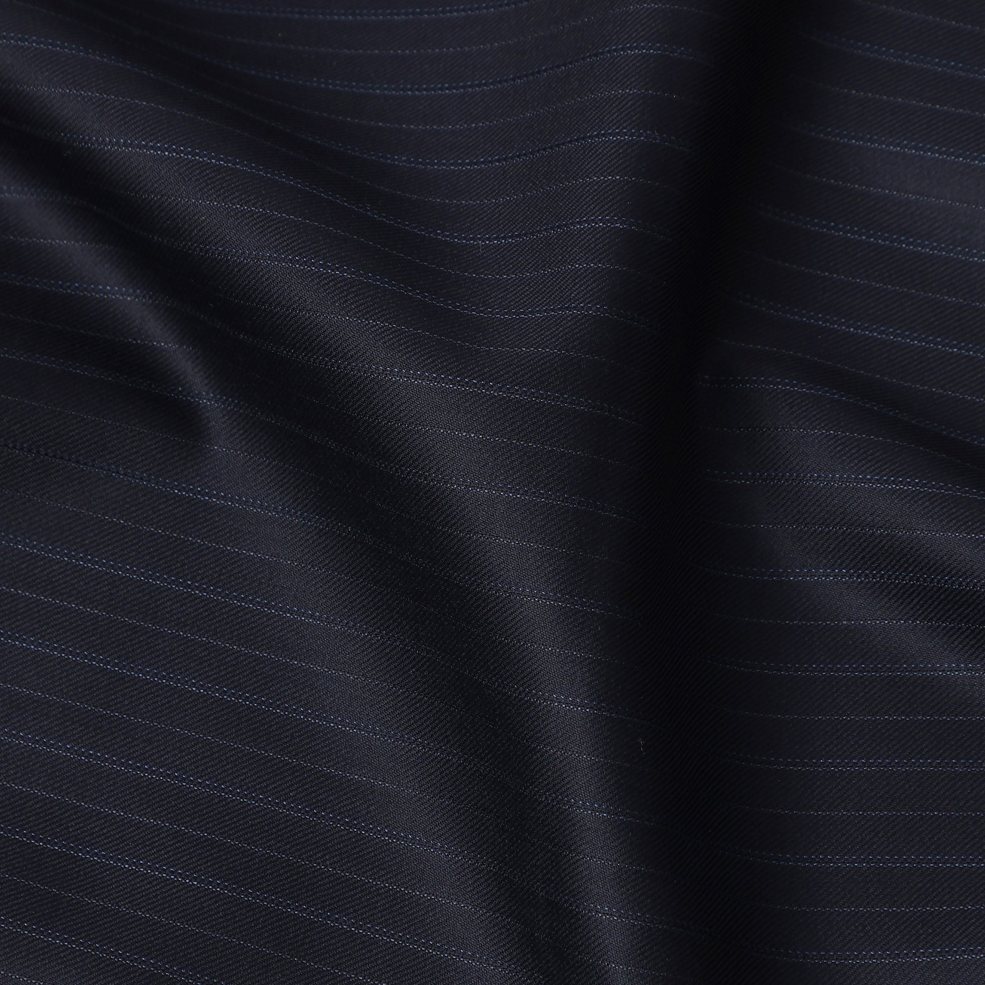 This Navy Blue Super Fine Italian All Wool Suiting Fabric features an elegant pinstripe pattern woven with exceptional precision, offering a luxurious texture, smooth finish, and refined sophistication ideal for premium bespoke tailoring. Crafted in Italy using superior long-staple wool, it provides excellent drape, breathability, and comfort while maintaining firmness and structure for impeccably tailored suits. The rich navy tone paired with fine pinstripes lends timeless versatility suited for business wear, formal suits, and high-end evening ensembles. With its 150 cm width and a generous 4.0-meter piece length, this suiting fabric ensures ample material for crafting a complete tailored outfit with precision. Designed for customers who value craftsmanship and elegance, it is a perfect choice for those looking to buy online or shop online for luxury Italian suiting fabrics.