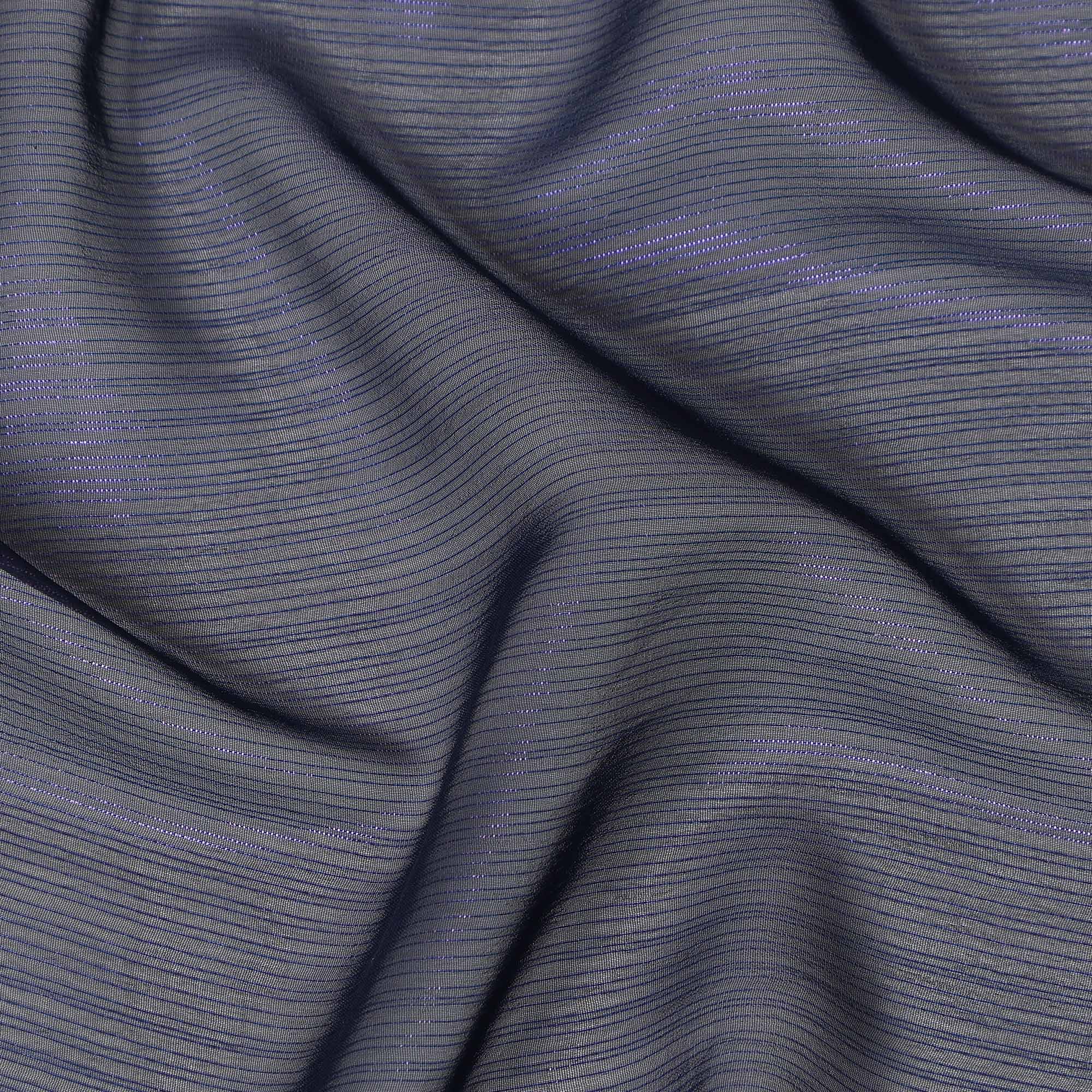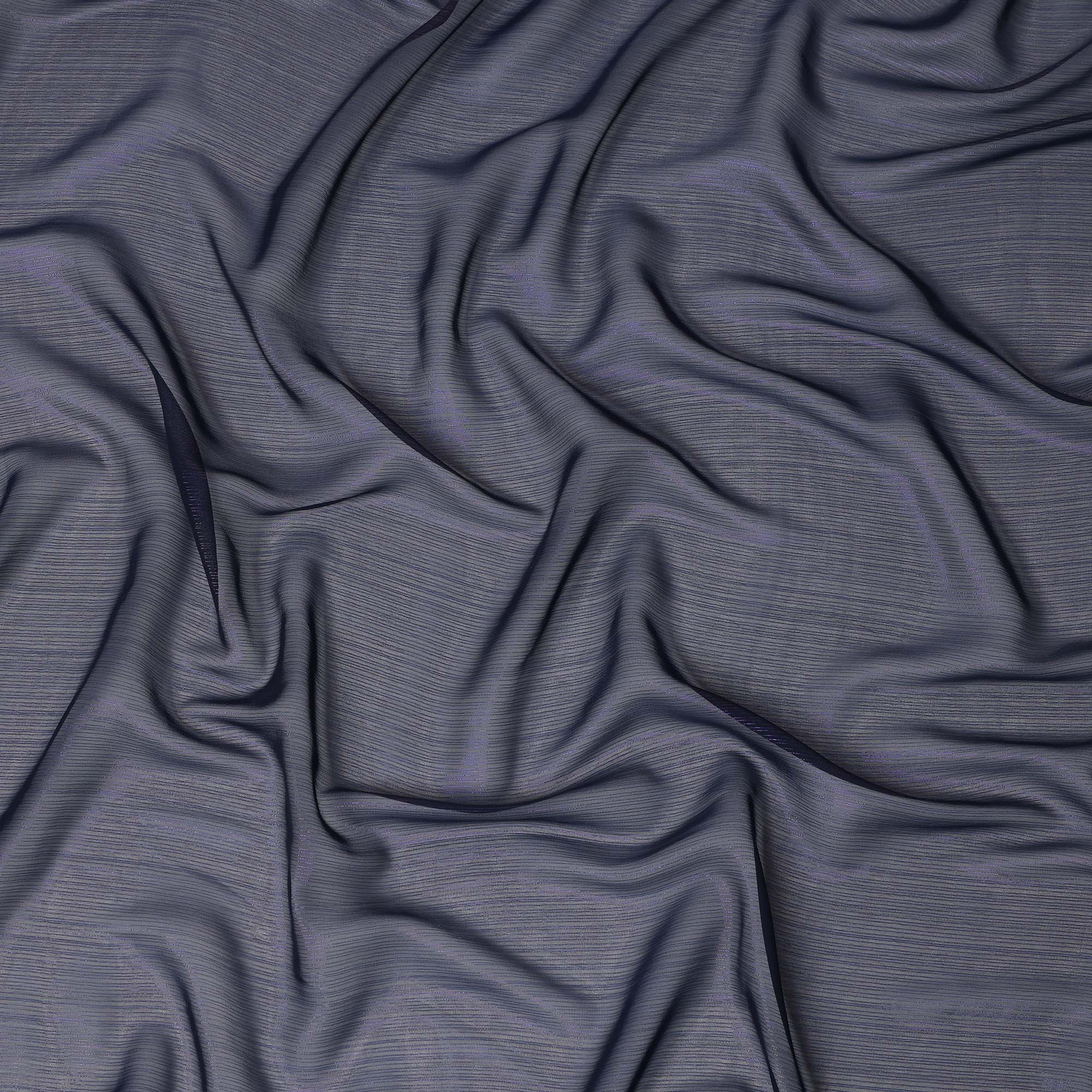 This navy blue synthetic chiffon fabric features a deep and sophisticated tone enhanced with subtle self-textured linear detailing that adds... Read more Read more
