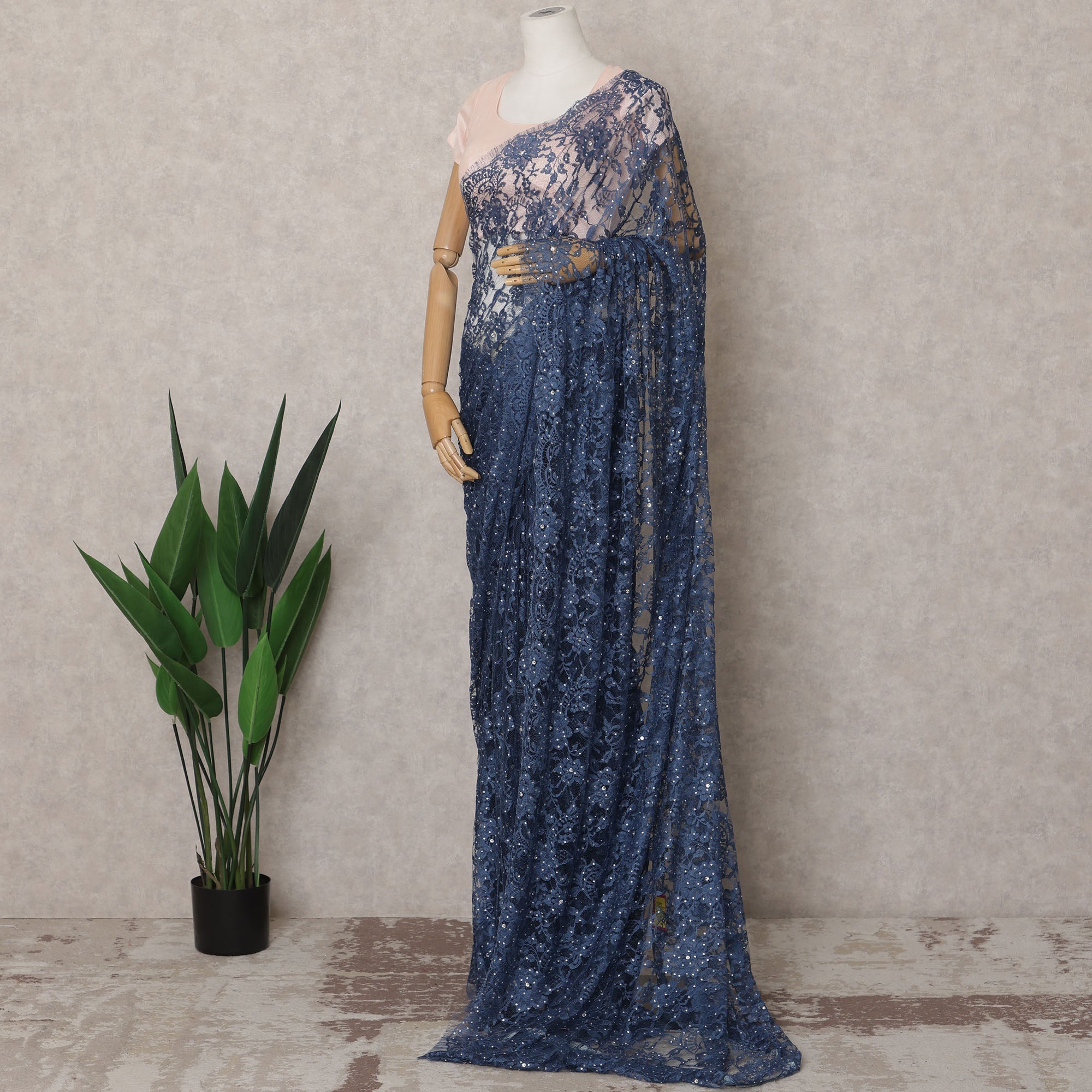 Shop online for exclusive navy blue French Chantilly lace saree fabric
