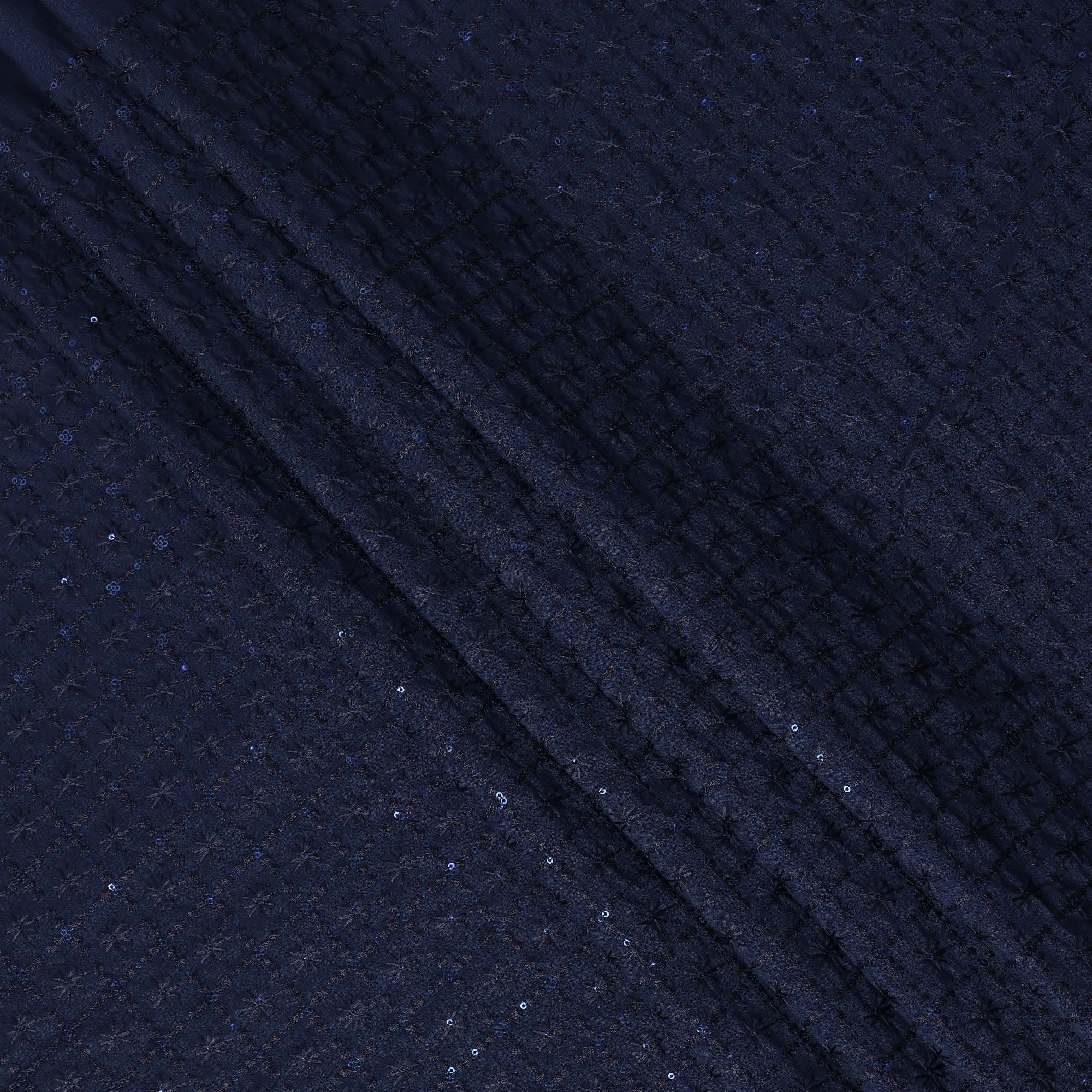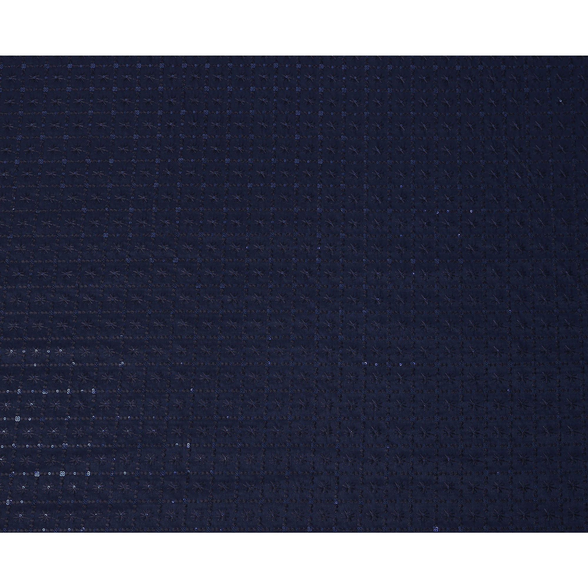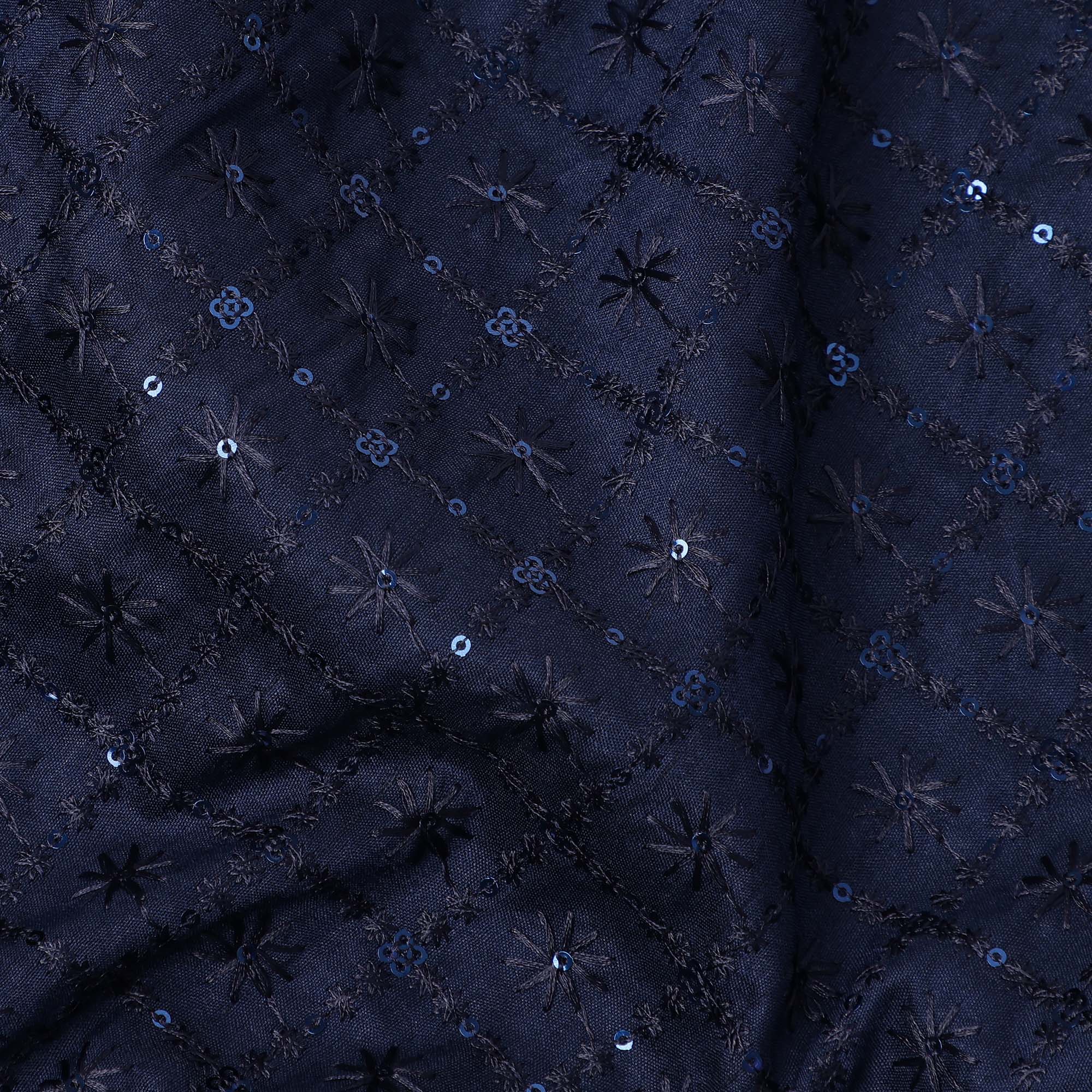 Navy Blue Sequin Embroidered Self Design Synthetic Cotton Fabric, 140 Cms, India-D25383