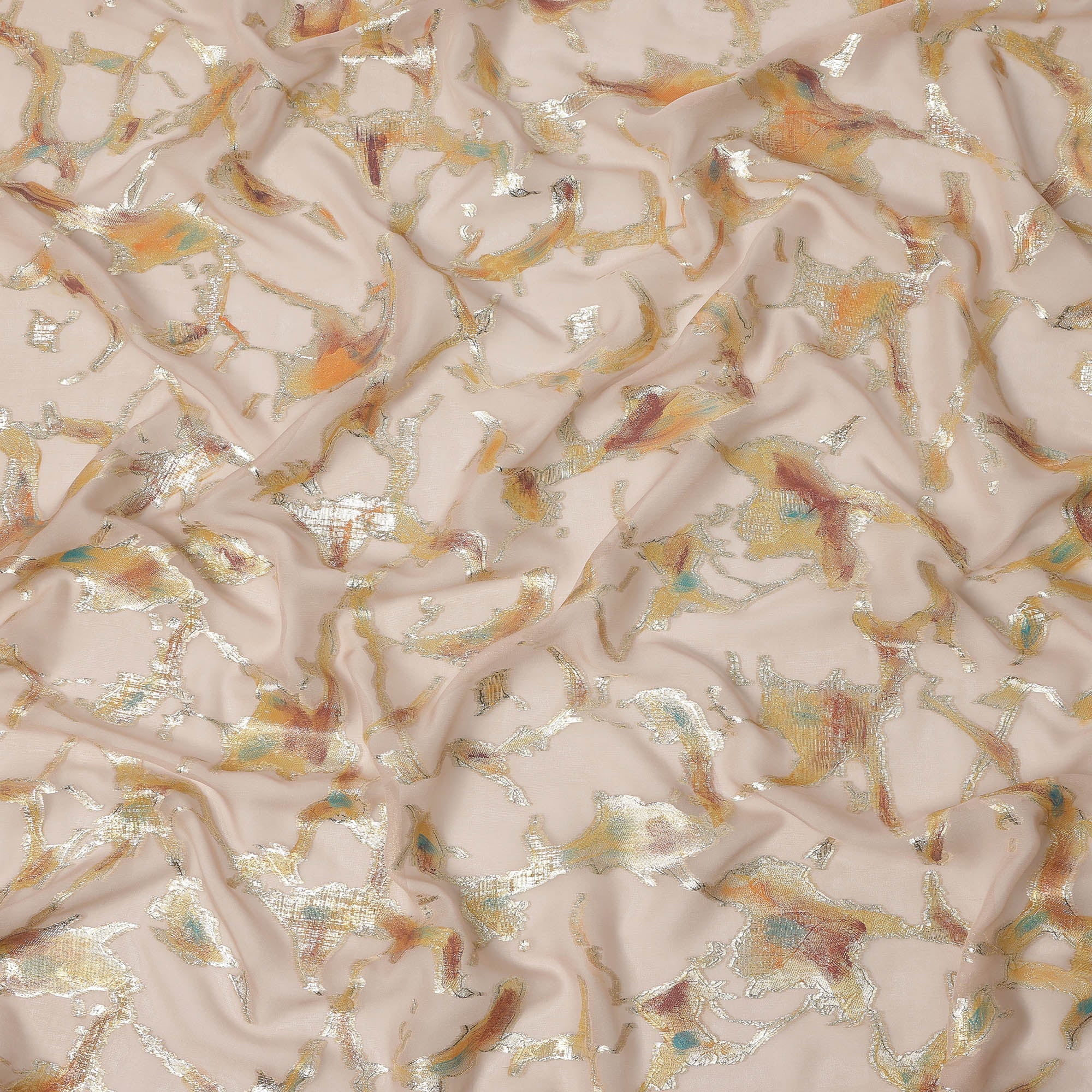 Nude Blush Abstract Metallic Hand Print Premium Pure Silk Chiffon Fabric, 110 Cms, South Korea-D26917