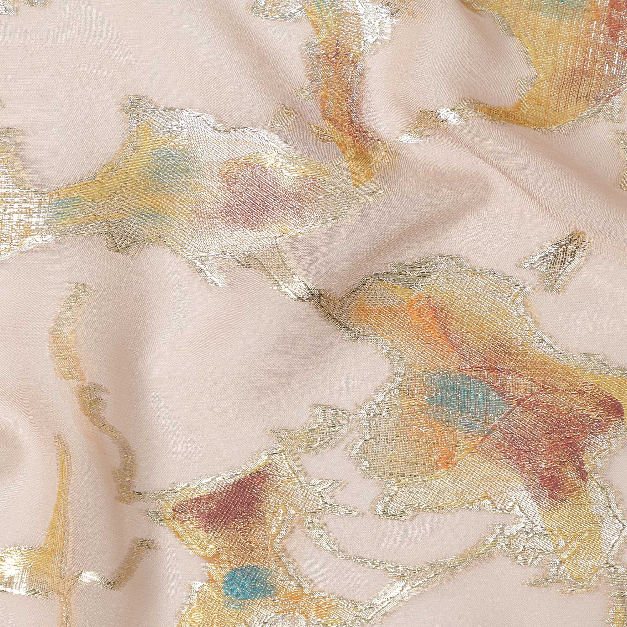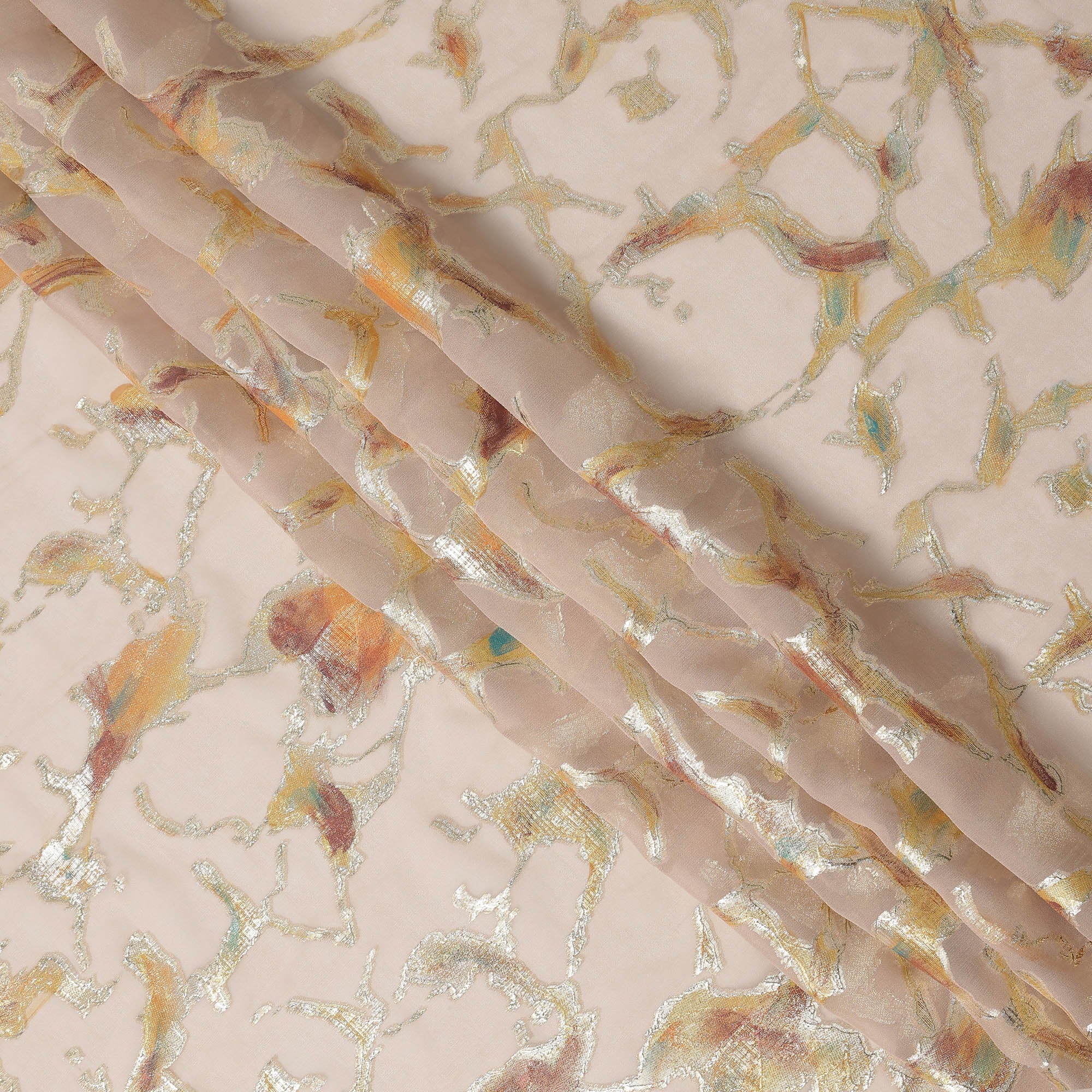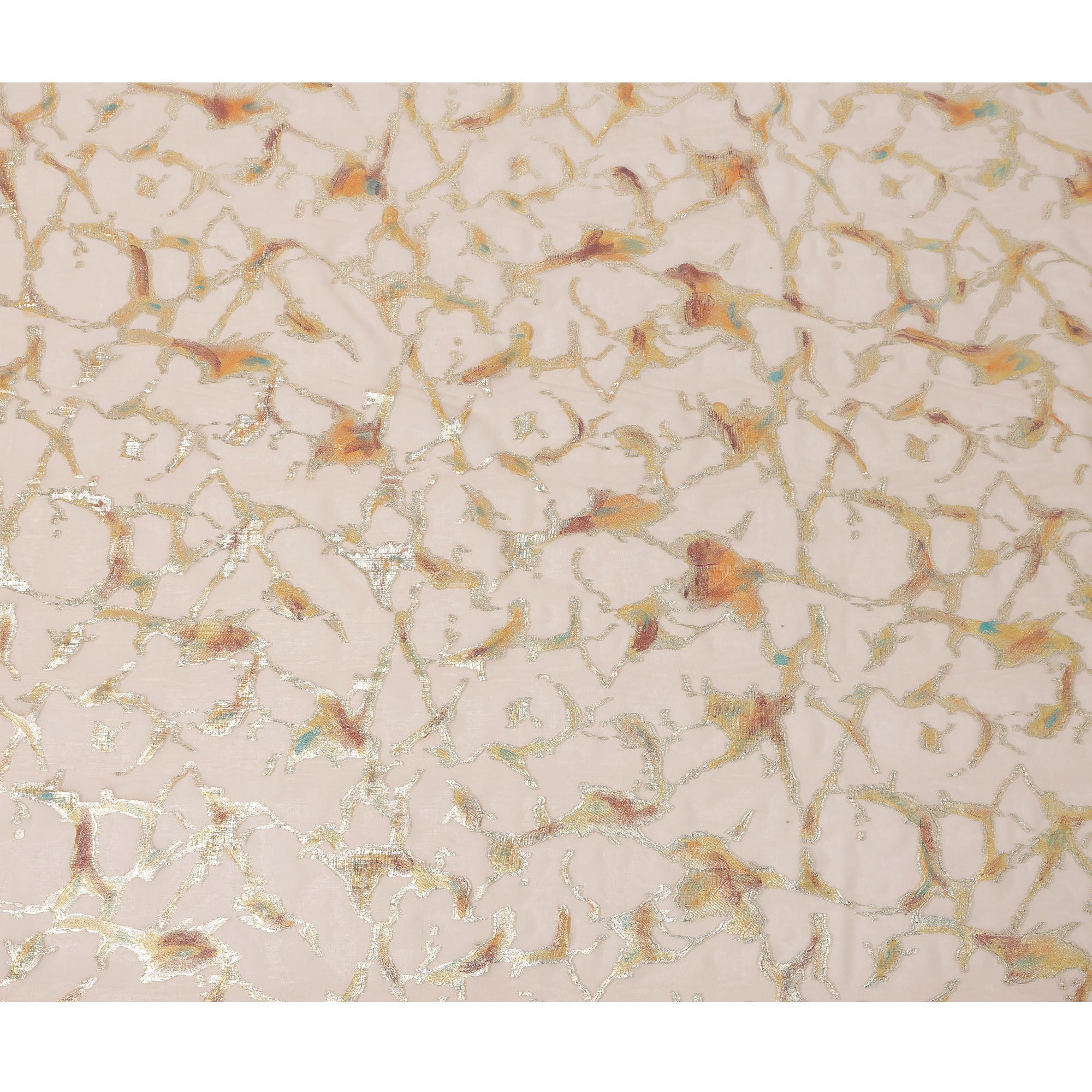 Premium nude blush pure silk chiffon fabric with abstract metallic hand print.