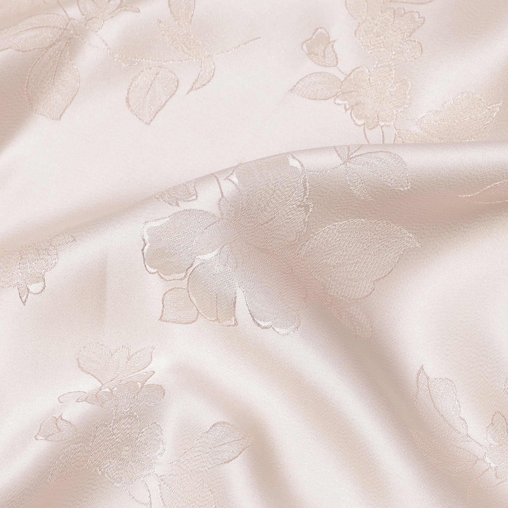 Nude Pink Floral Self-Design Pure Silk Satin Fabric 140 Cms Width Made in China-D24900