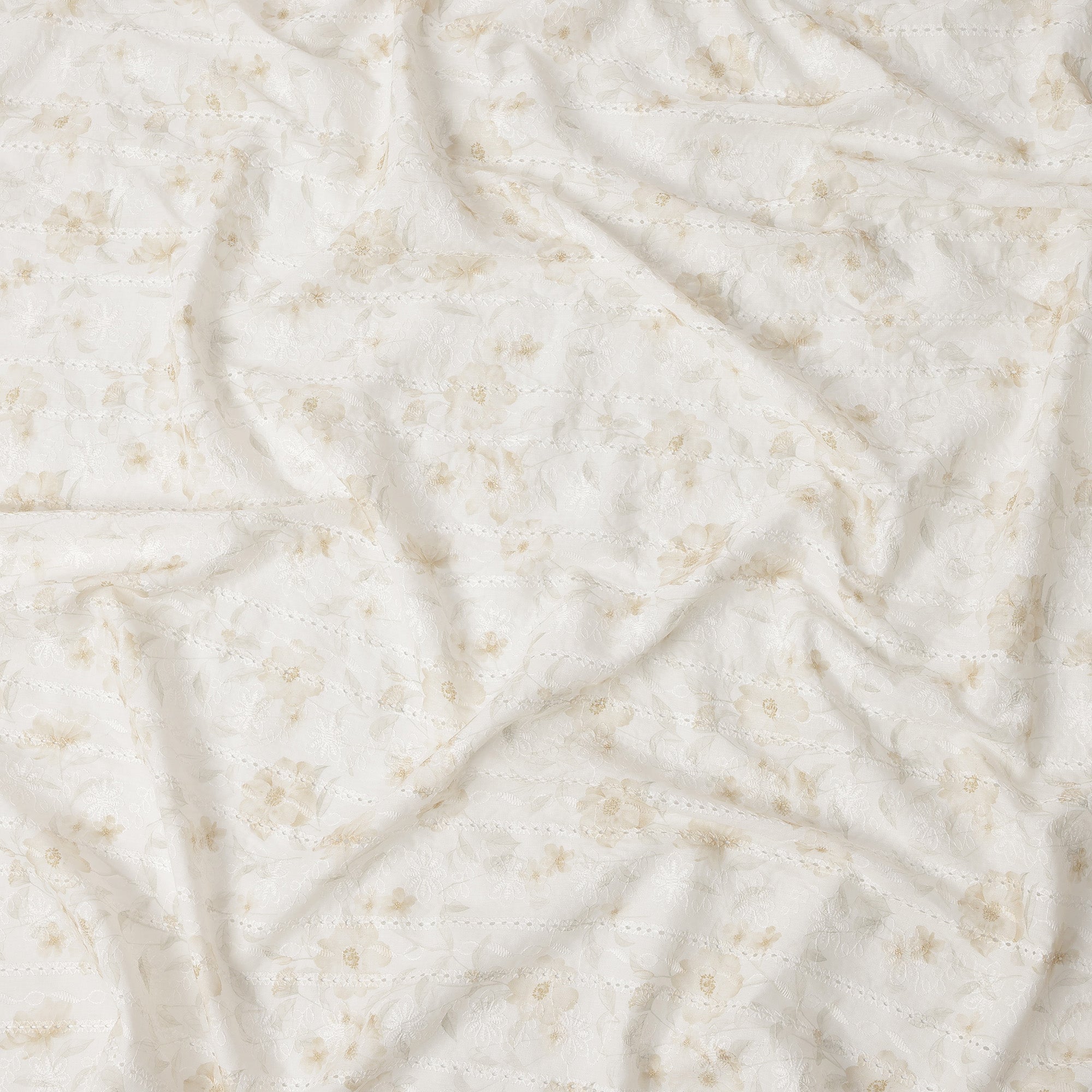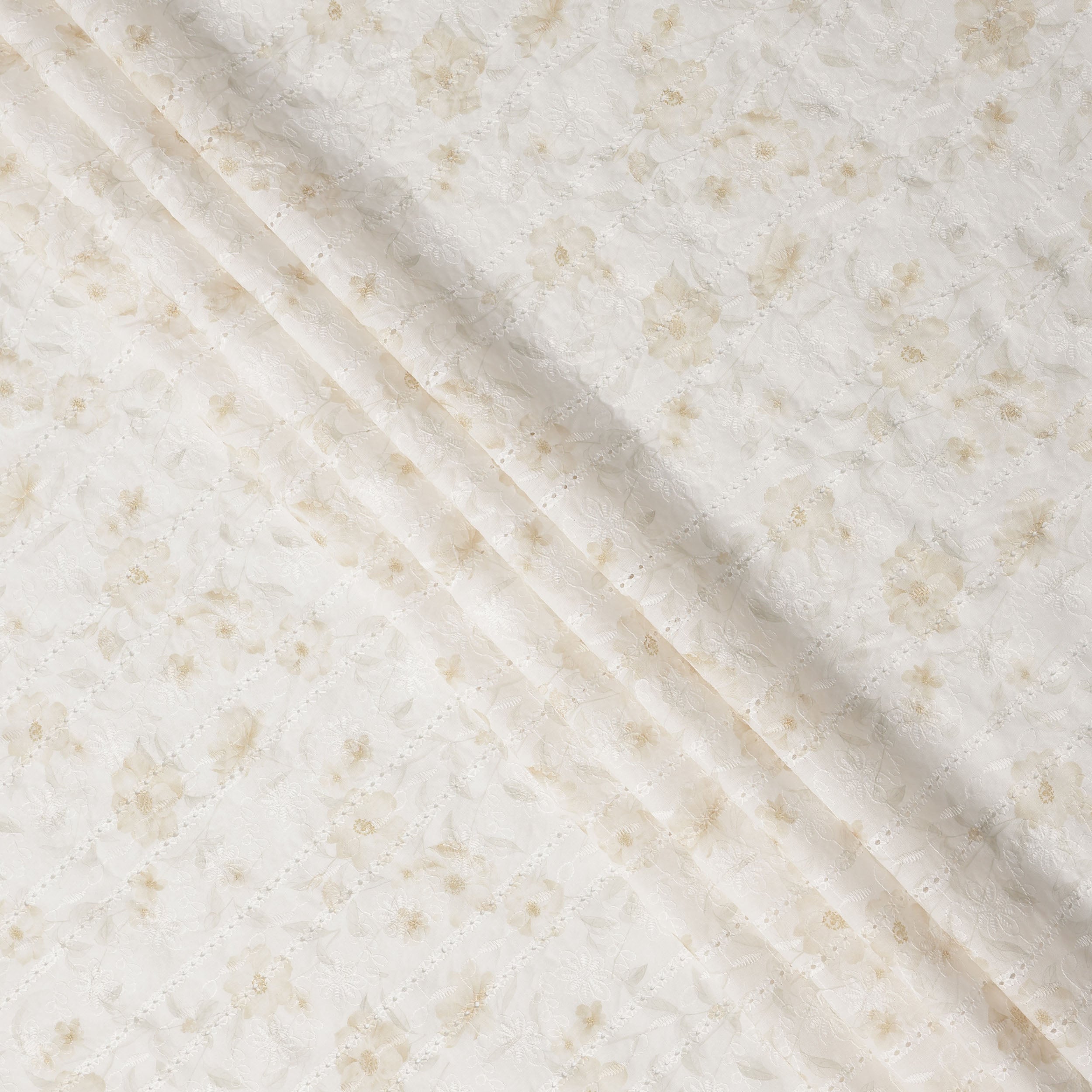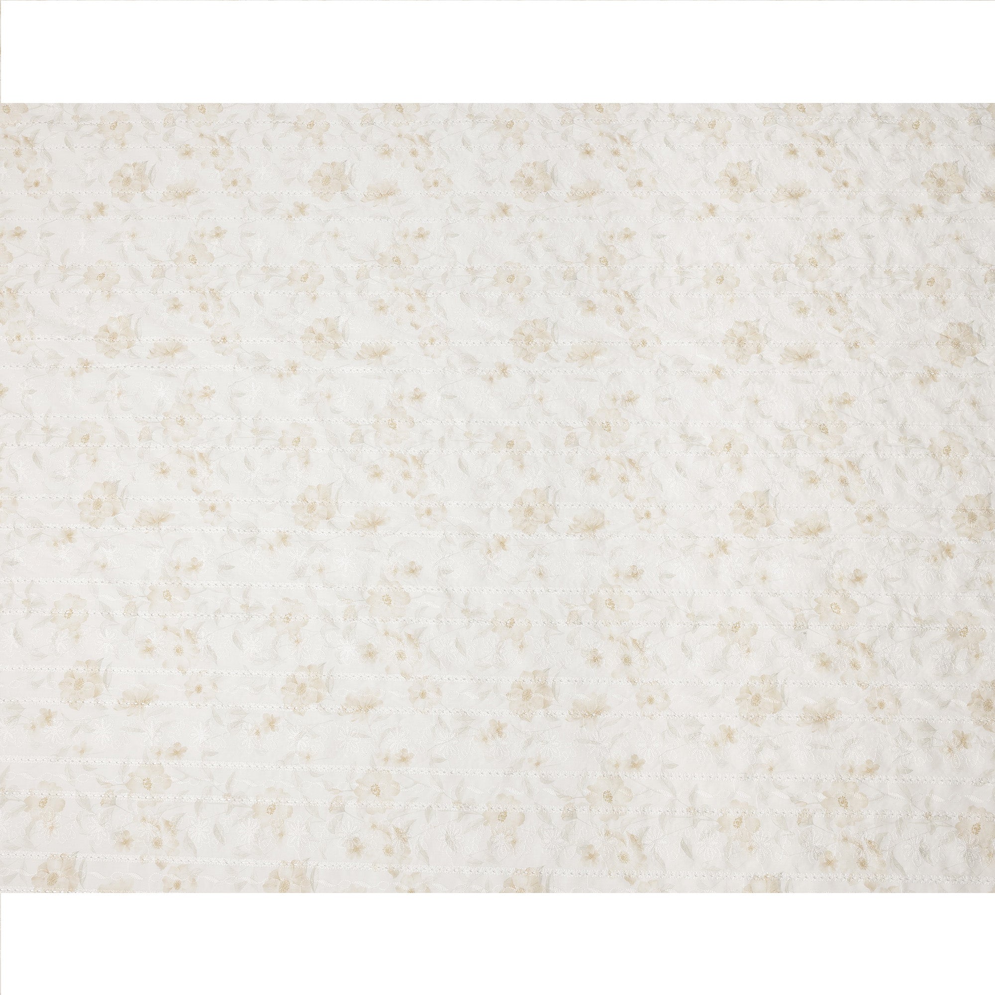 This off white cotton voile embroidery fabric features a soft beige floral pattern that brings subtle elegance and timeless charm... Read more Read more