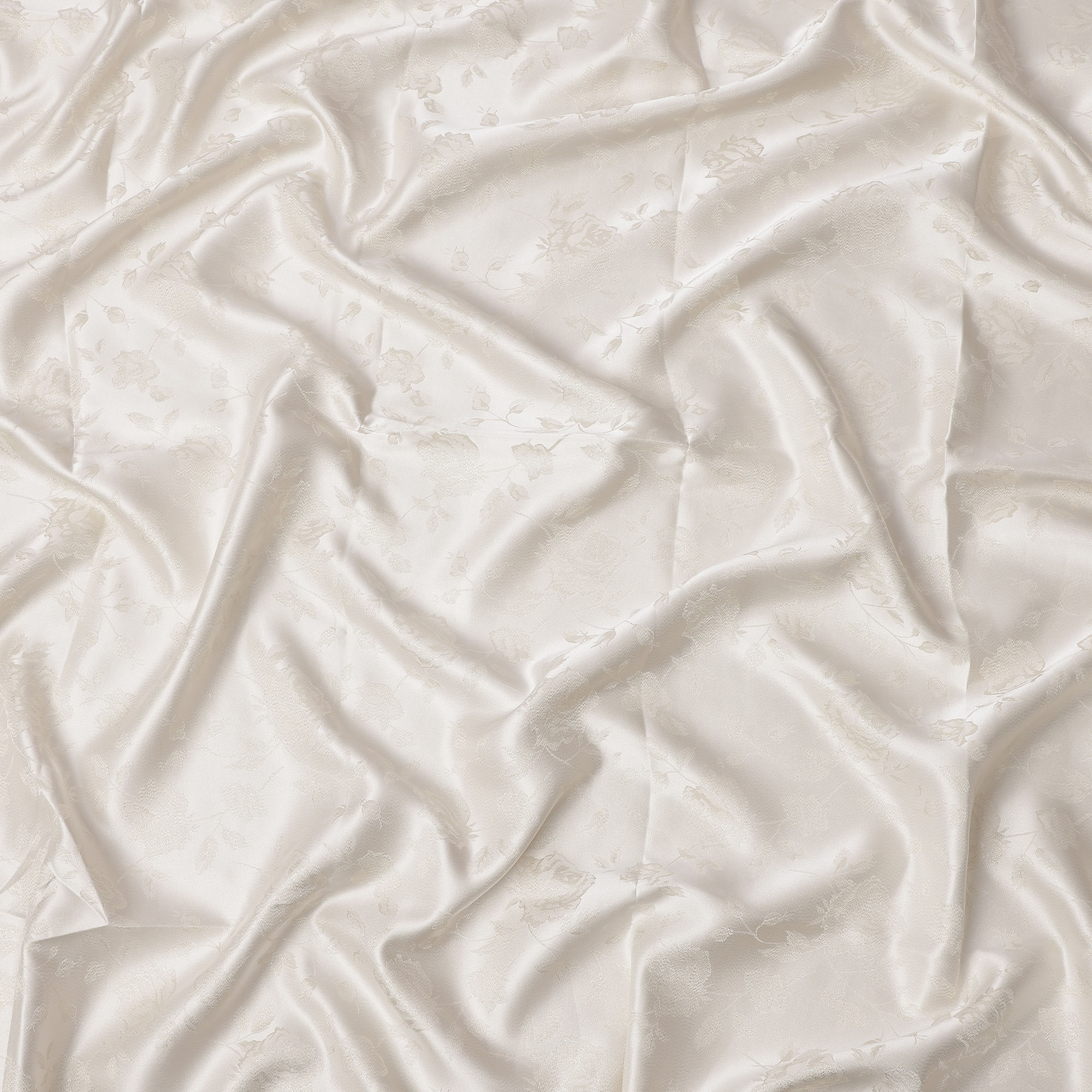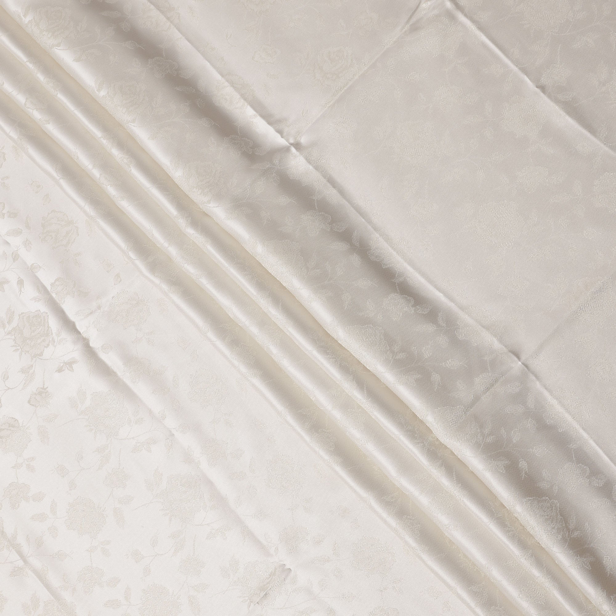 Off white pure silk satin fabric with elegant floral self-design