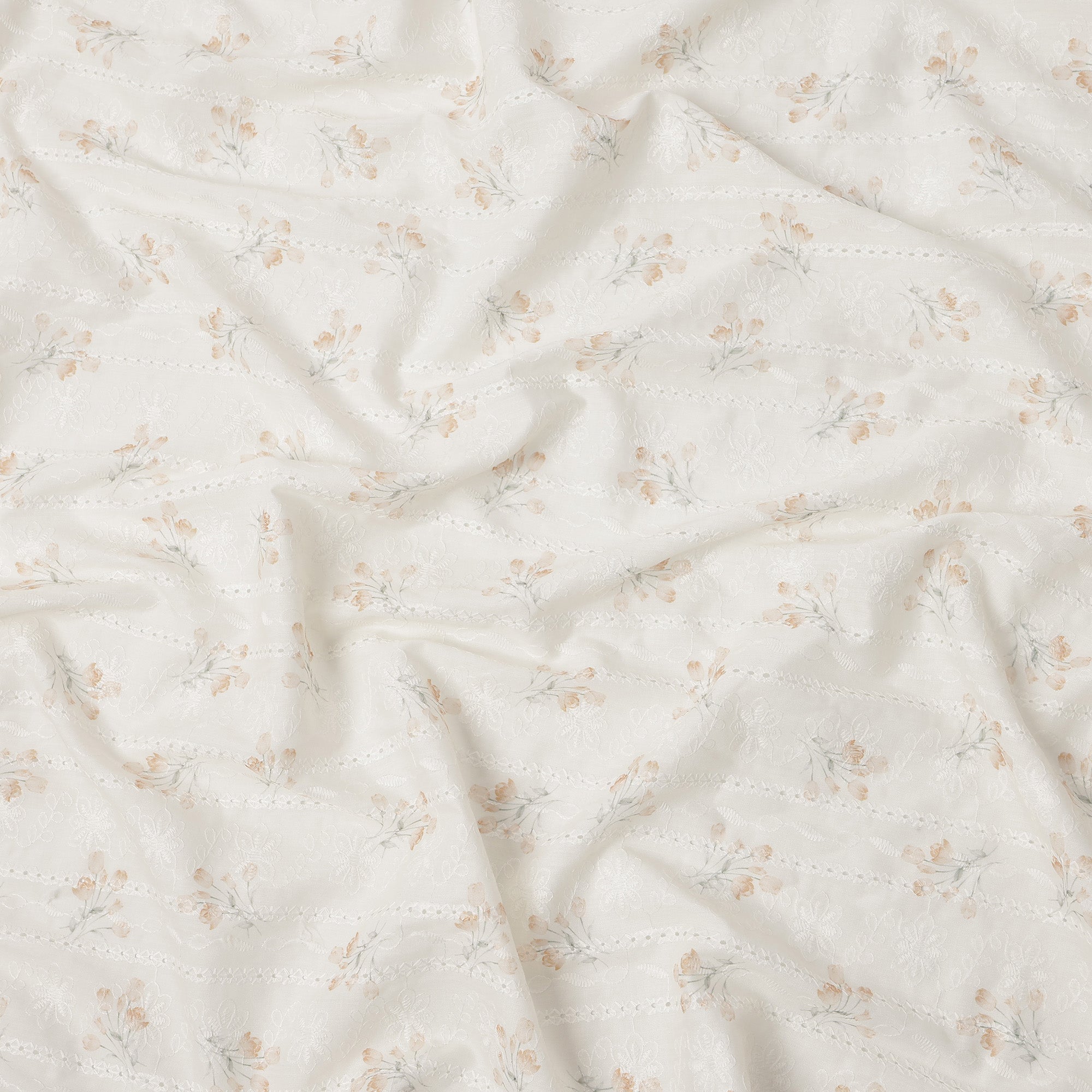Off White Peach Floral Embroidered Cotton Voile Fabric Soft Sheer Lightweight Design 150 Cms Width Made in India-D27446