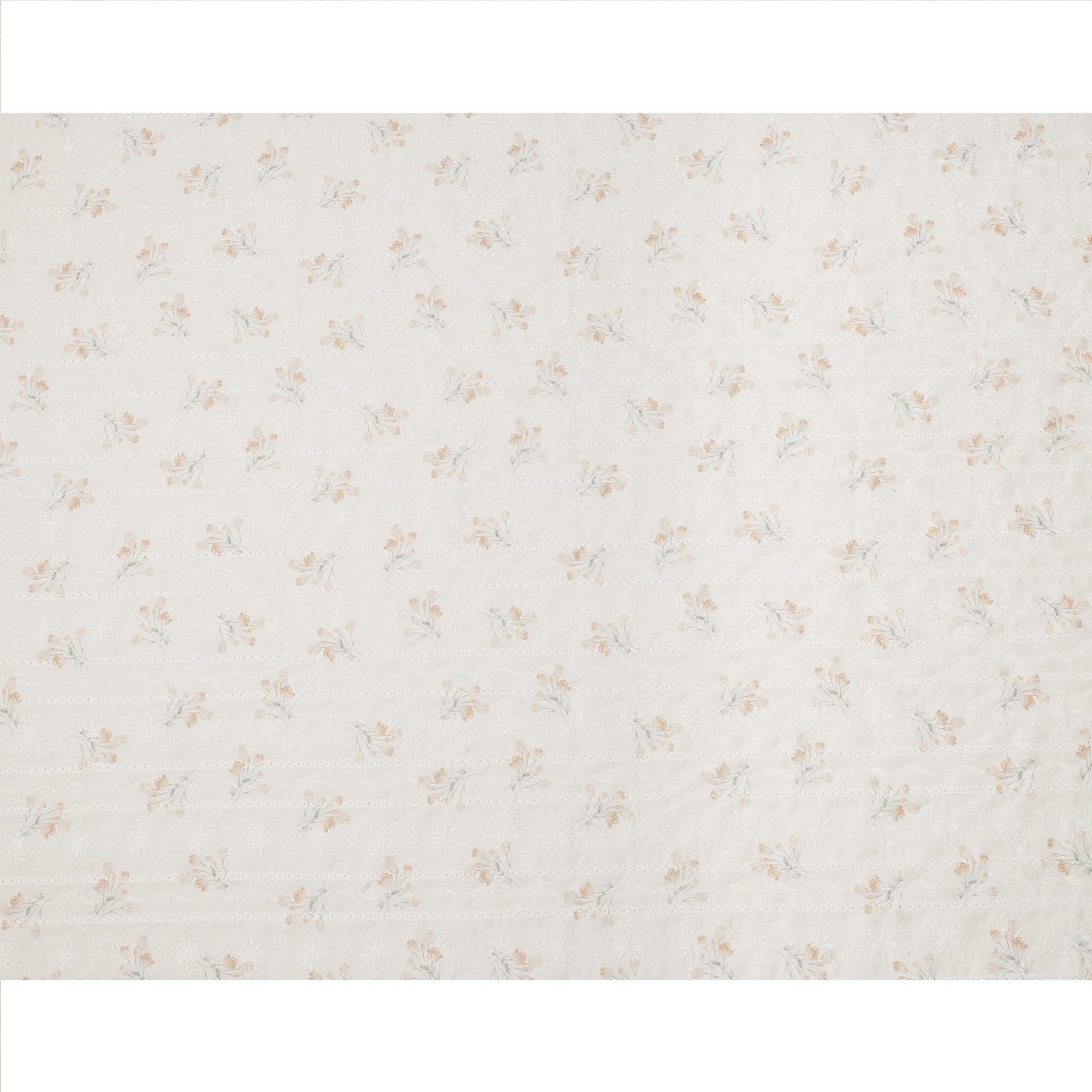 This off white cotton voile embroidery fabric is created for refined styling where comfort, elegance, and subtle detailing matter most. Made from premium cotton voile, the fabric is exceptionally lightweight, breathable, and soft, making it ideal for warm climates and long hours of wear. The delicate peach floral embroidery blends harmoniously with the off white base, offering a graceful and understated look that suits dresses, kurtis, blouses, tunics, overlays, and elegant ethnic or fusion garments. Its sheer texture enhances fluid drape while maintaining enough structure for clean tailoring and well-defined silhouettes. Easy to handle, cut, and stitch, this fabric supports precise embroidery alignment and smooth finishing, making it a dependable choice for designers, boutiques, and home creators seeking timeless beauty with everyday comfort.