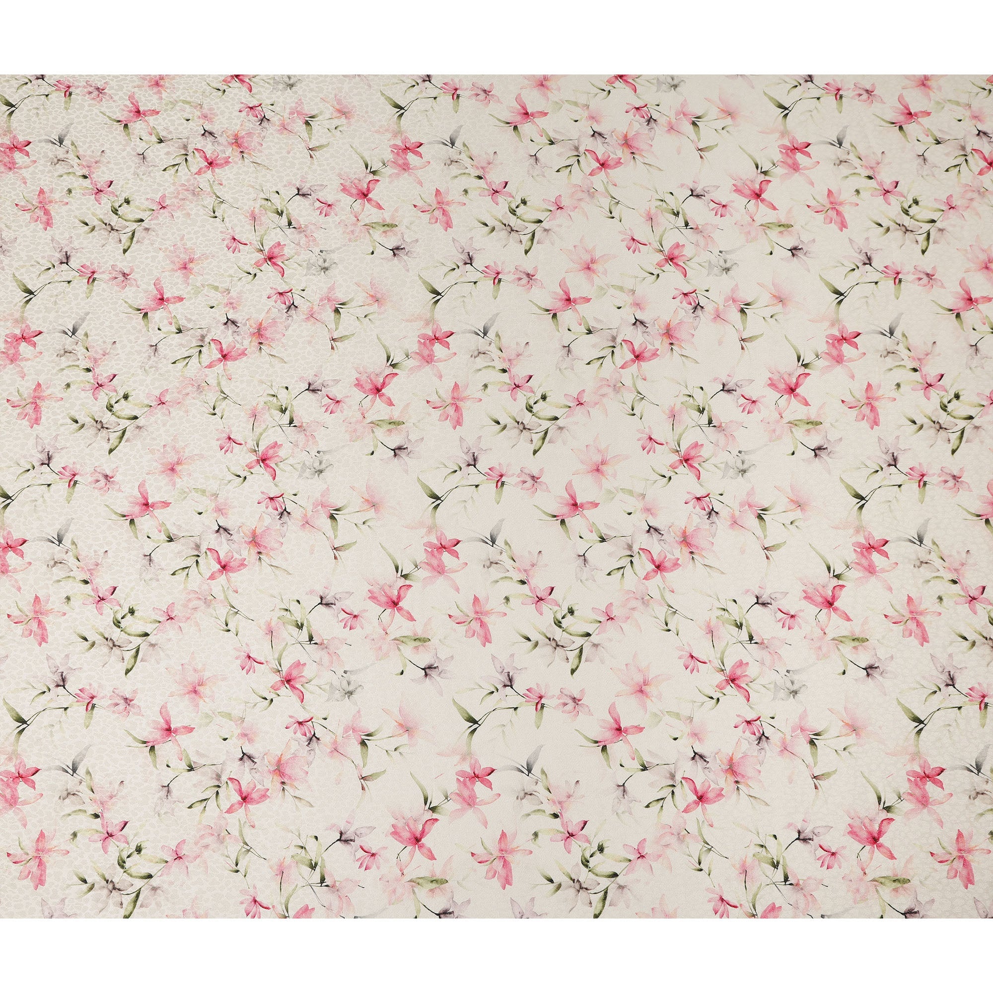 Delicate pink floral print on off white base creates a fresh elegant appeal