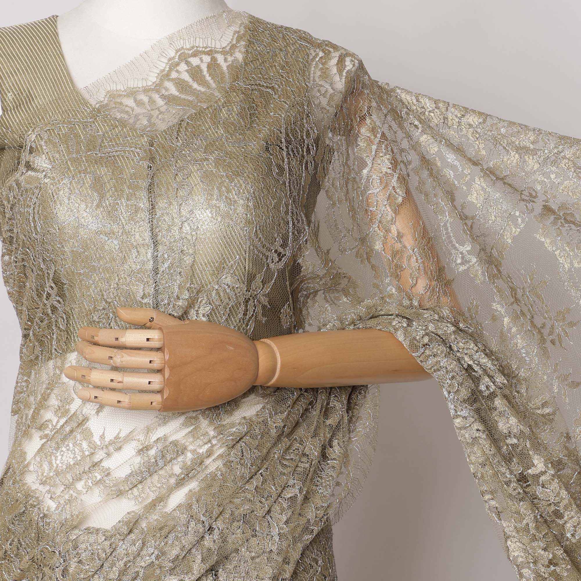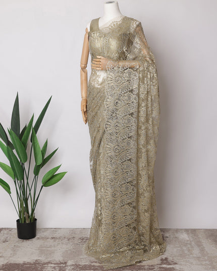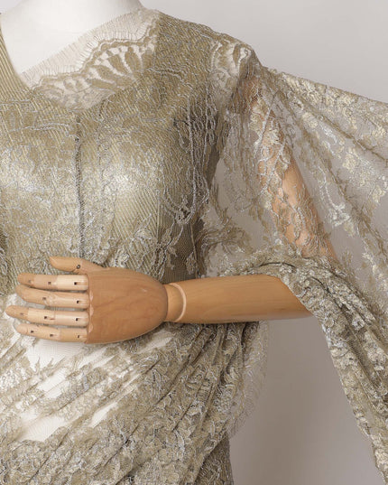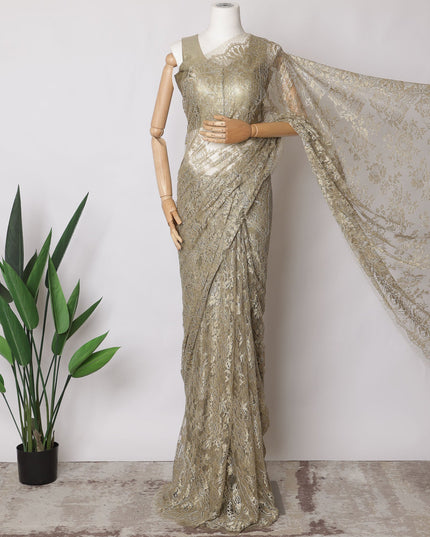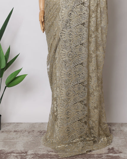 Olive Gold Premium French Metallic Chantilly Saree Lace Fabric, 5.5 MetersX110 Cms-D21517