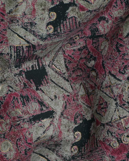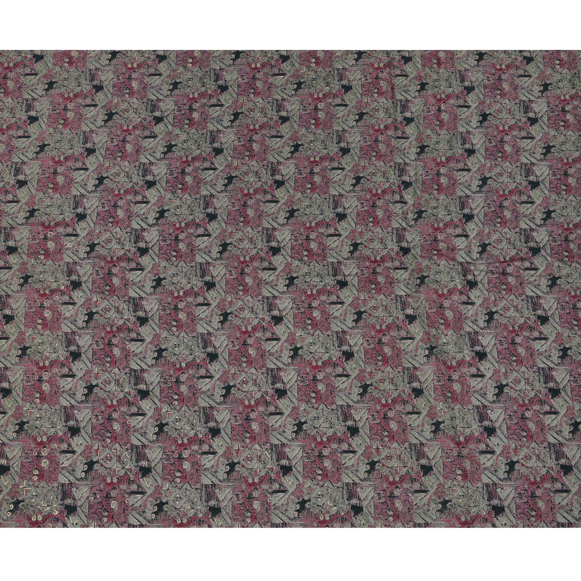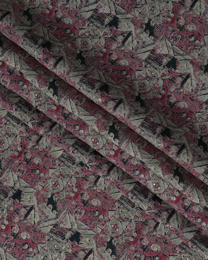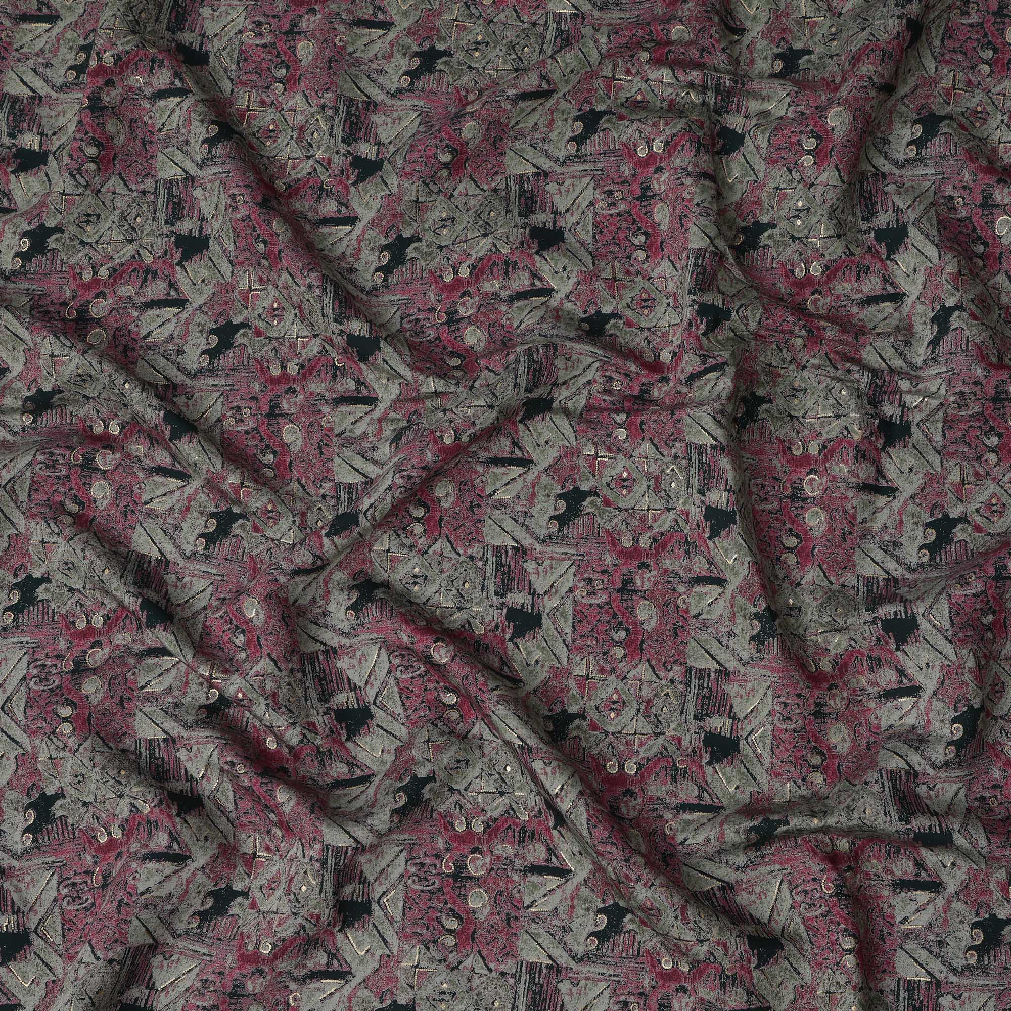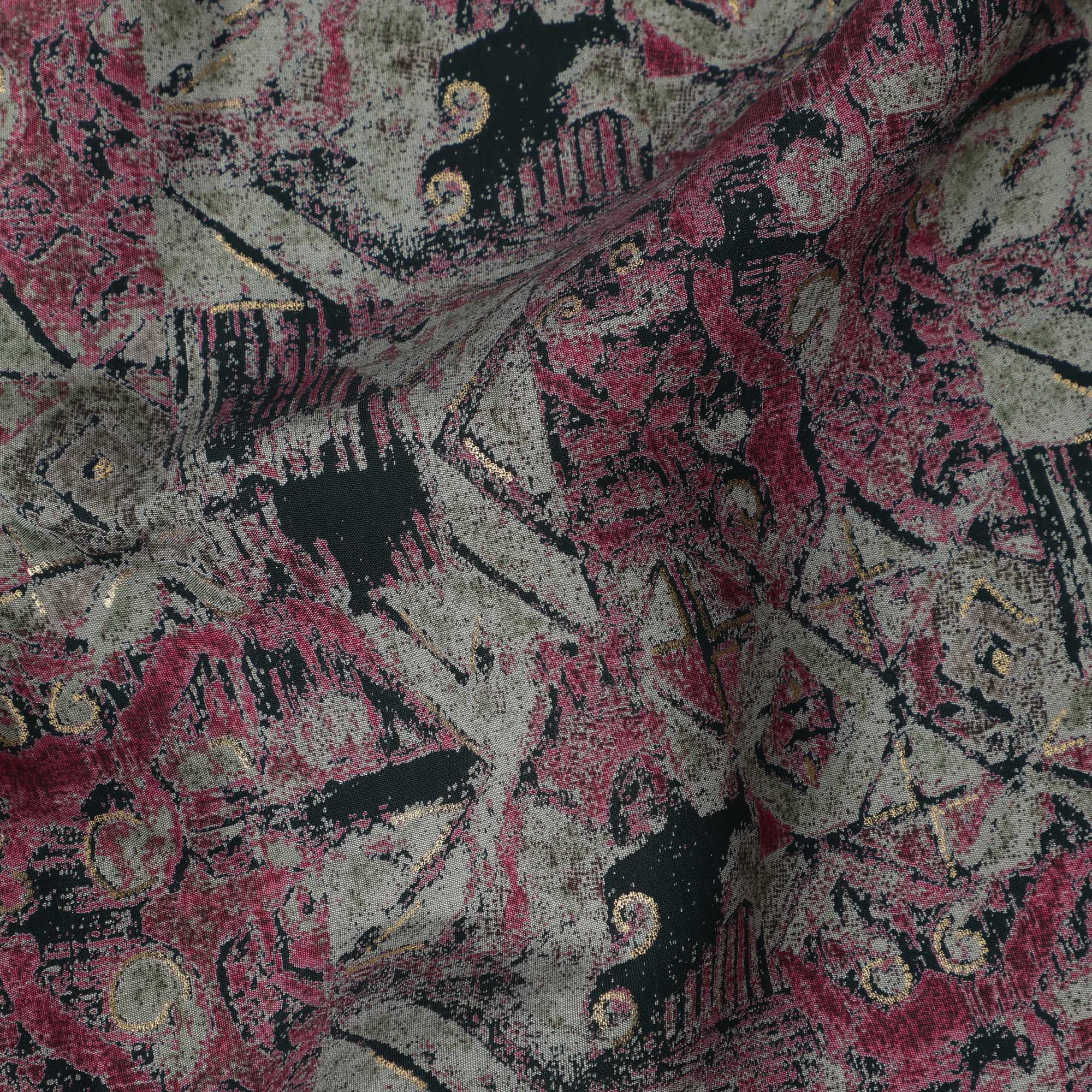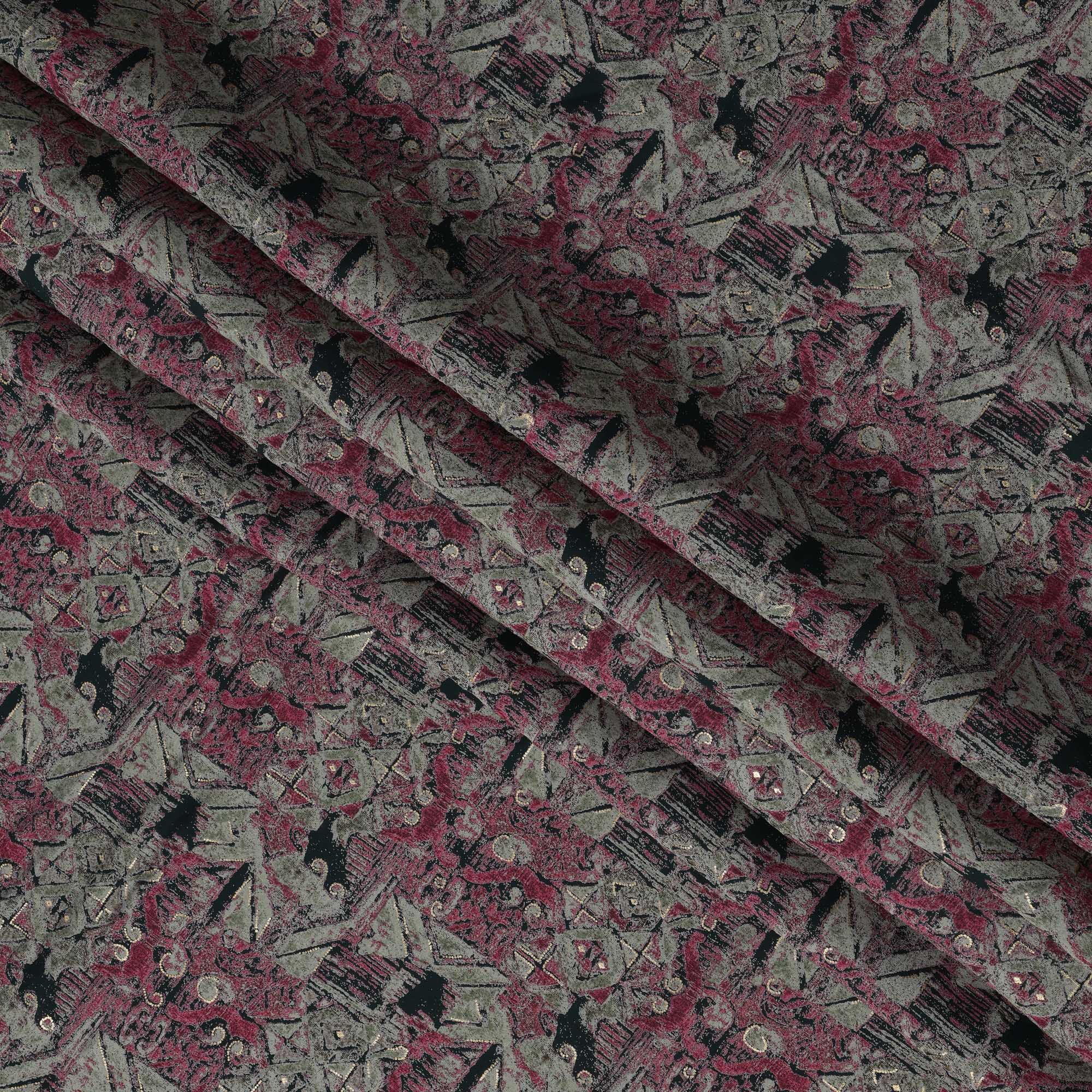 Olive Green and Maroon Geometric Tribal Printed Blended Viscose Fabric with Metallic Highlights, 110 Cms Width, Made in India-D22805