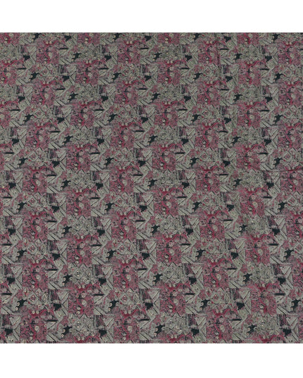 Add an earthy yet artistic edge to your designs with this olive green and maroon blended viscose fabric featuring a... Read more Read more
