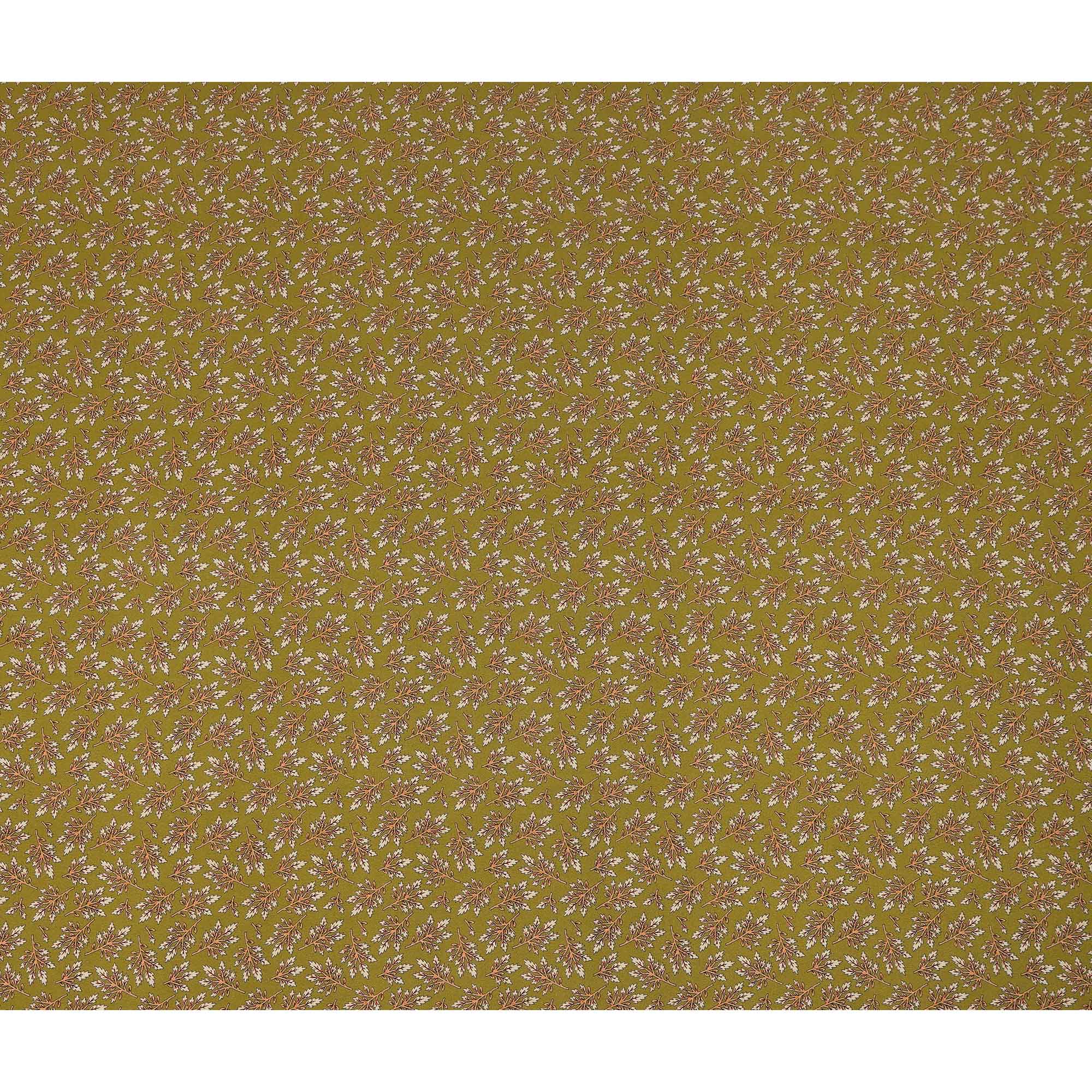 Rich olive green base enhanced with small botanical leaf print for subtle refined appeal