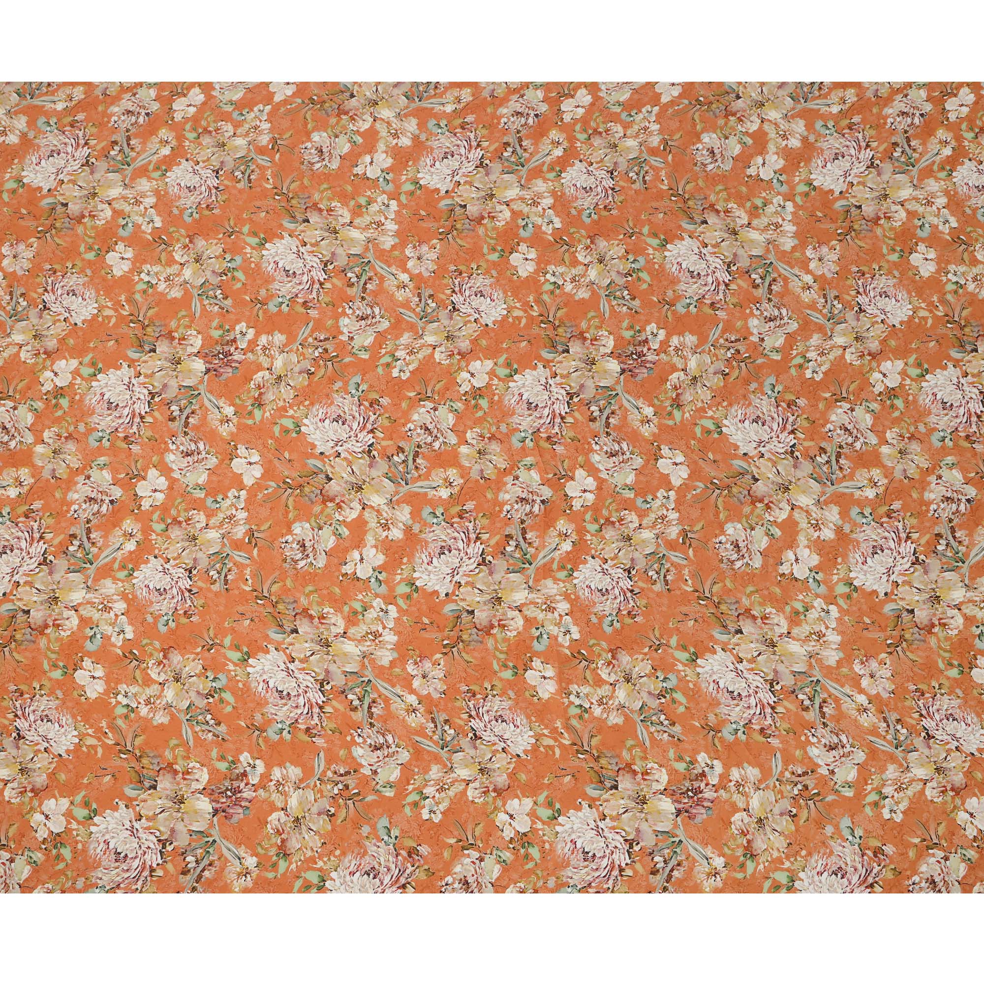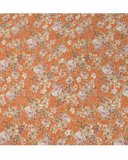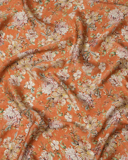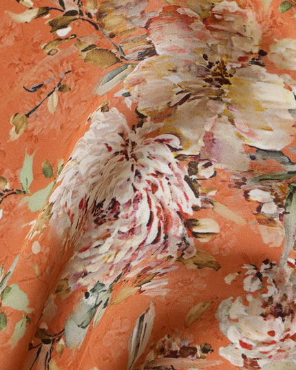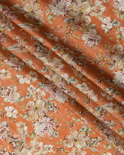 Orange and Multicolor Floral Synthetic Satin Fabric – 110 cm Width, Soft & Lustrous-D21908