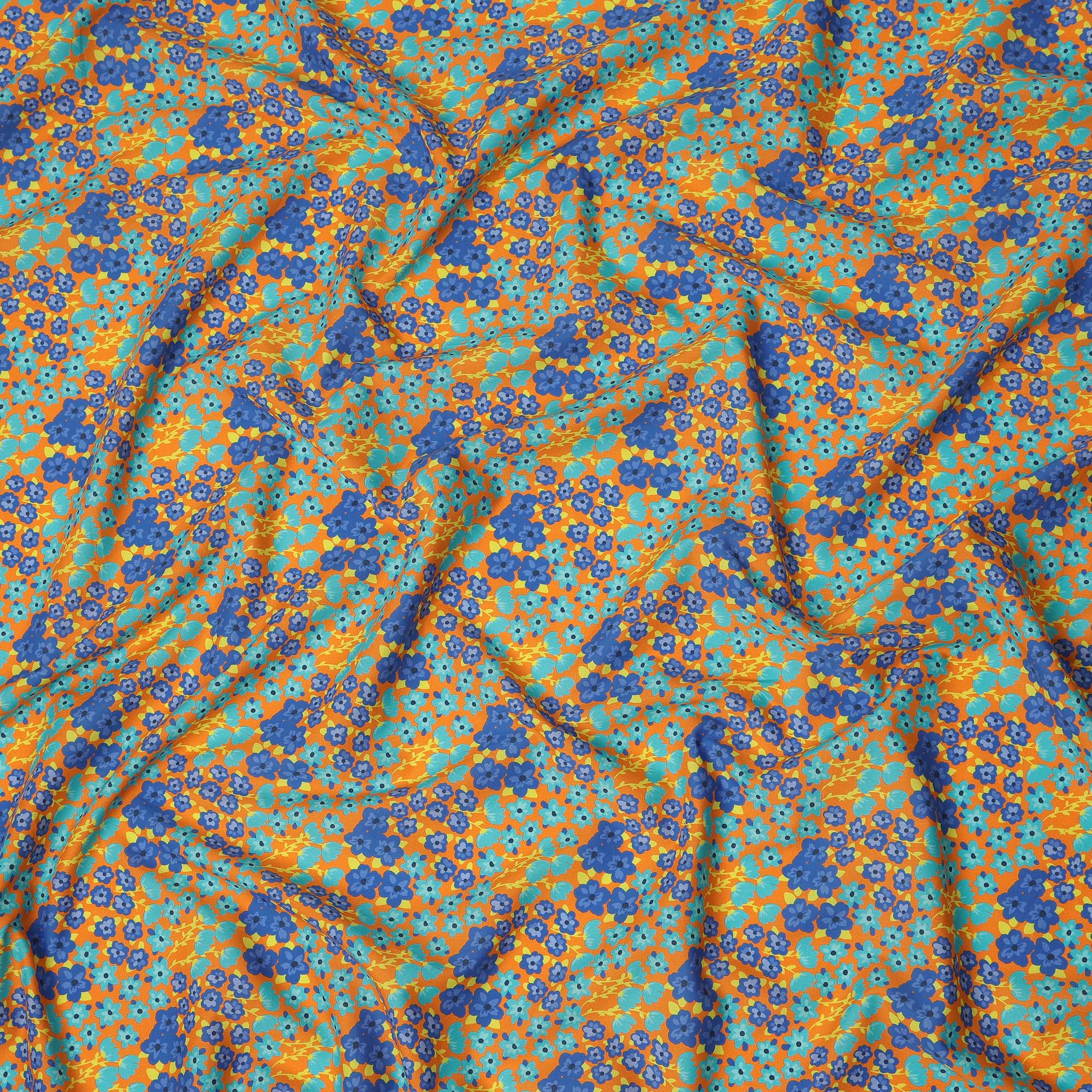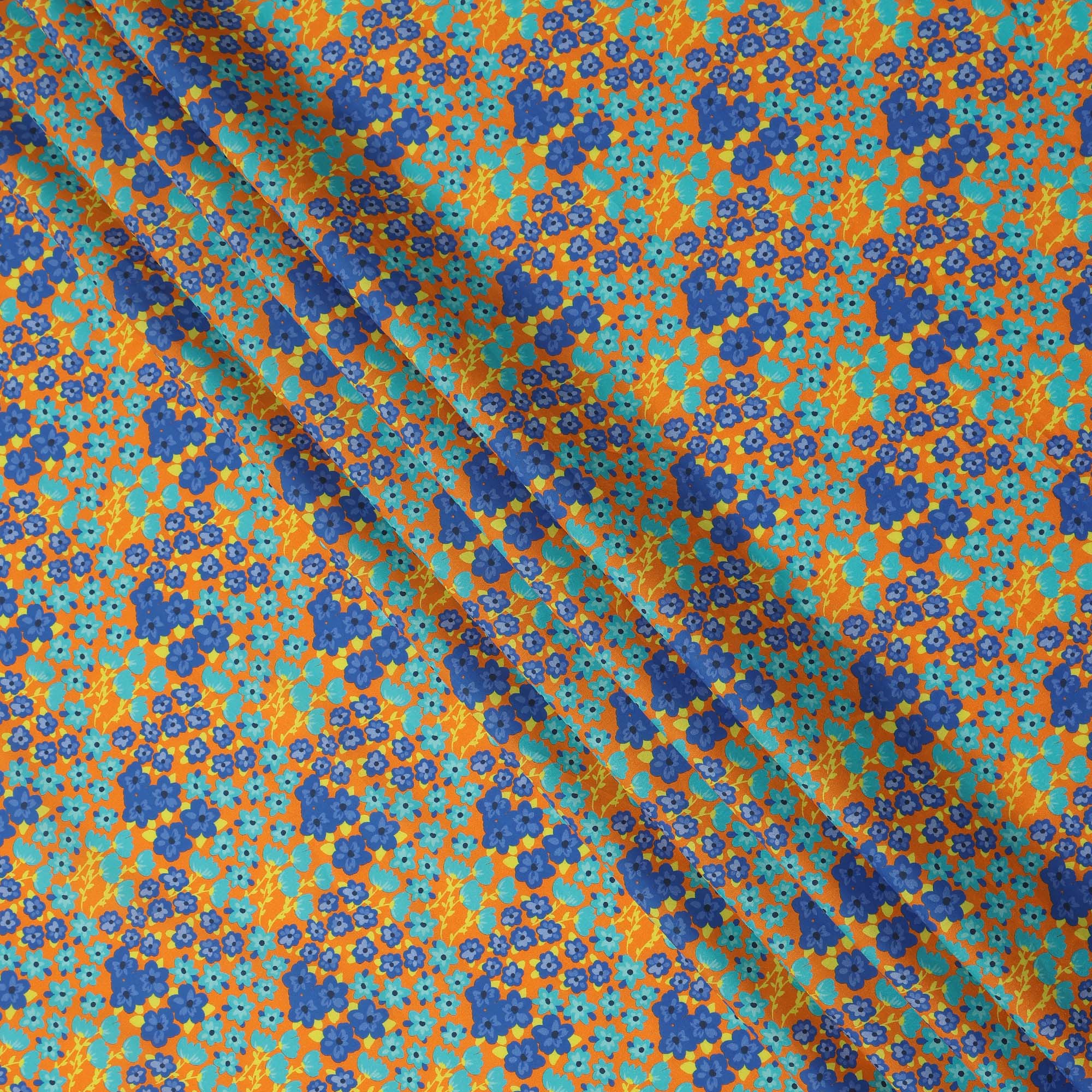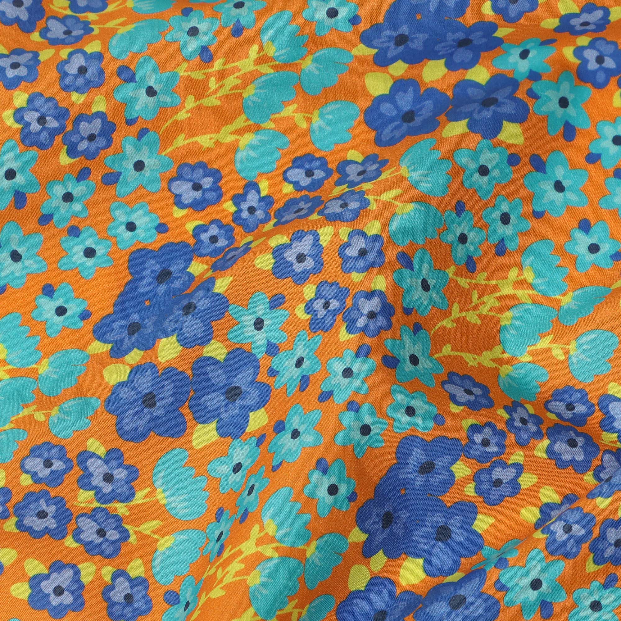 Orange Floral Printed Premium Spanish 100% Cotton Voile Fabric Soft Lightweight Breathable Apparel Craft Textile 150 Cms Wide, Made in Spain-D27497