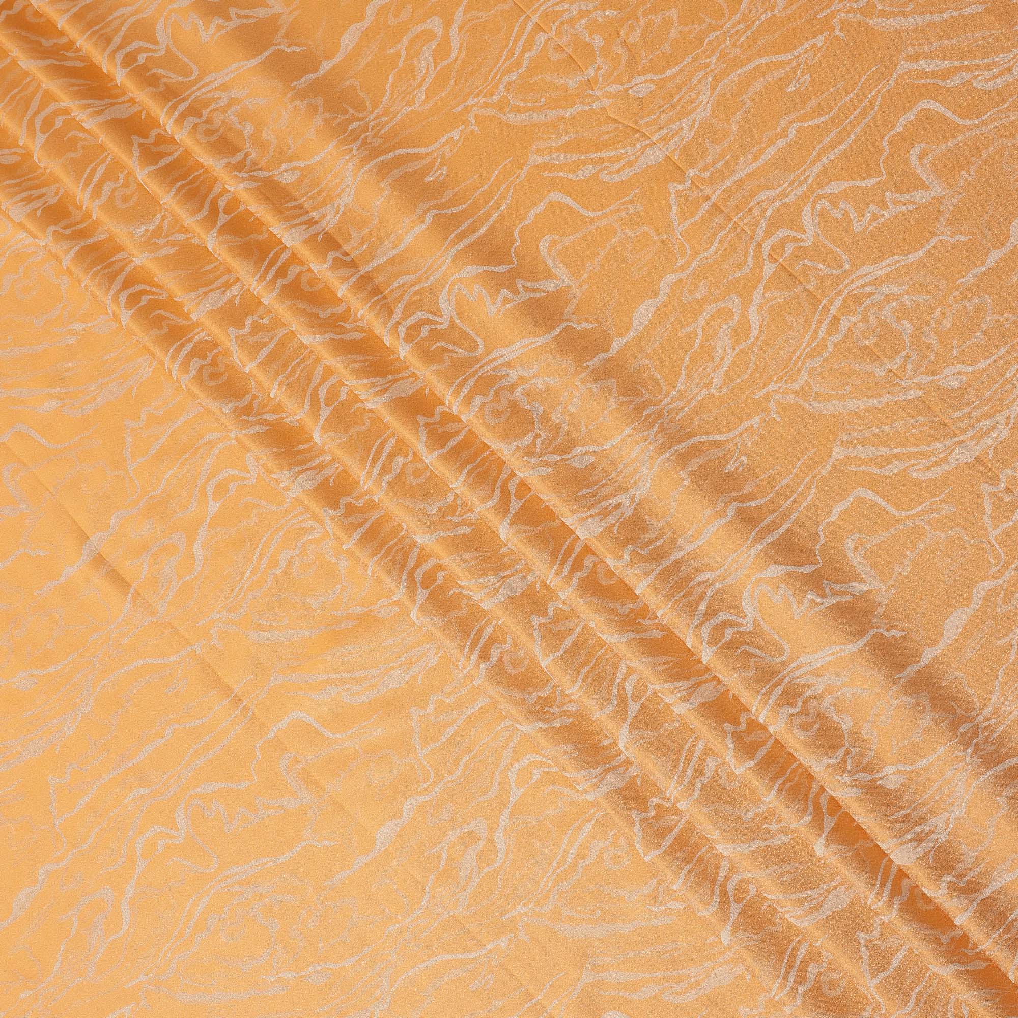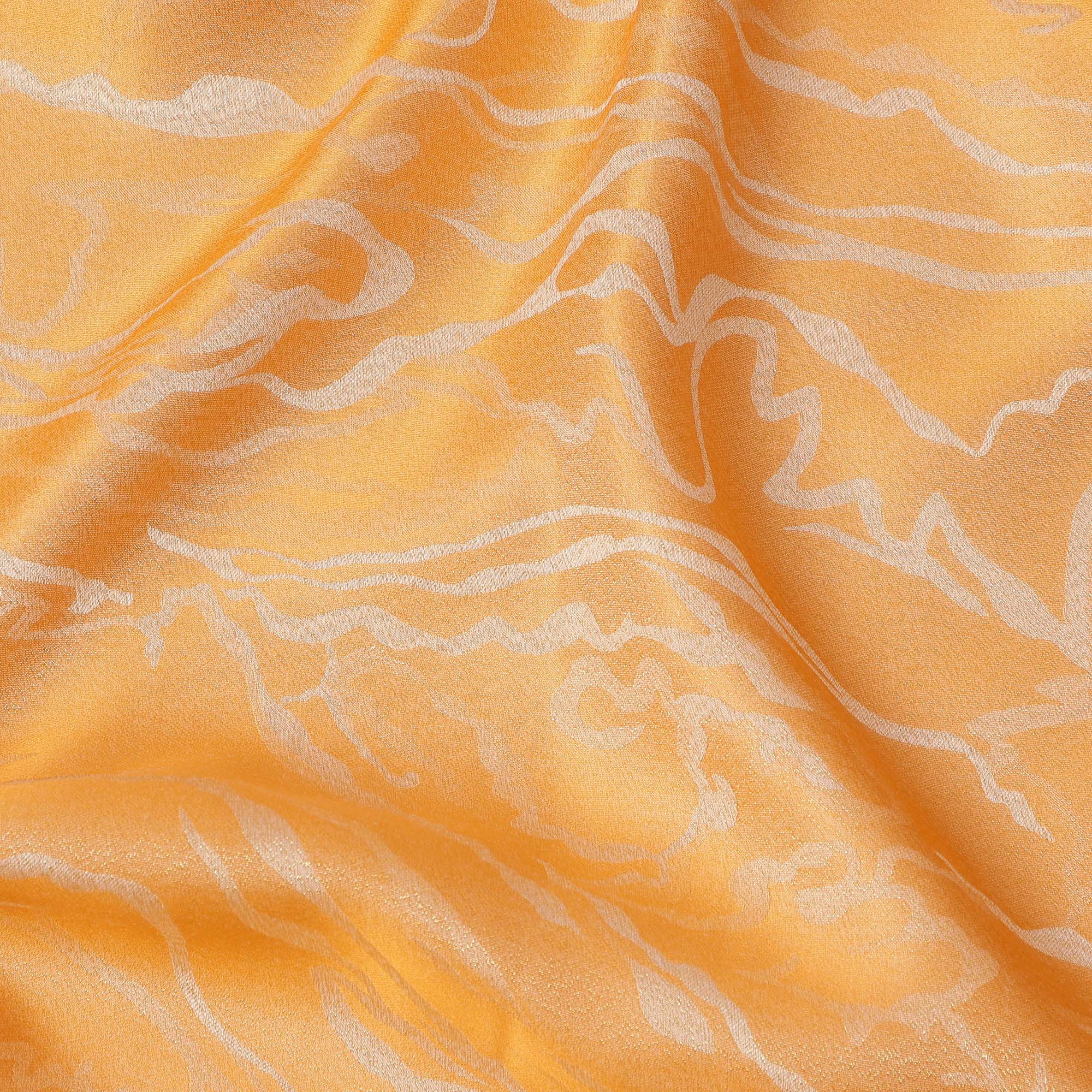 Orange Pure Silk Satin Fabric with Abstract Metallic Design, 140 Cms Width, South Korea-D25346