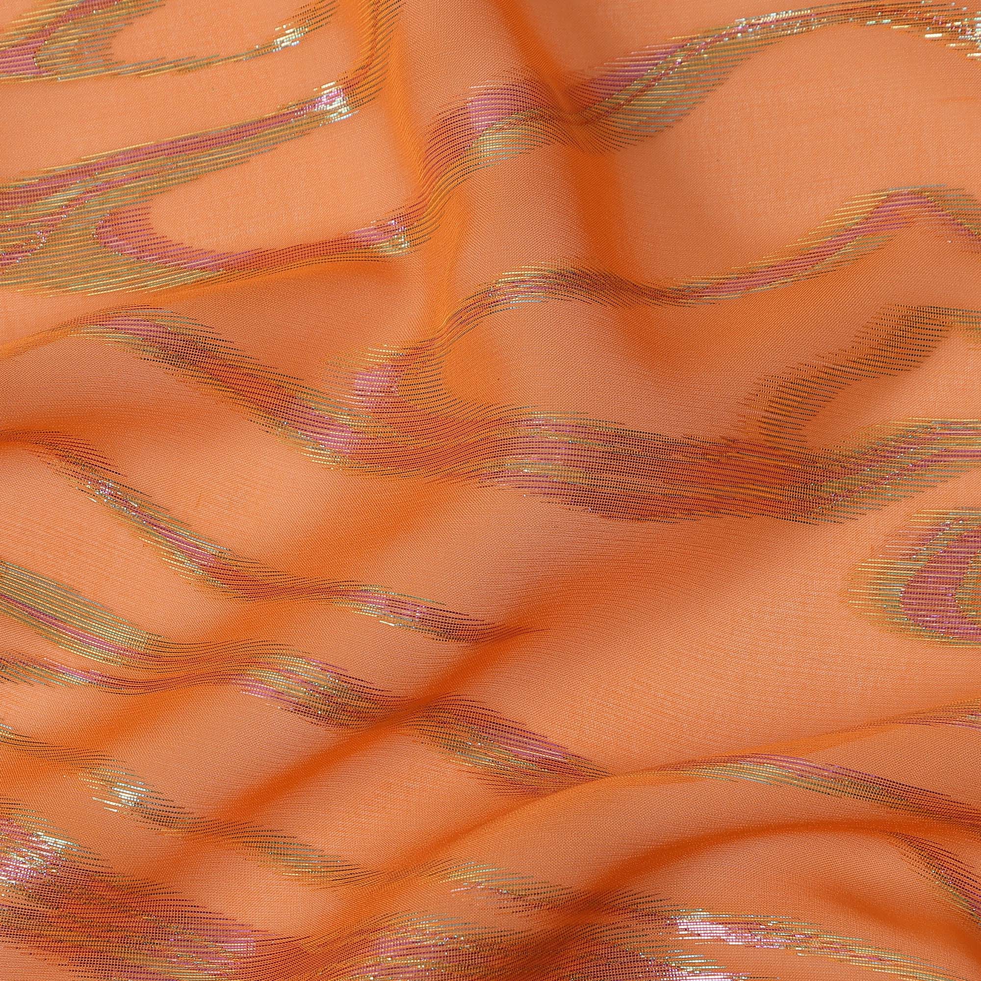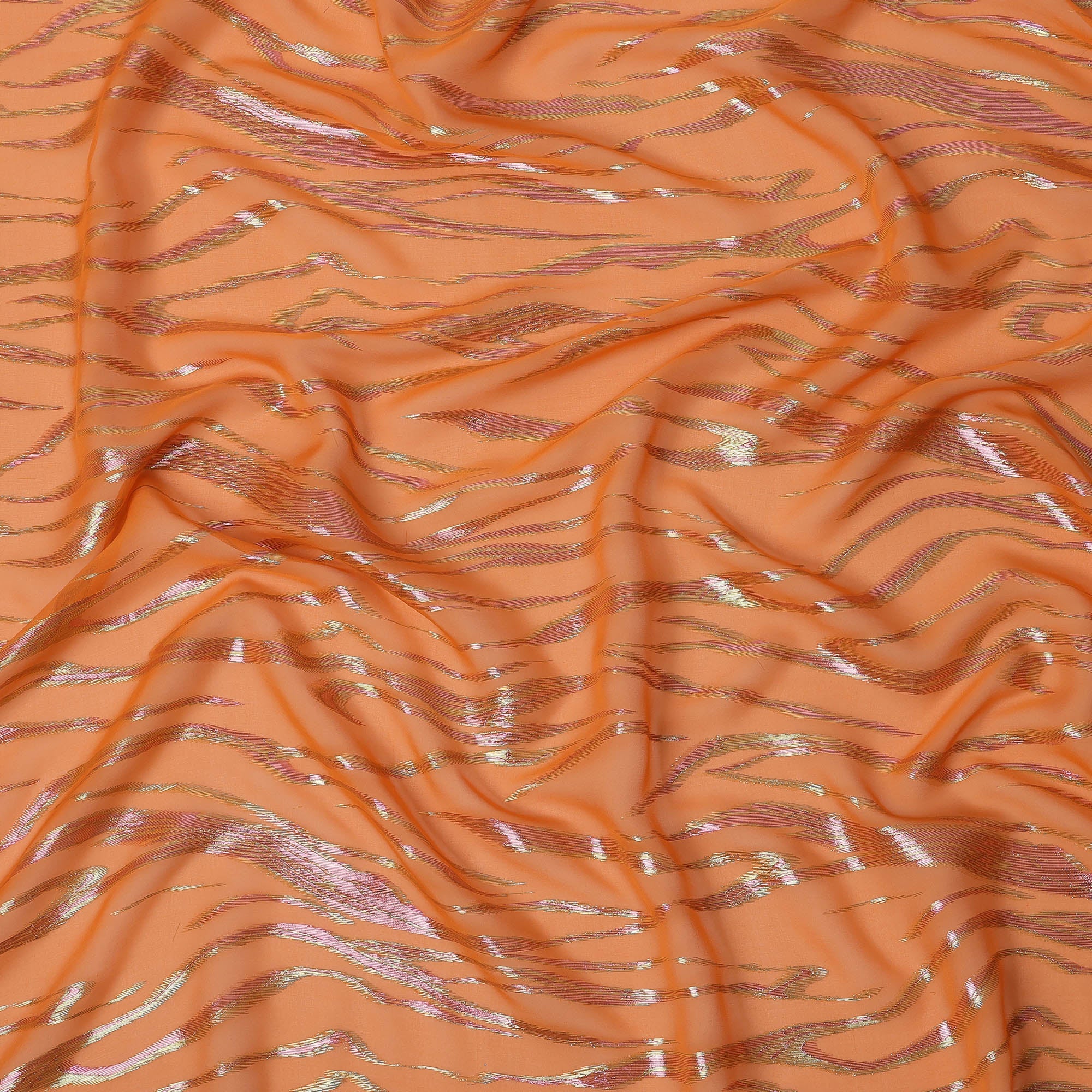 Orange Wave Pattern Silk Chiffon Fabric with Metallic Lurex, 110 Cms, South Korea-D25491