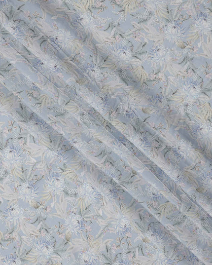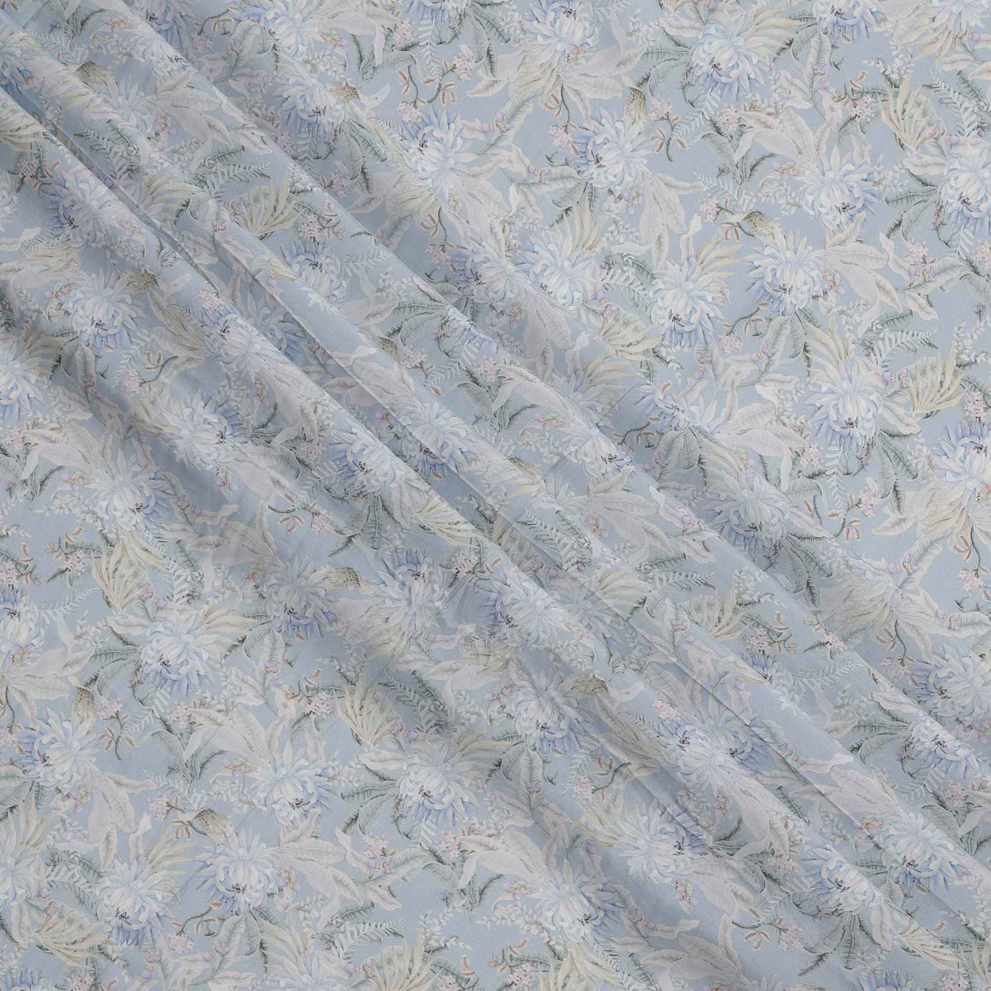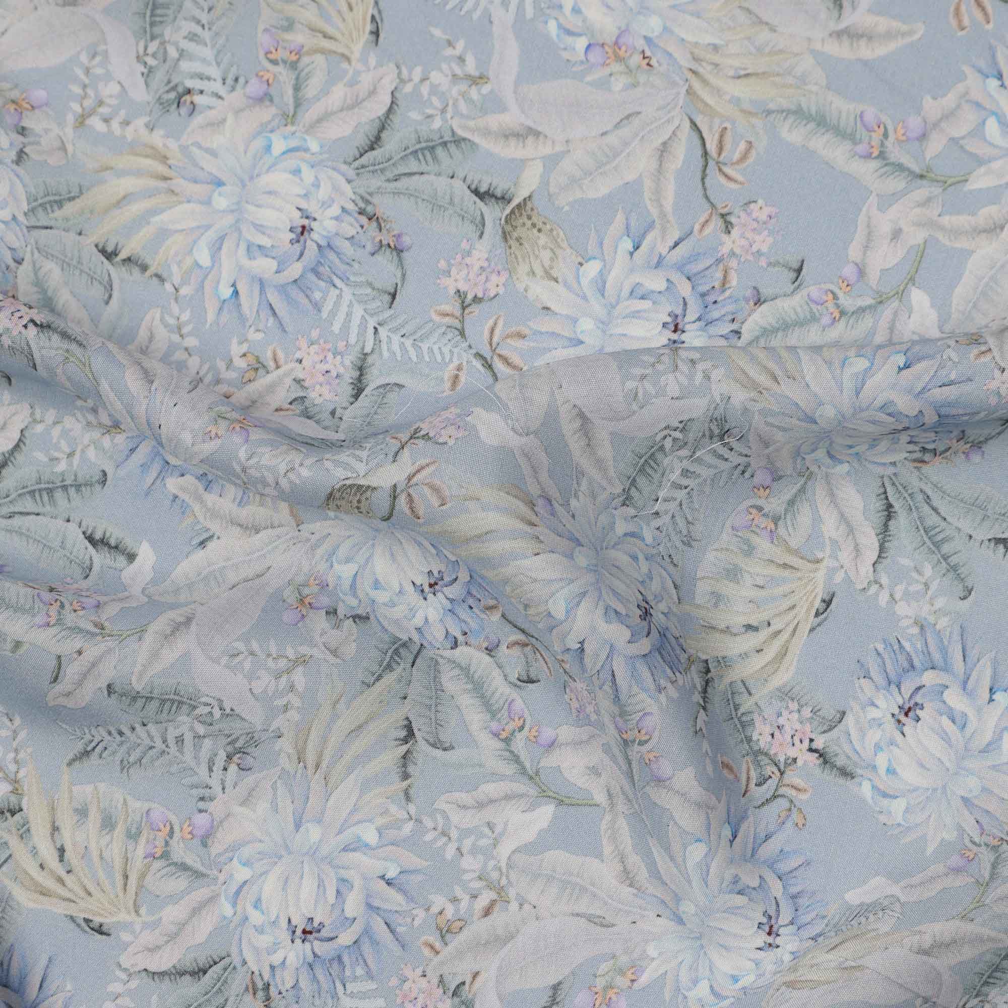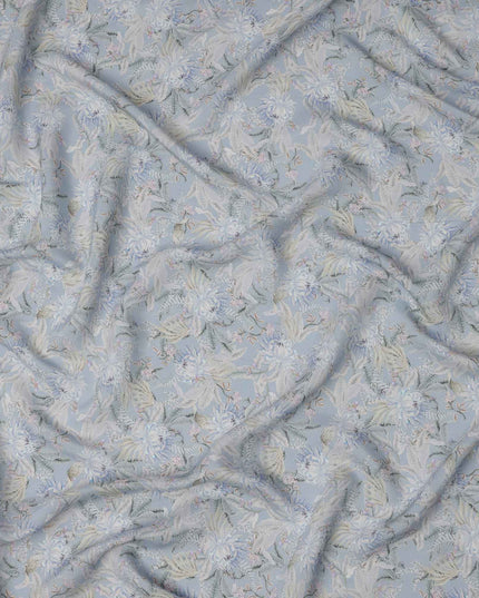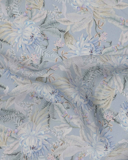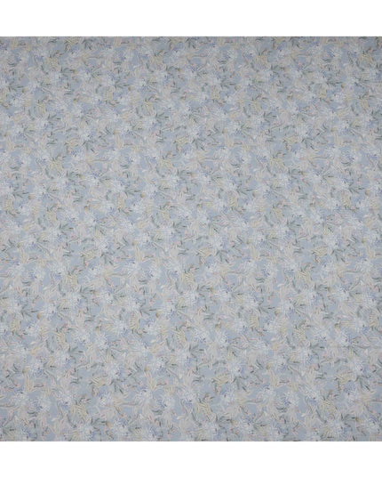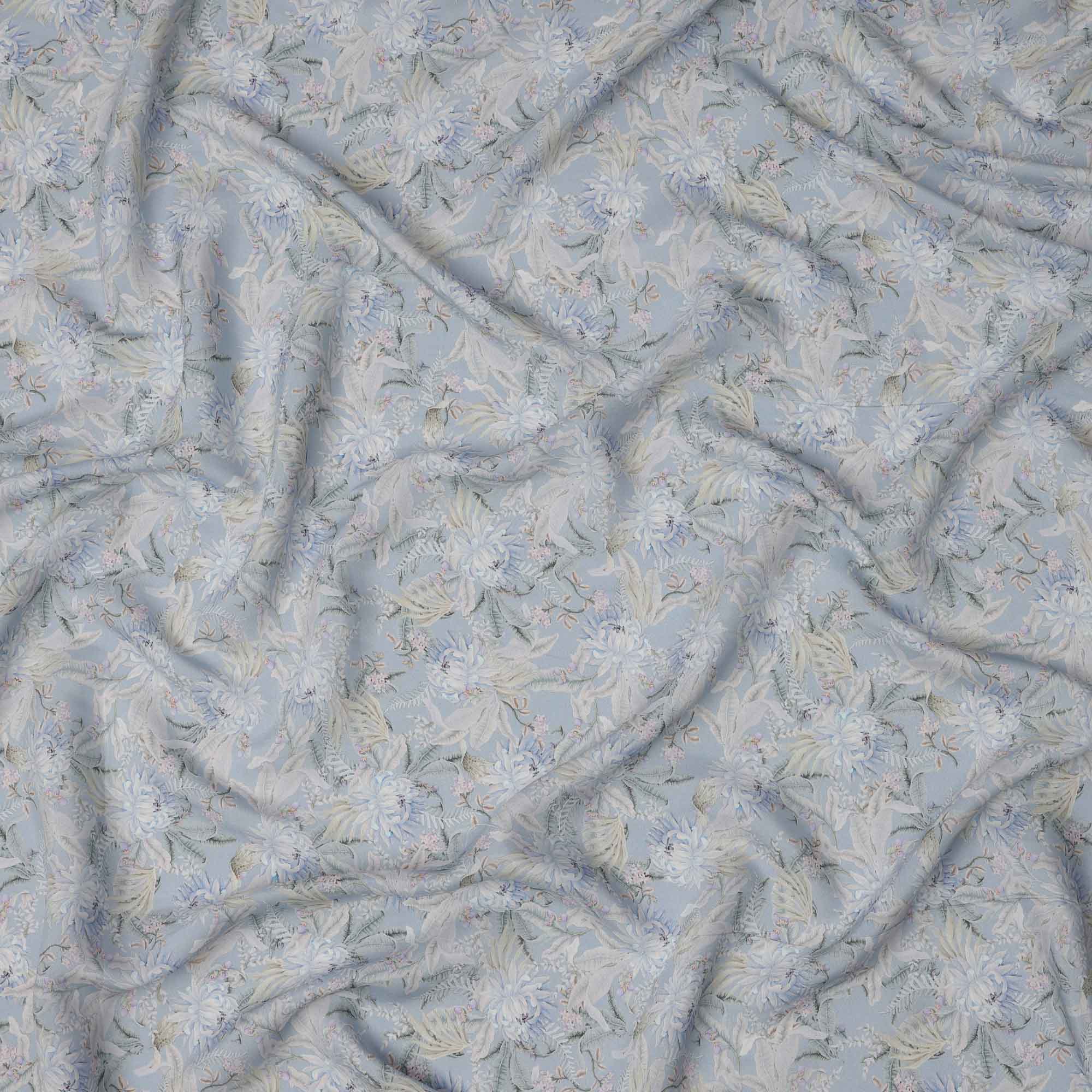 Pastel Blue Soft Floral All Over Print Viscose Crepe Fabric, 110 Cms, India-D23478