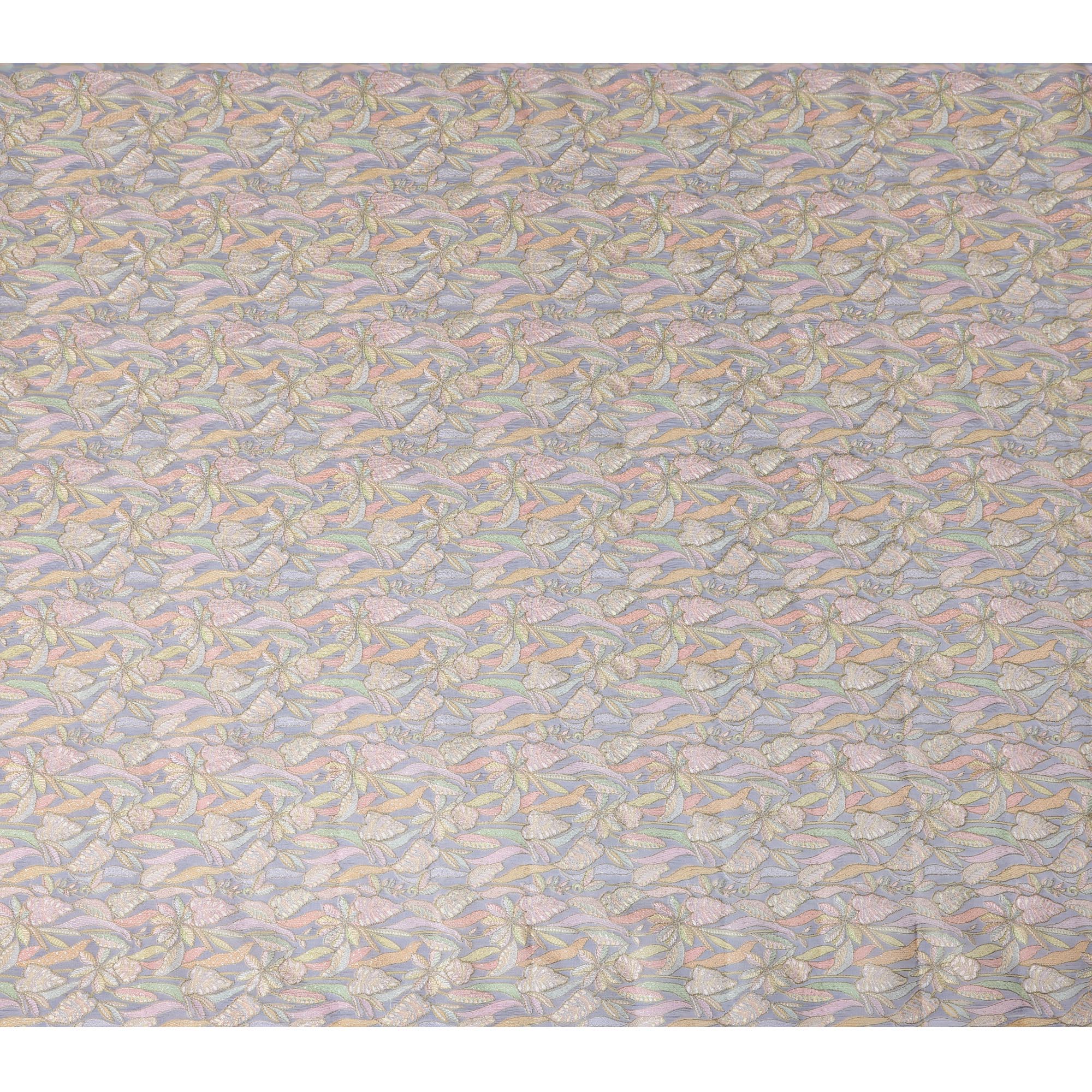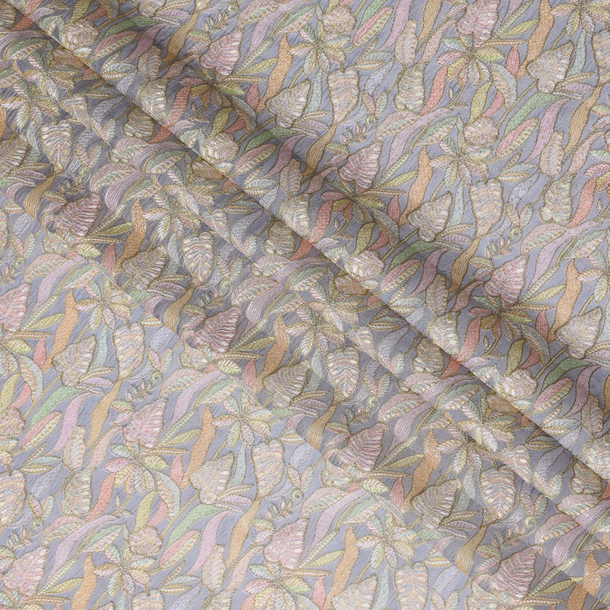 This exquisite pastel grey tussar silk fabric from India is adorned with delicate embroidered floral patterns in soft shades of... Read more Read more