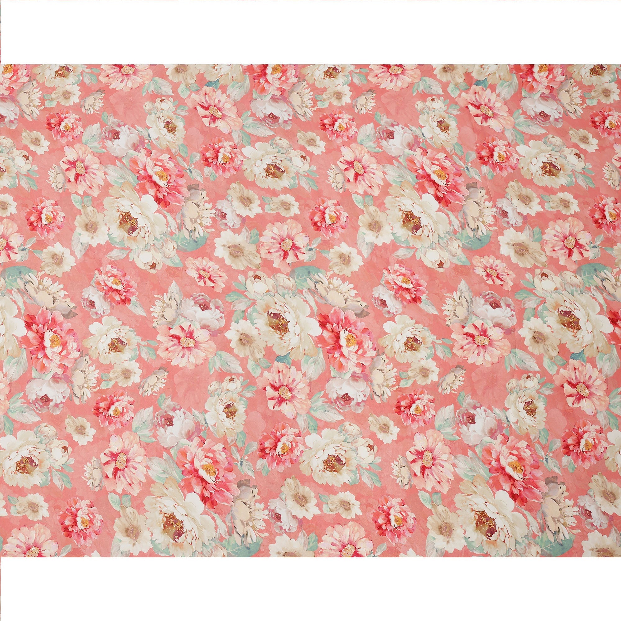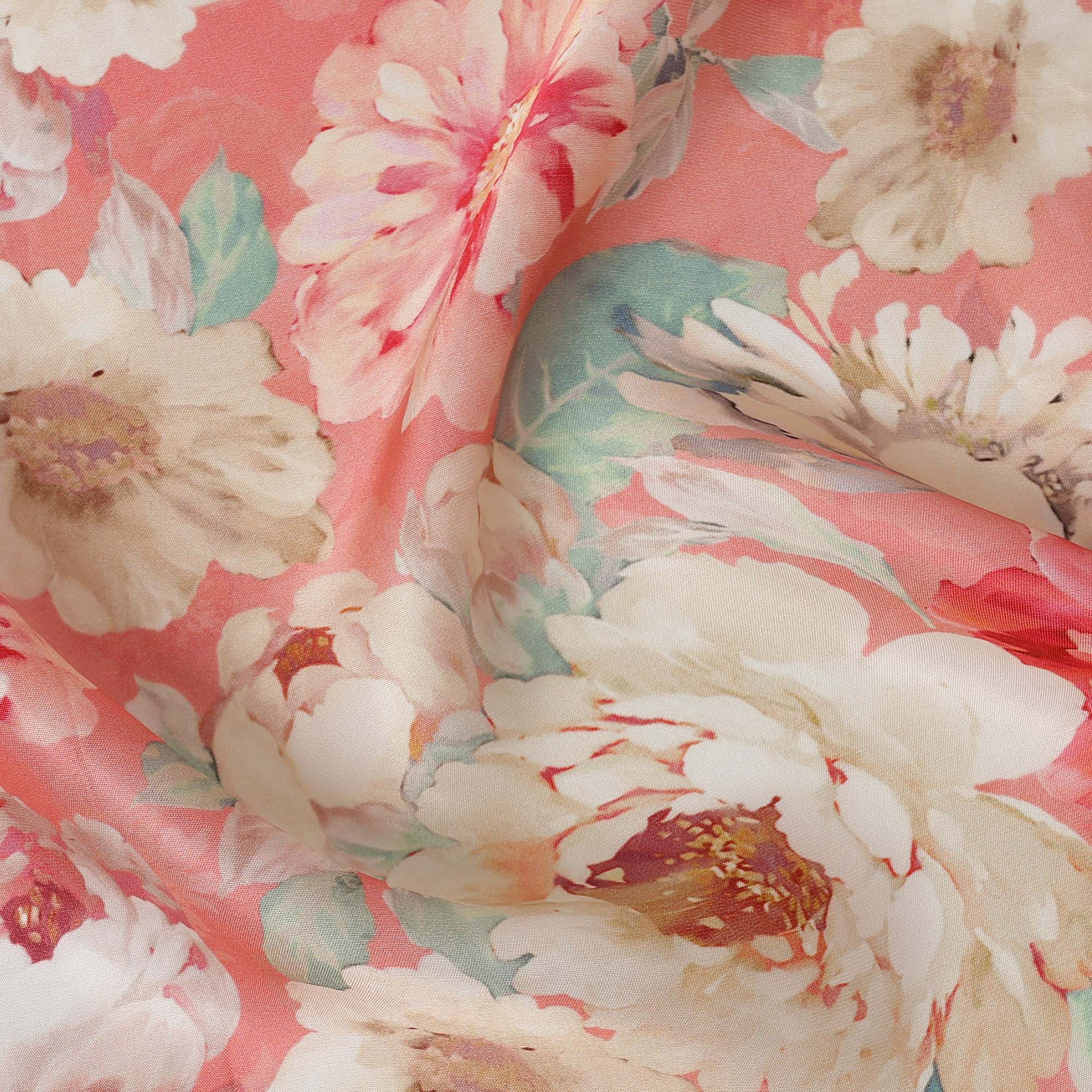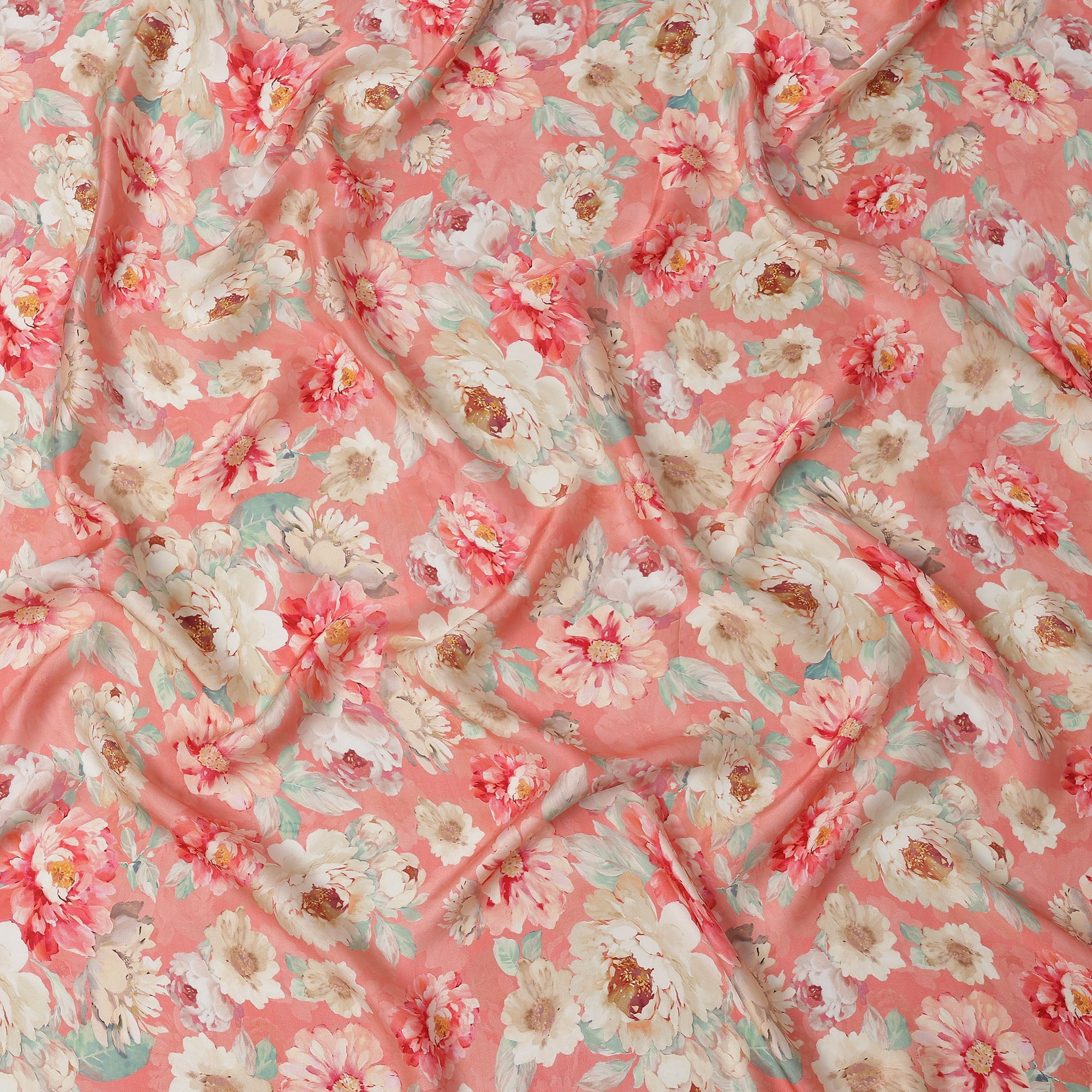 Peach and White Floral Printed Viscose Modal Satin Fabric, 110 Cms Width, Made in India-D26254