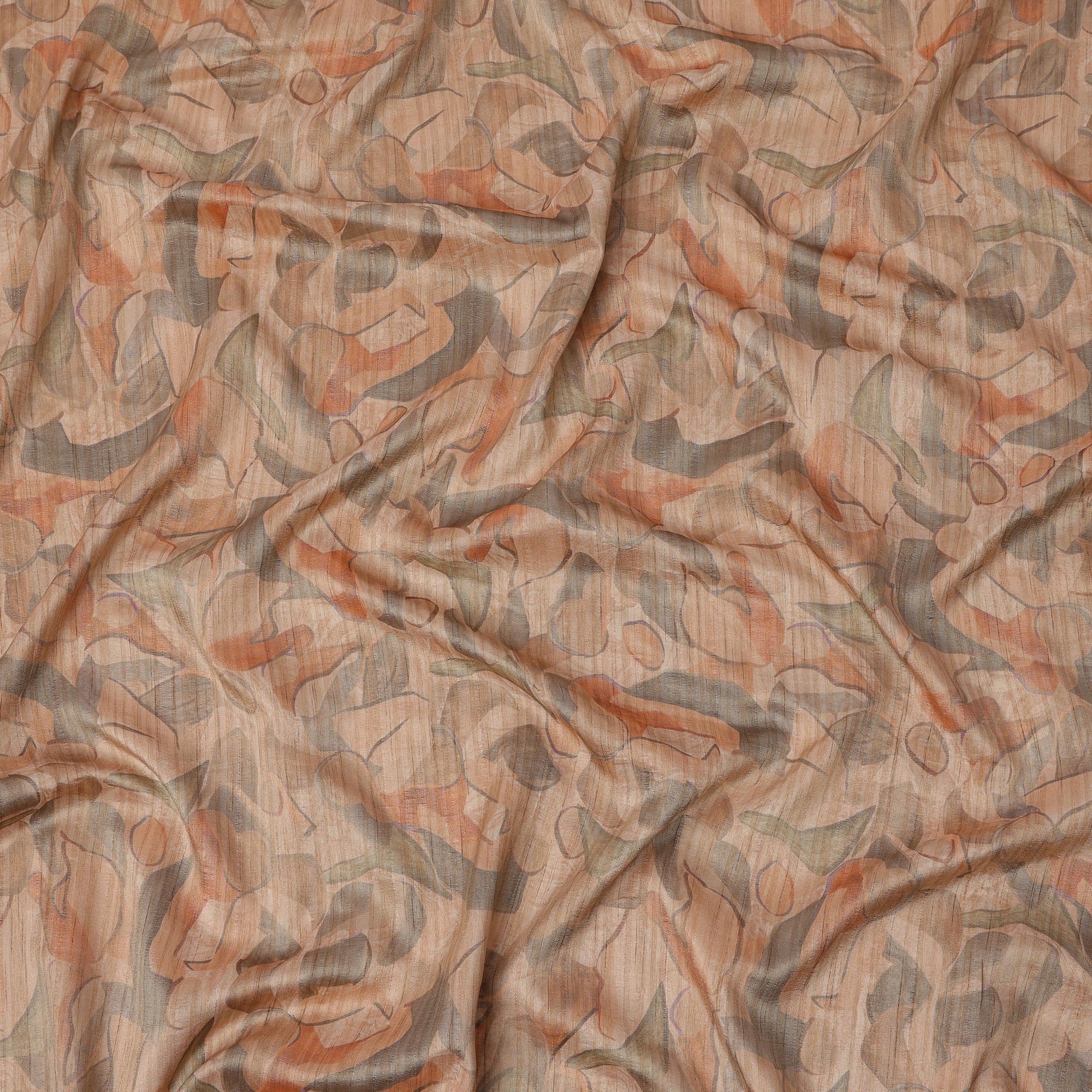 A celebration of creativity and comfort, this peach base viscose tussar fabric features an abstract multi-colored print rendered in earthy... Read more Read more