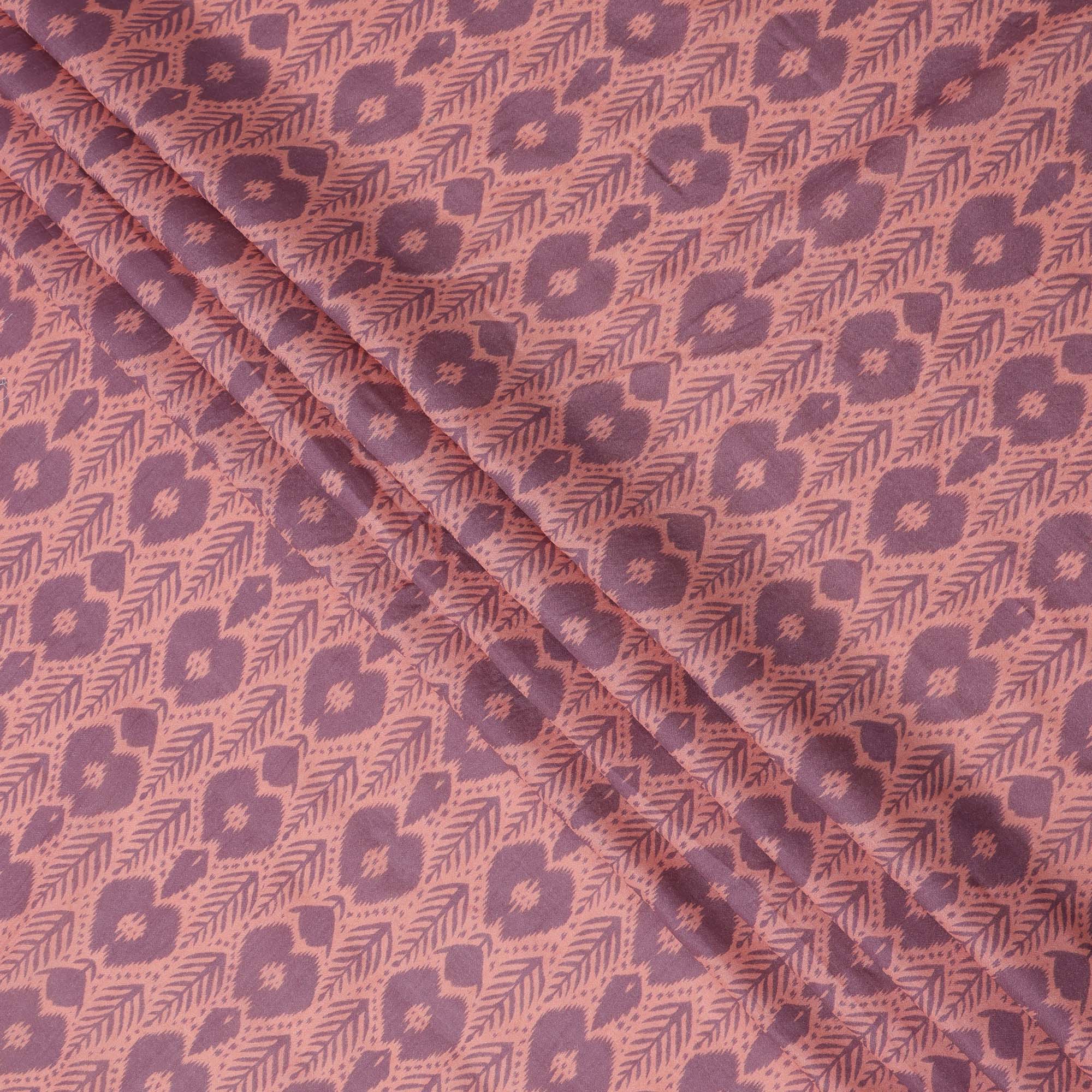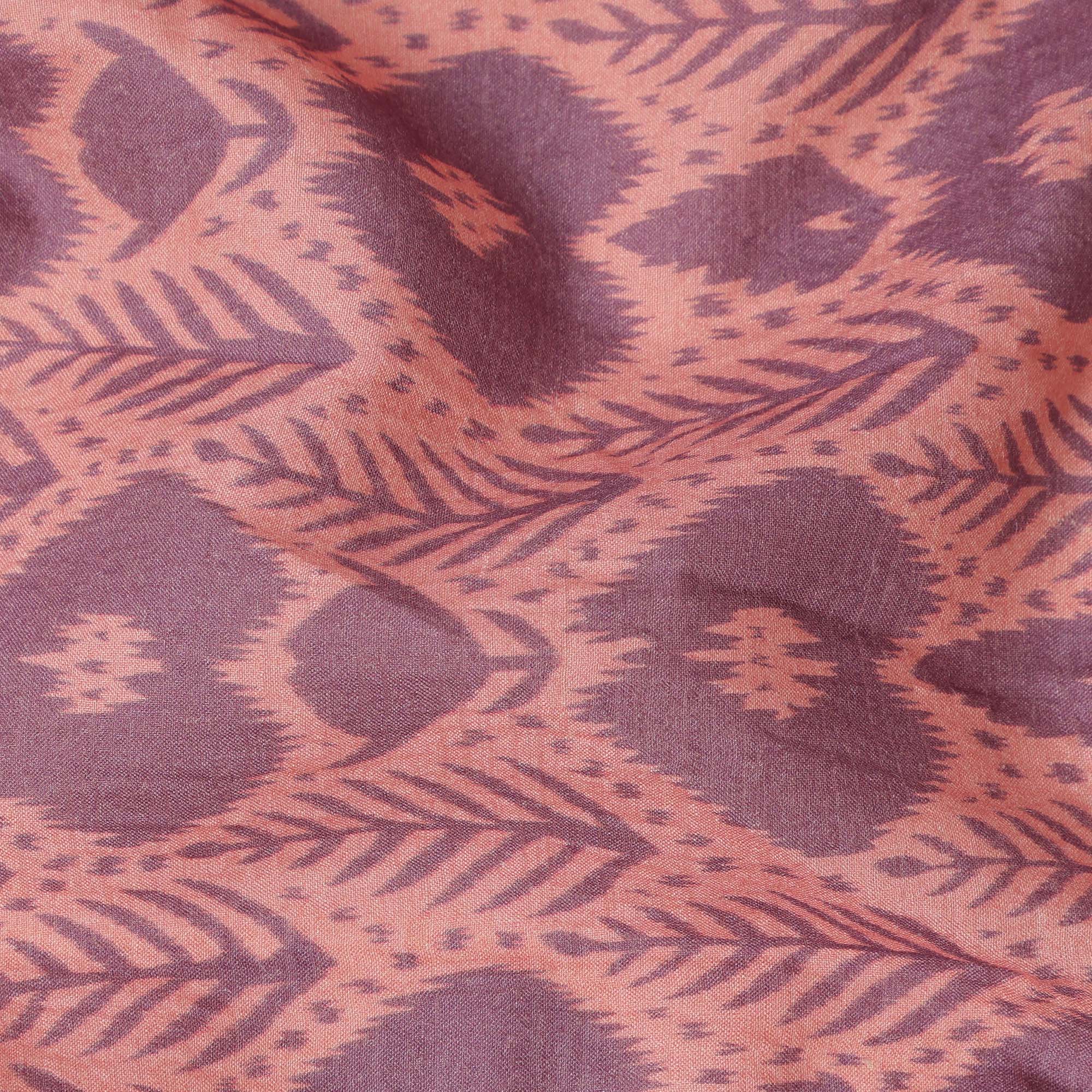 Peach Base Mauve Ikat Inspired Geometric Printed Cotton Lawn Fabric, 110 Cms Width, Made in India-D23956