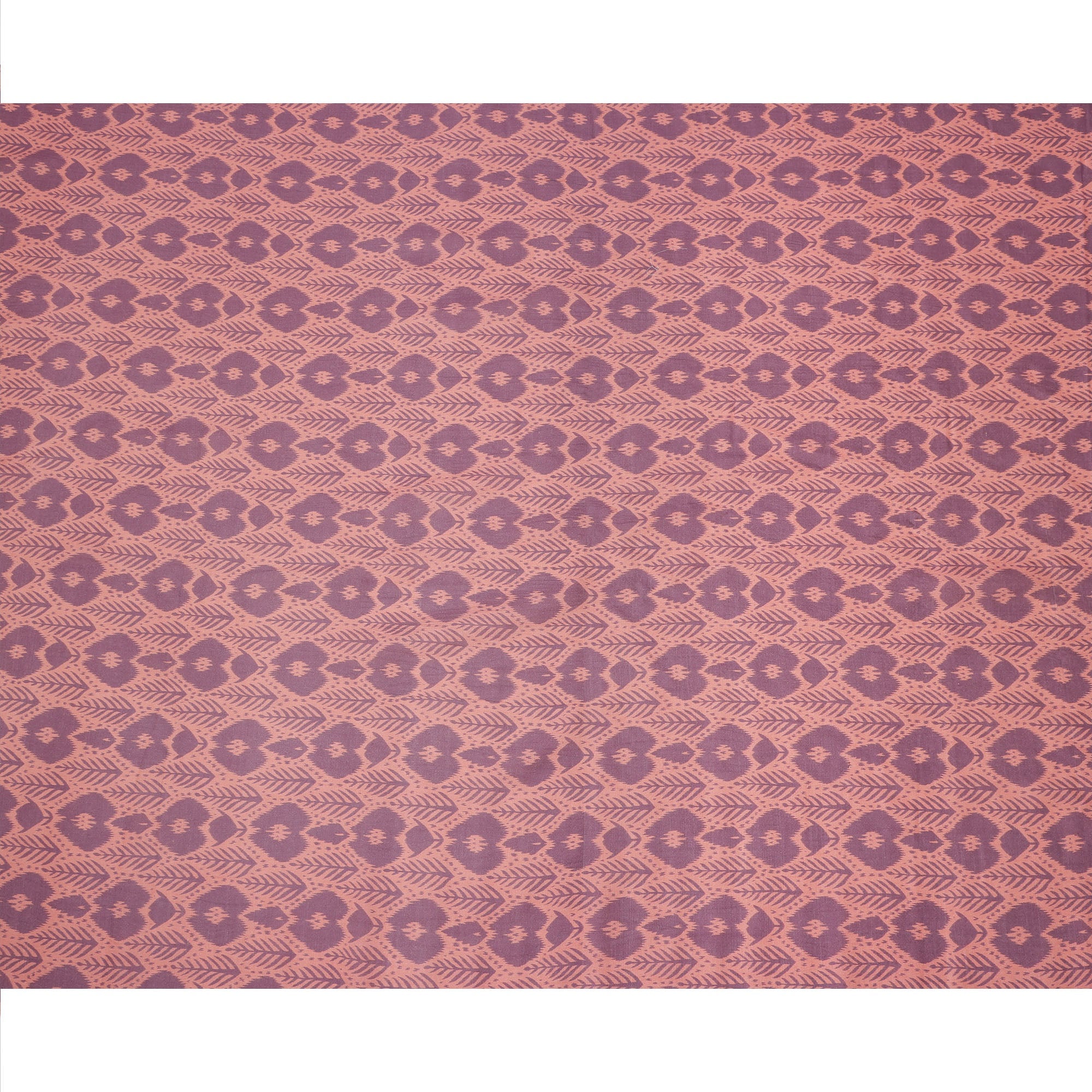 Peach base with rhythmic mauve ikat-style geometric motifs for a heritage-inspired look