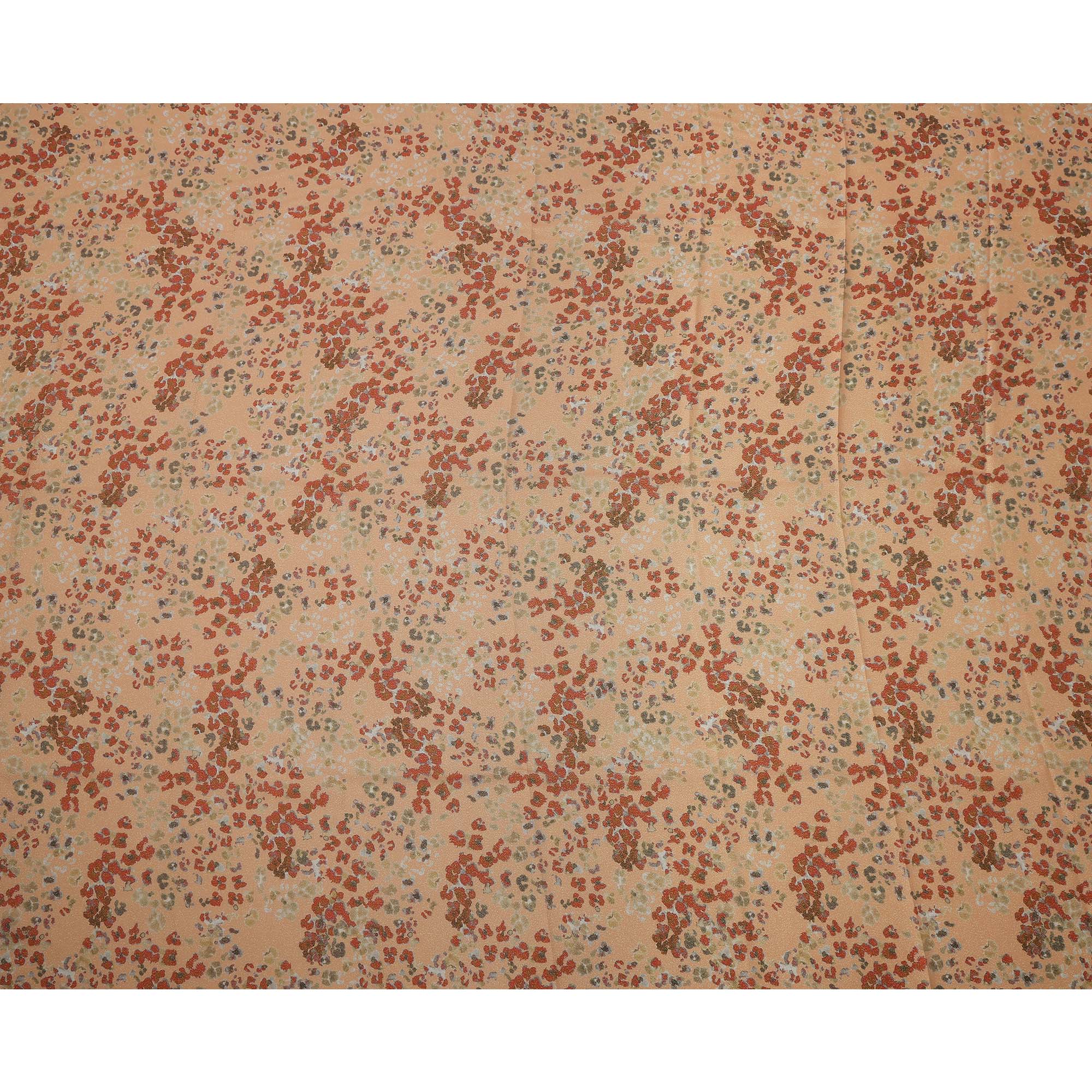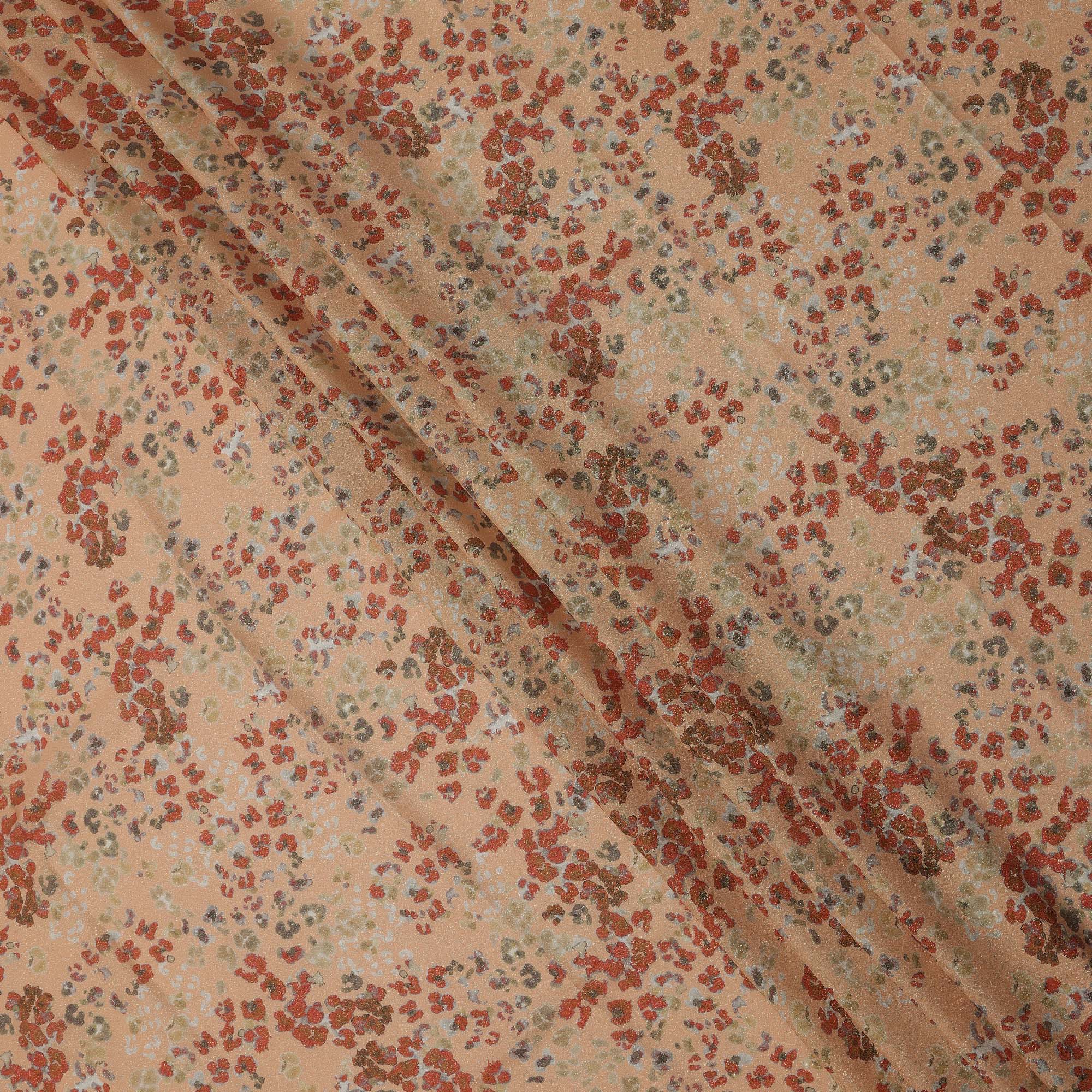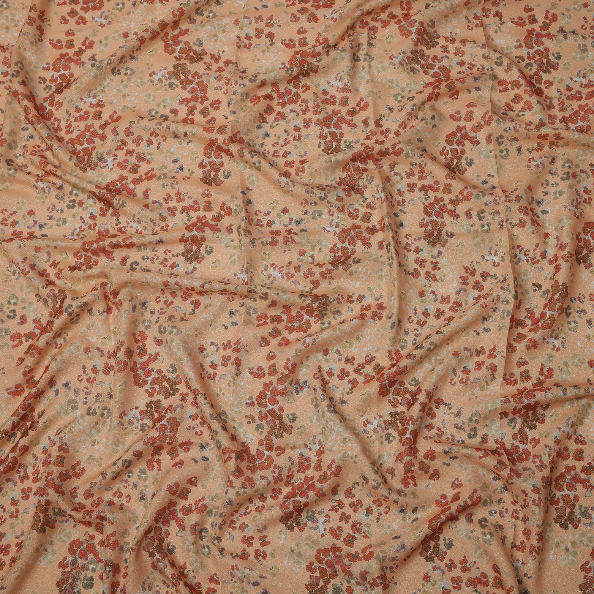Peach Base Multicolor Abstract Floral Printed Pure Silk Satin Fabric 140 Cms Width Made in South Korea-D24923