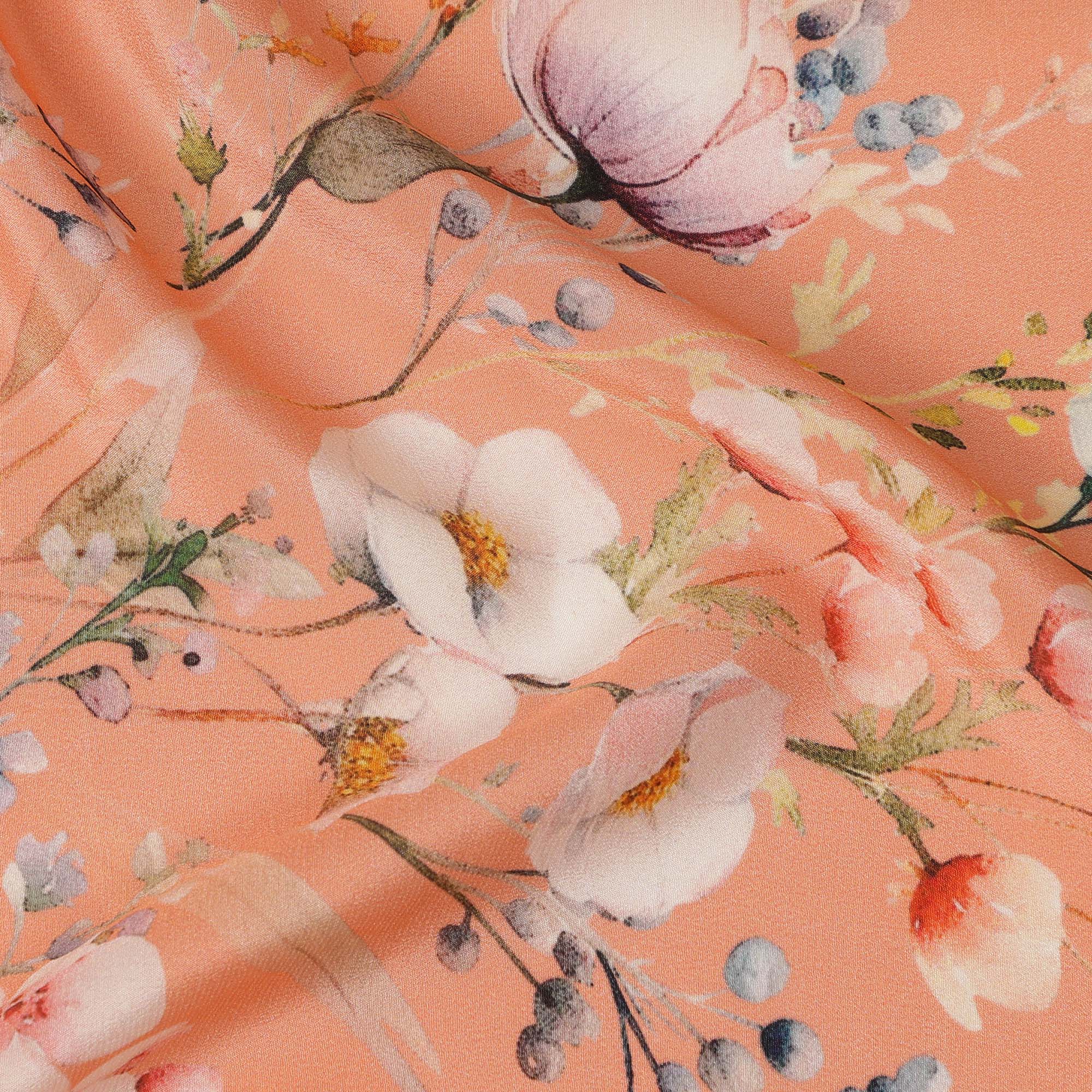 Buy online for premium peach floral silk crepe with artistic flair