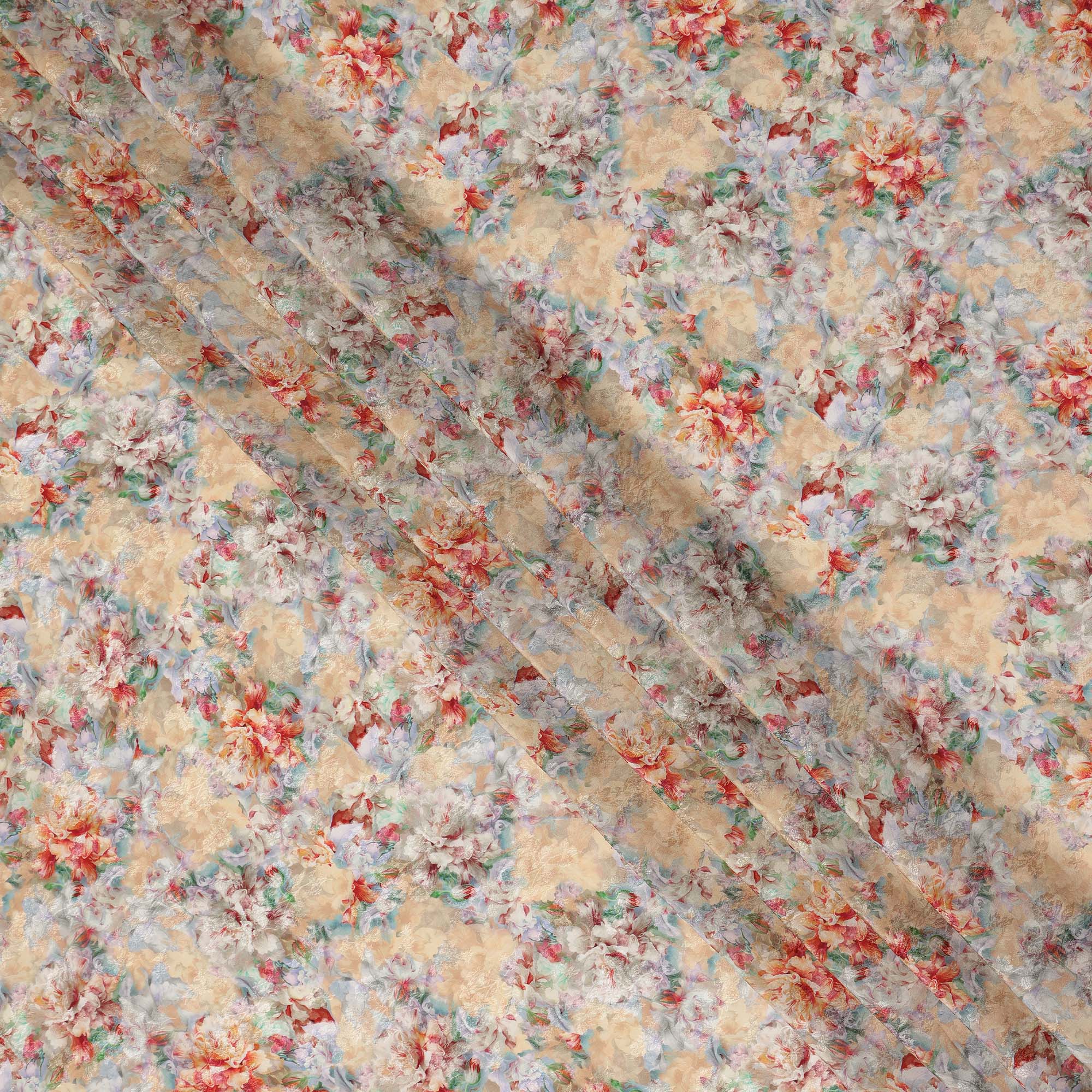 Peach Beige Floral Printed Viscose Fabric 110 Cms India Origin-D27550