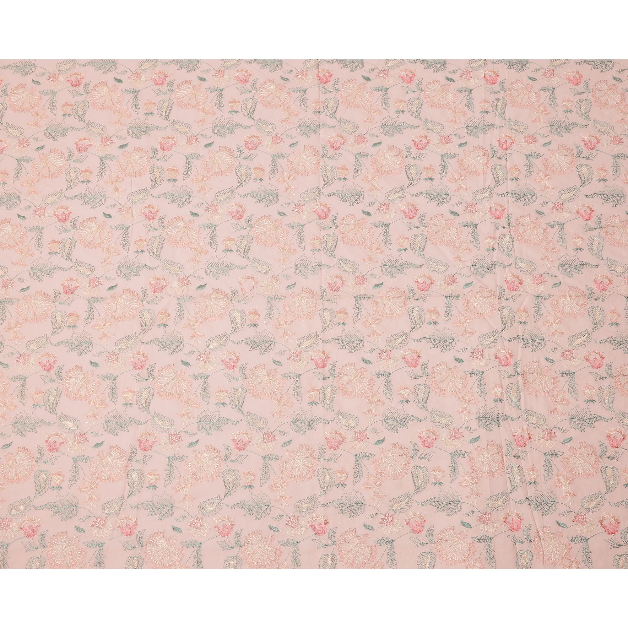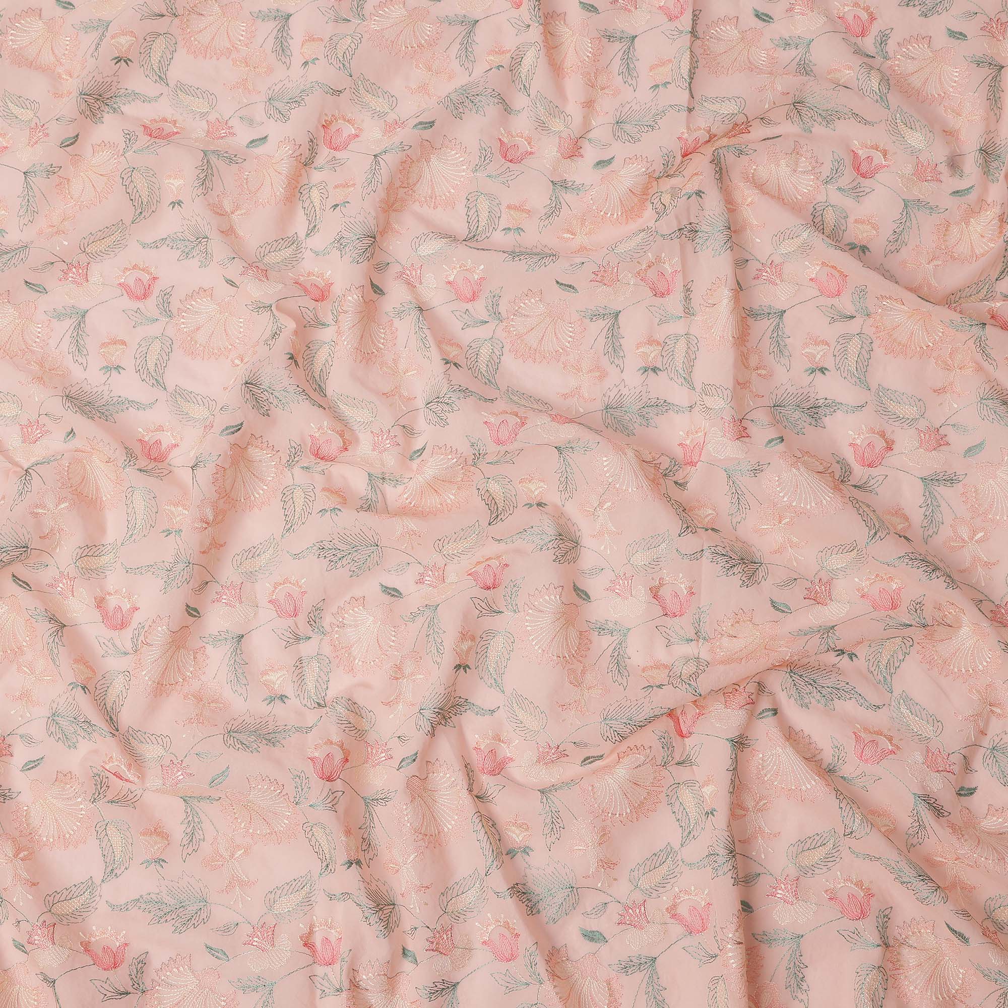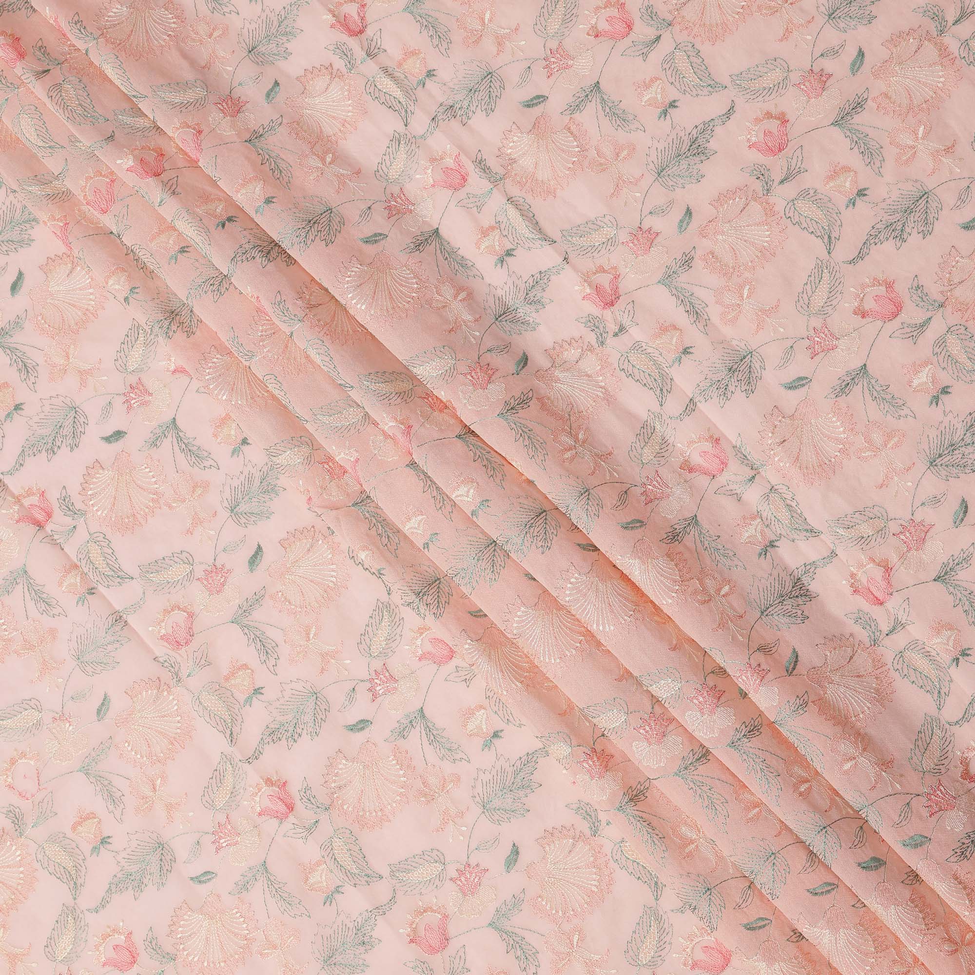 Peach Floral Embroidered Cotton Voile Fabric, 110 Cms Width, India-D25193