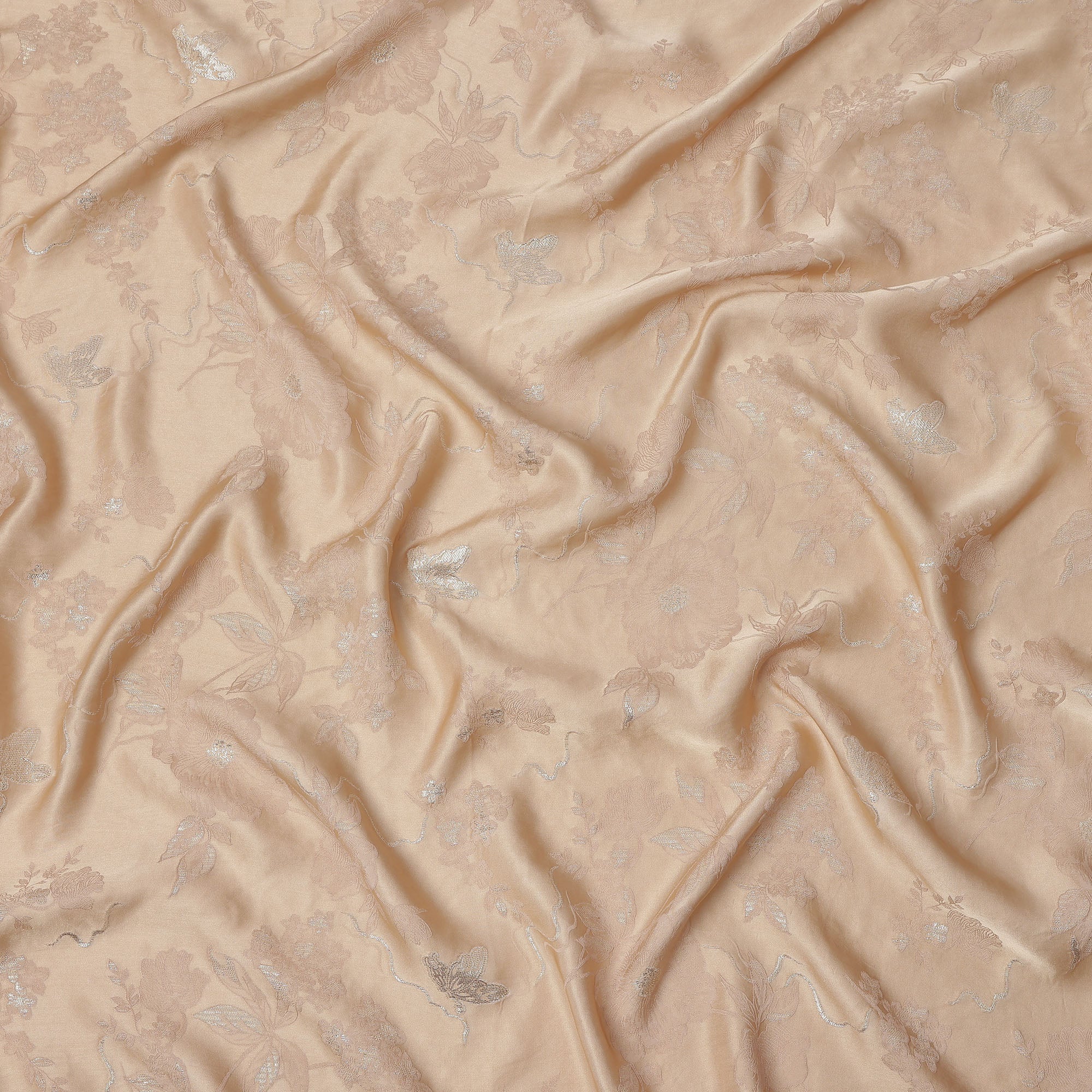 Peach Floral Pattern Silk Satin Fabric 110 Cms Width India-D24986