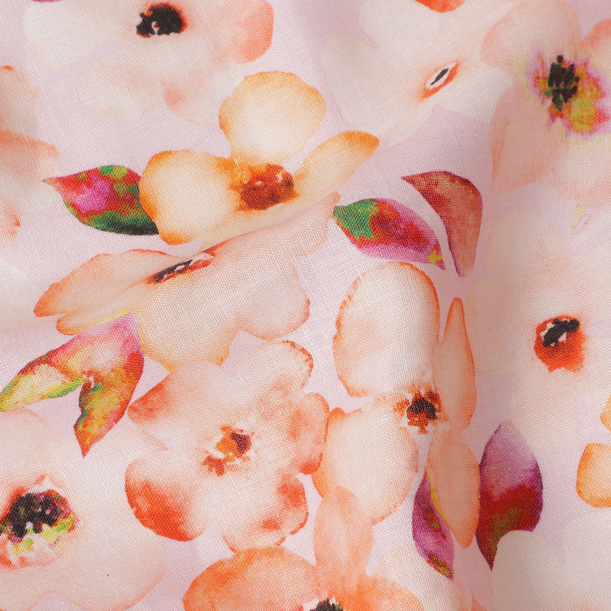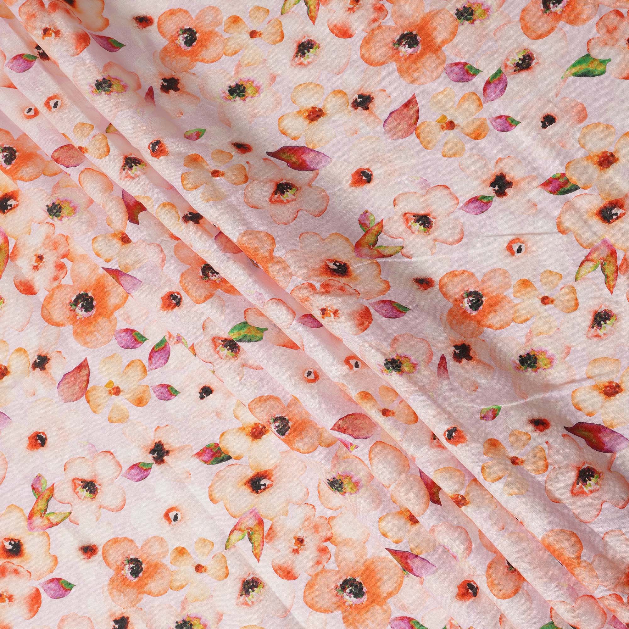 Features a peach floral print that adds a fresh and elegant touch to garments and décor.