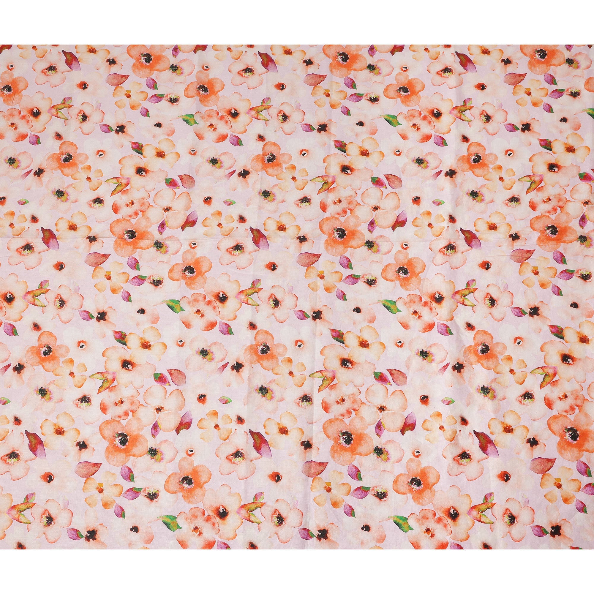 Peach Floral Printed Cotton Linen Fabric 150 Cms Width Soft Breathable Lightweight Dress Material India-D27945
