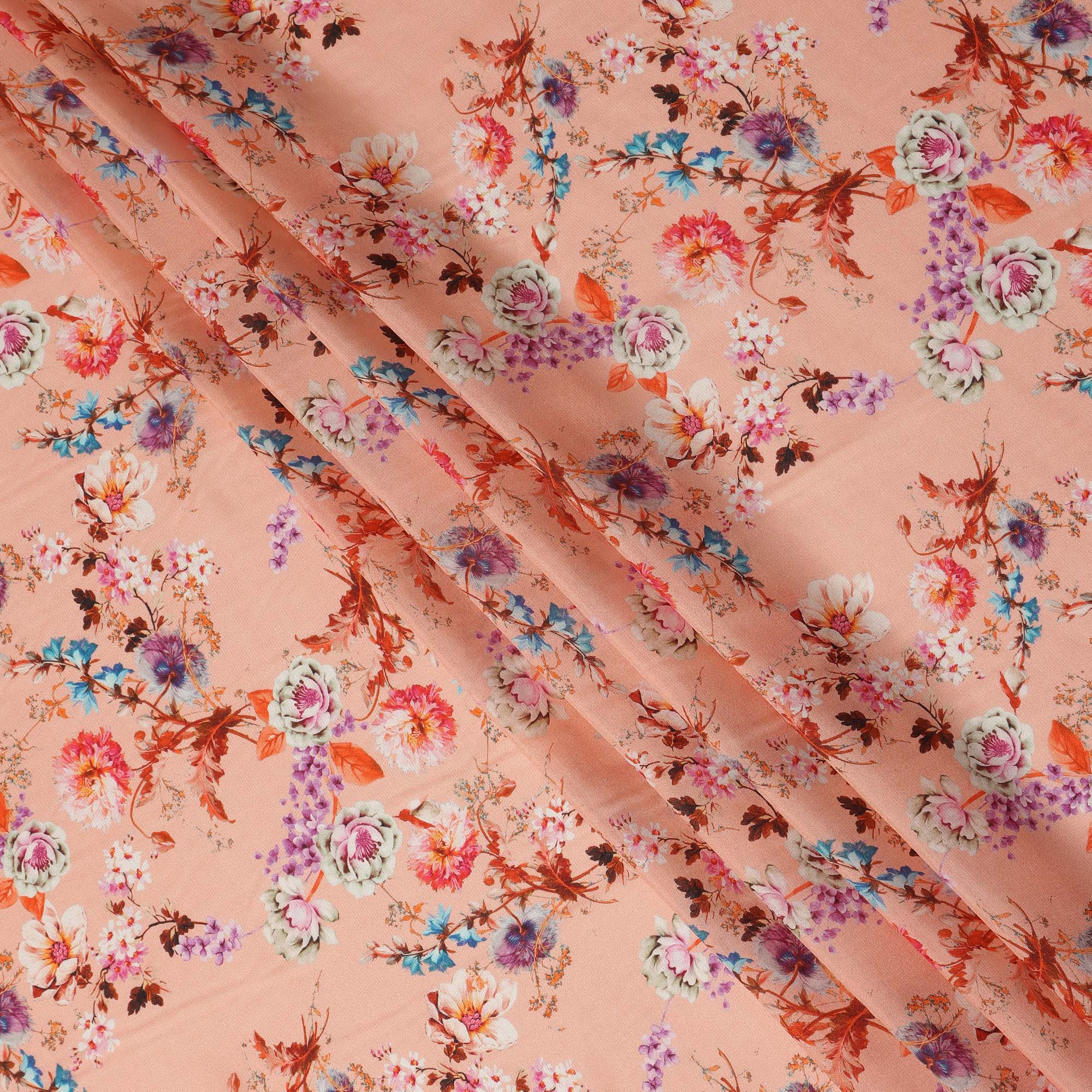 Peach Floral Printed Viscose Crepe Fabric Multicolor Blossom Botanical Design Soft Flowing Dress Material 110 Cms Width India-D28023