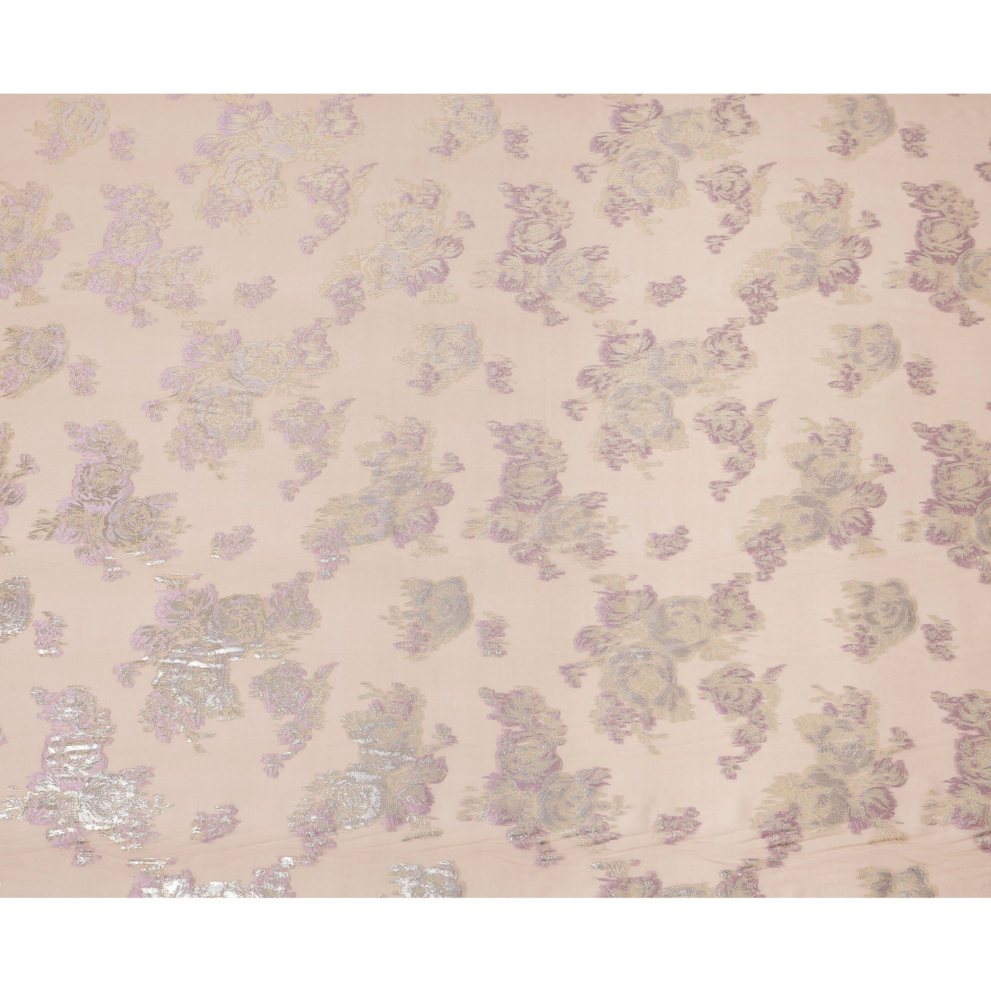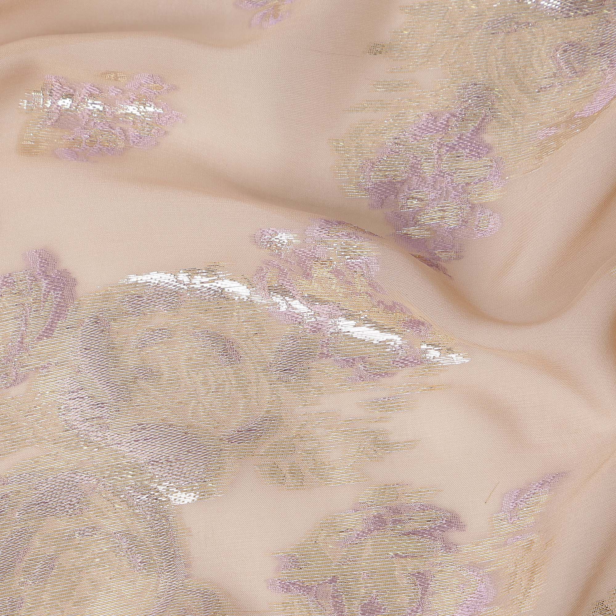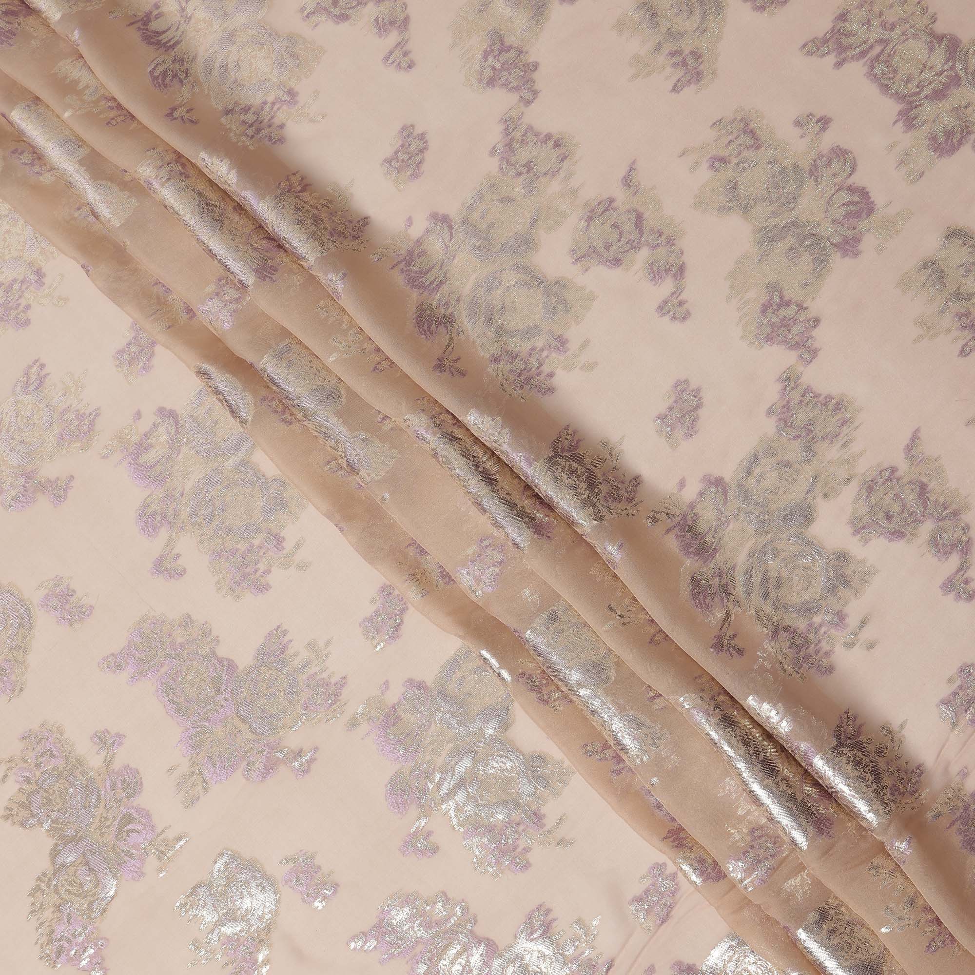 Peach Floral Pure Silk Chiffon Fabric with Metallic Lurex, 110 Cms Width, South Korea-D25242
